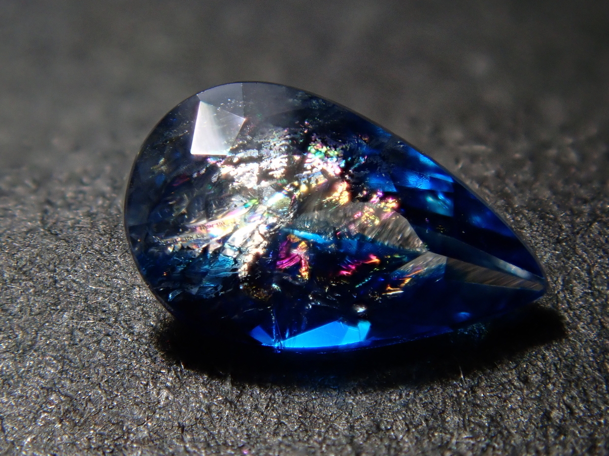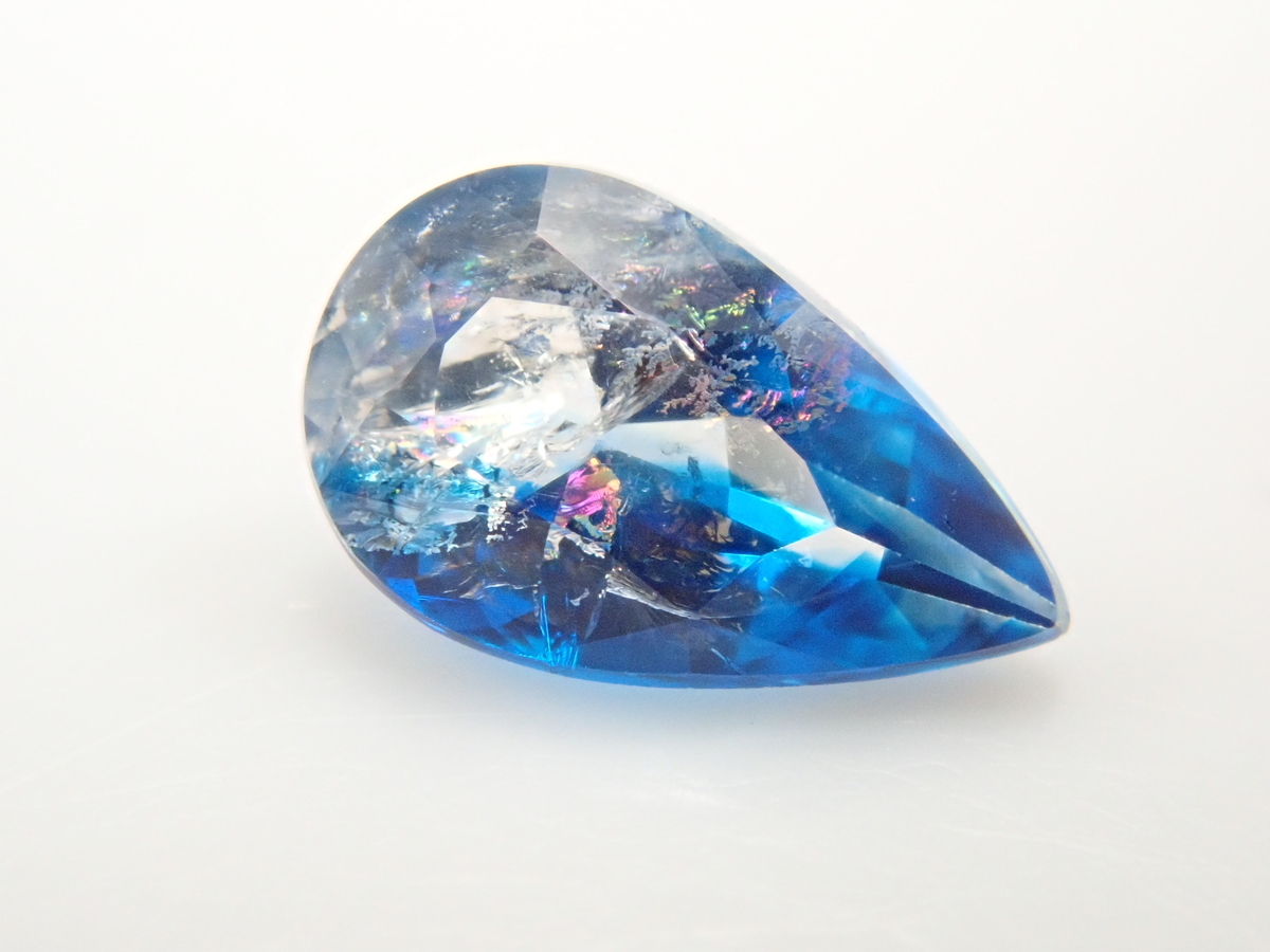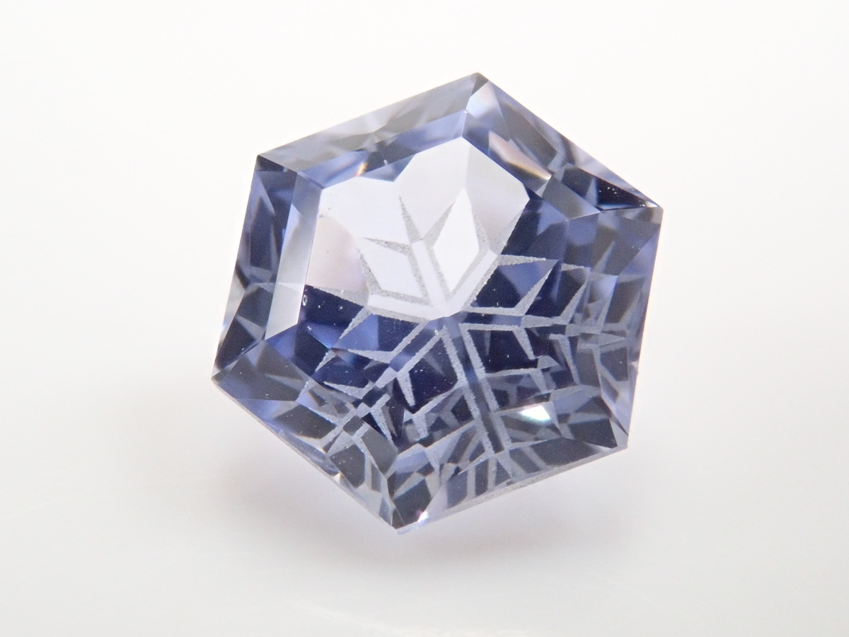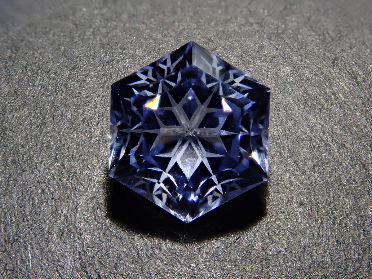雪の結晶がルースの中に舞うゆきんこカット。シミズ貴石様による研磨で、鮮やかなブルーの合成サファイアとシベリアンブルークォーツに、繊細なカットが美しく映えます。