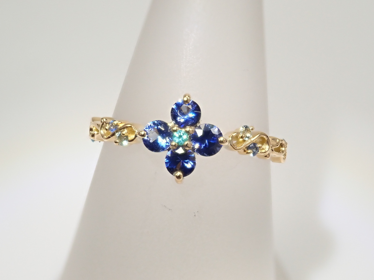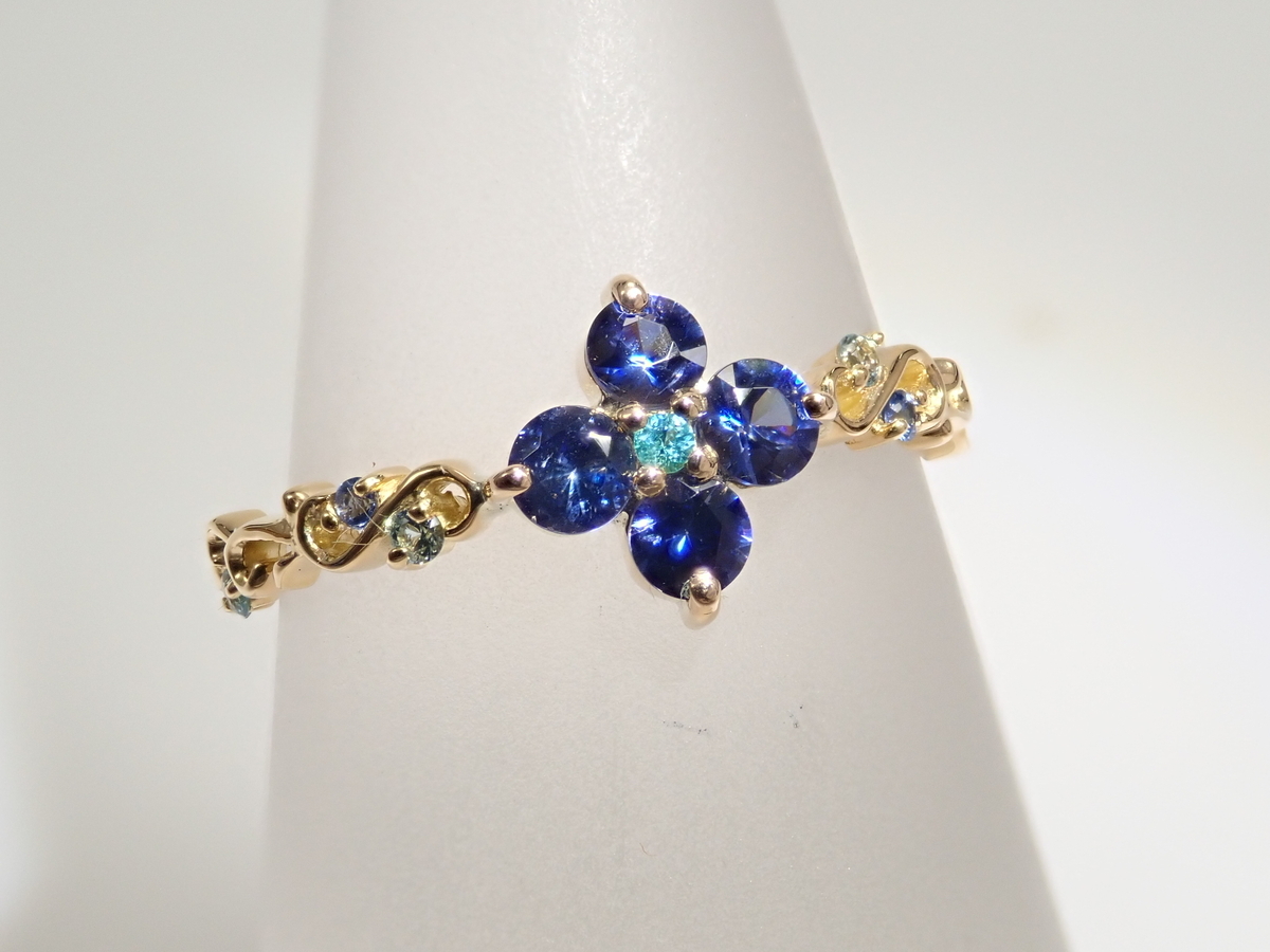商品⑨【抽選販売_20260301_09】K18YG アメリカ産ベニトアイト 0.342ct・ブラジル産パライバトルマリンリング