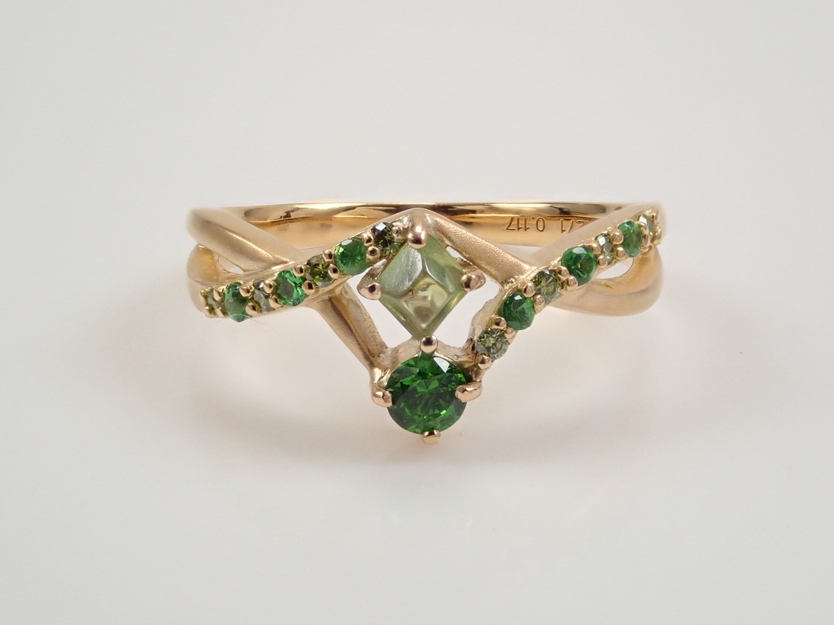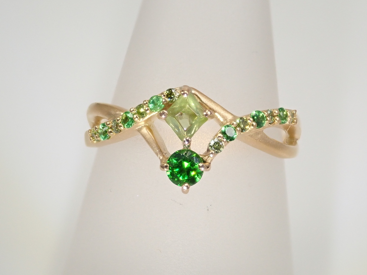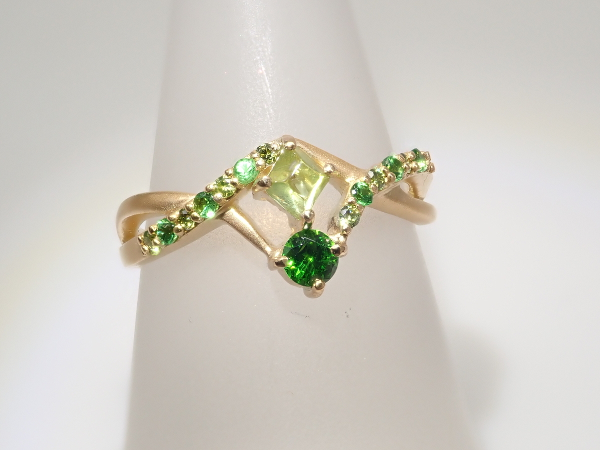 商品⑩【抽選販売_20260301_10】K18YG ロシア産デマントイドガーネット(ホーステール認む) 0.271ct・グリーンガーネットリング