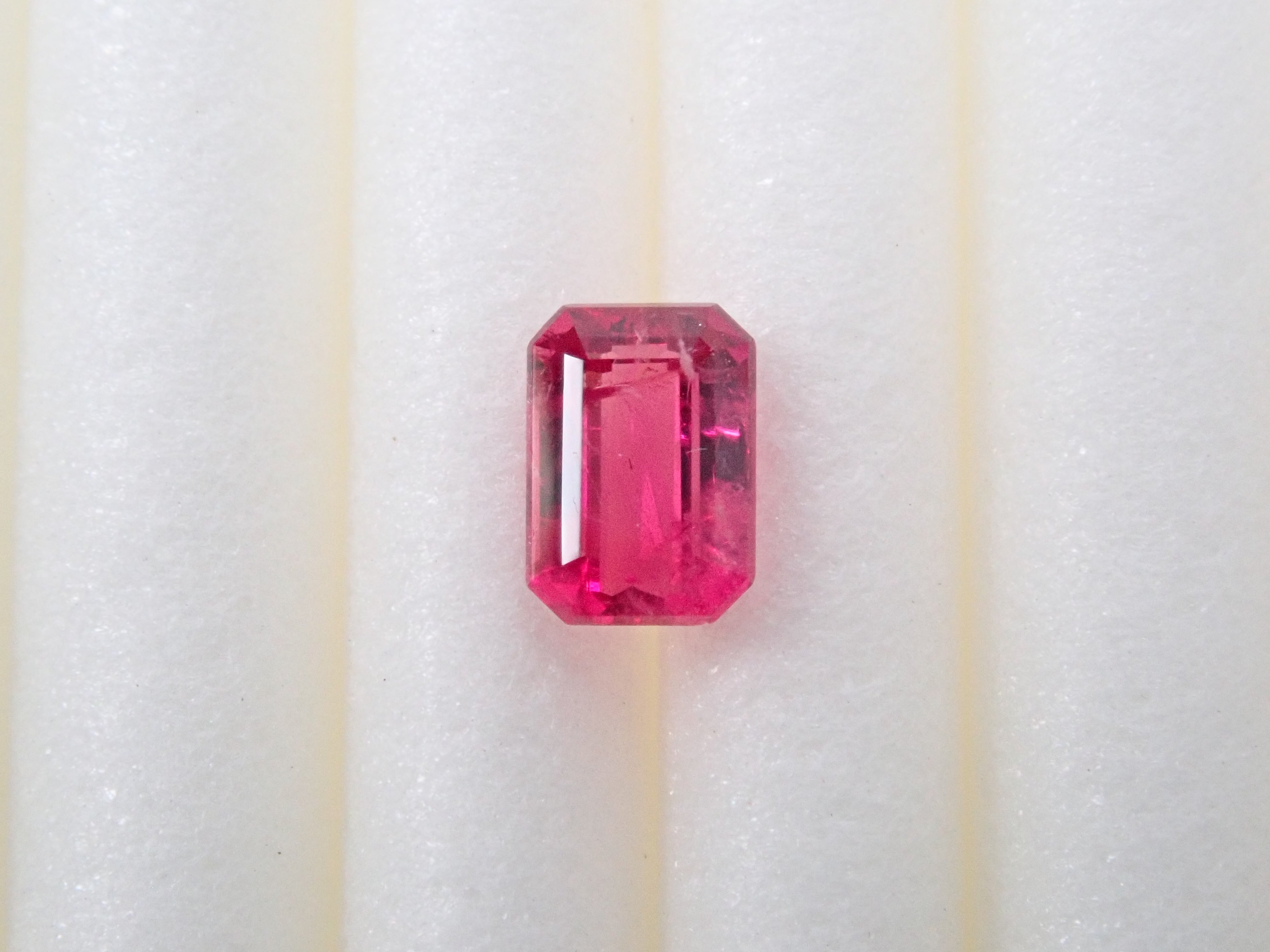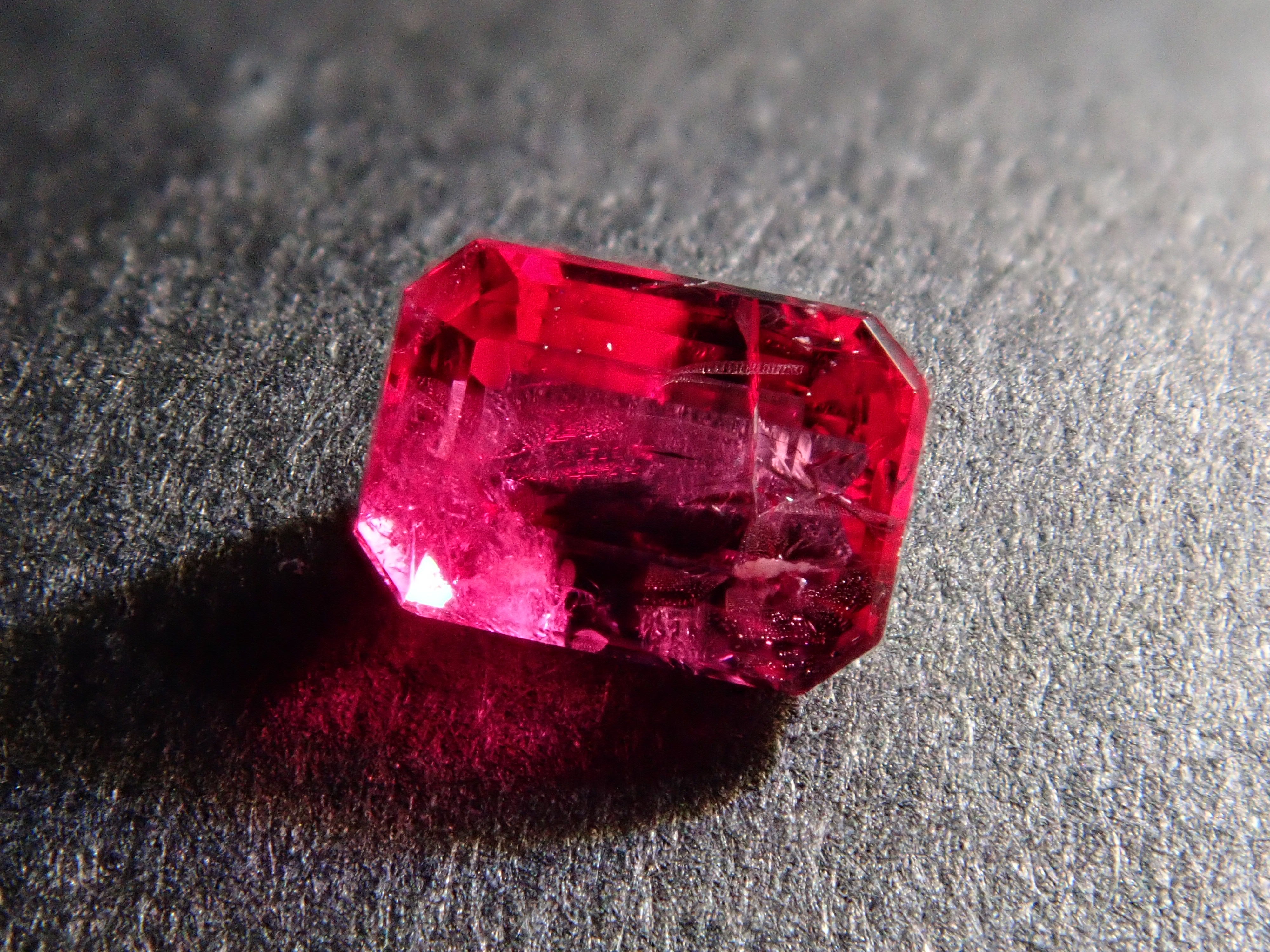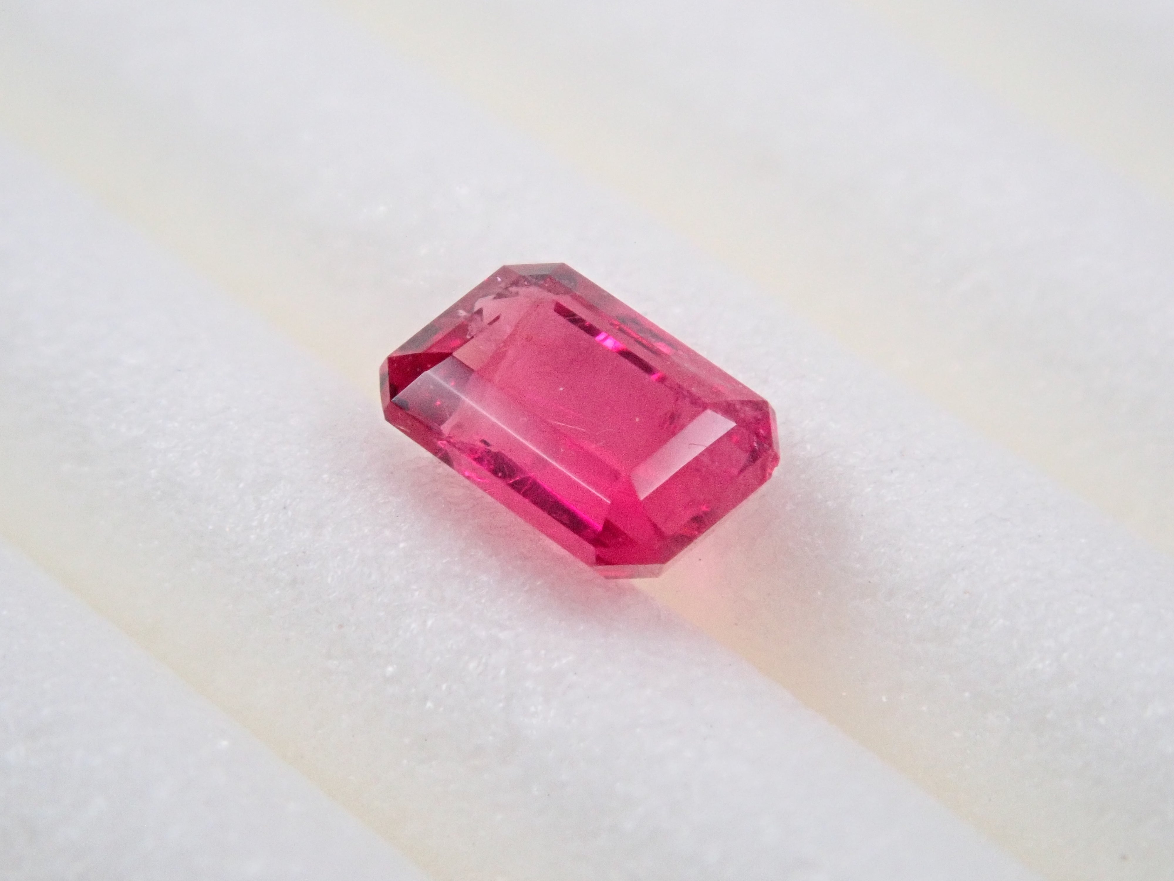 Red beryl is famous as a rare stone. It is also known as "bixbite" after its discoverer, mineralogist Maynard Bixby. Mineralogy-wise, it is a member of the beryl group, which also includes emerald and aquamarine. This red beryl has a deep color and is highly transparent.