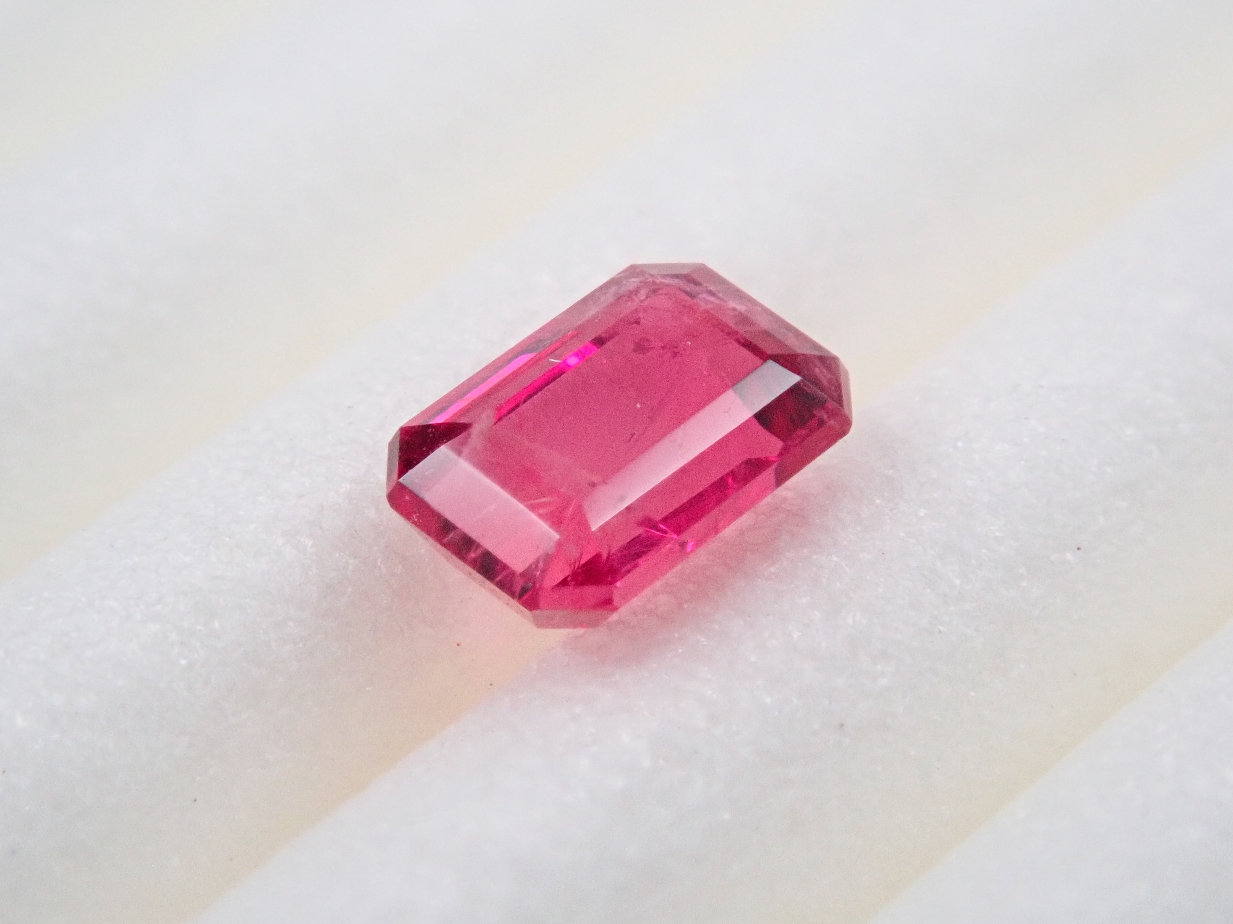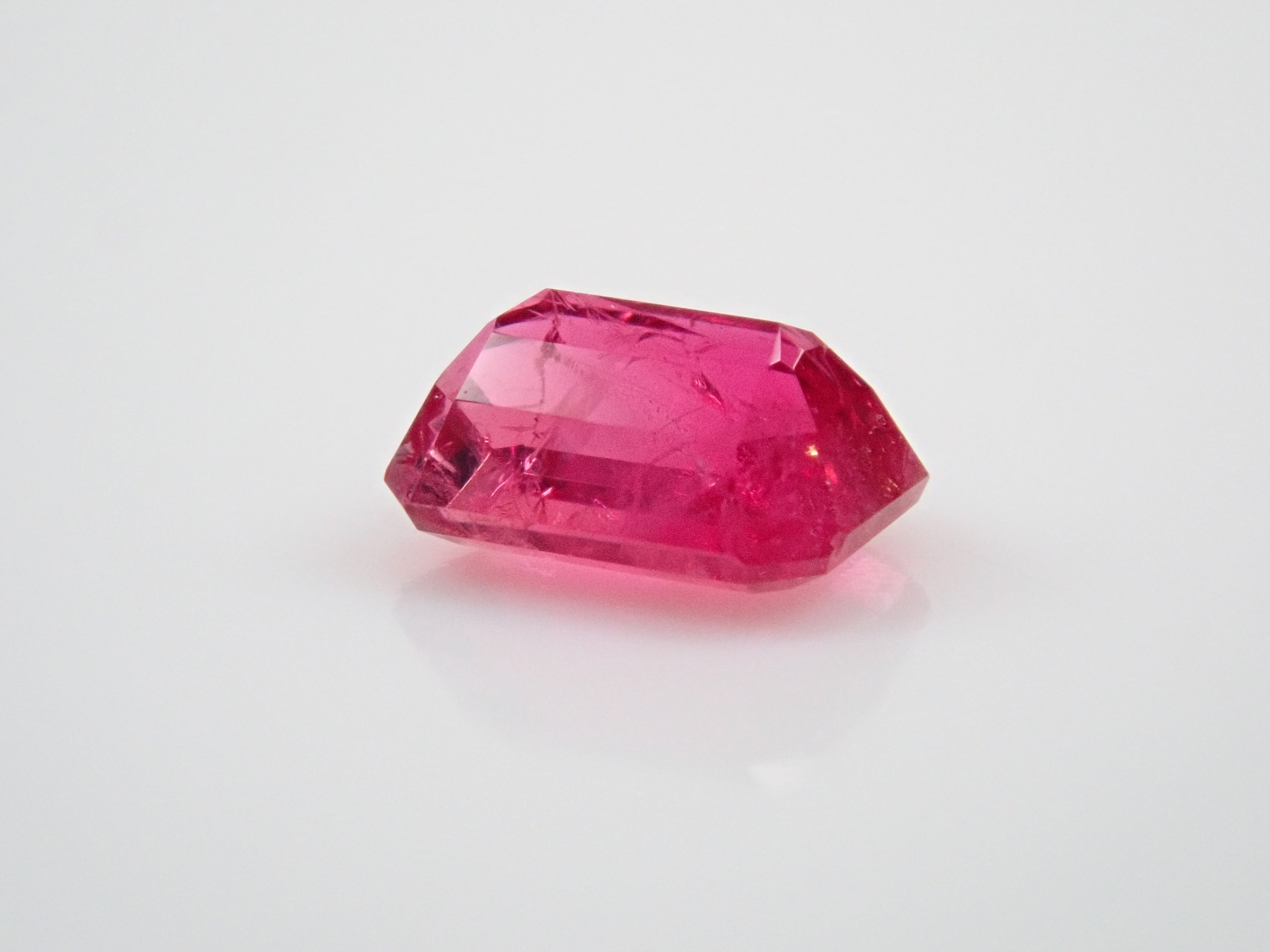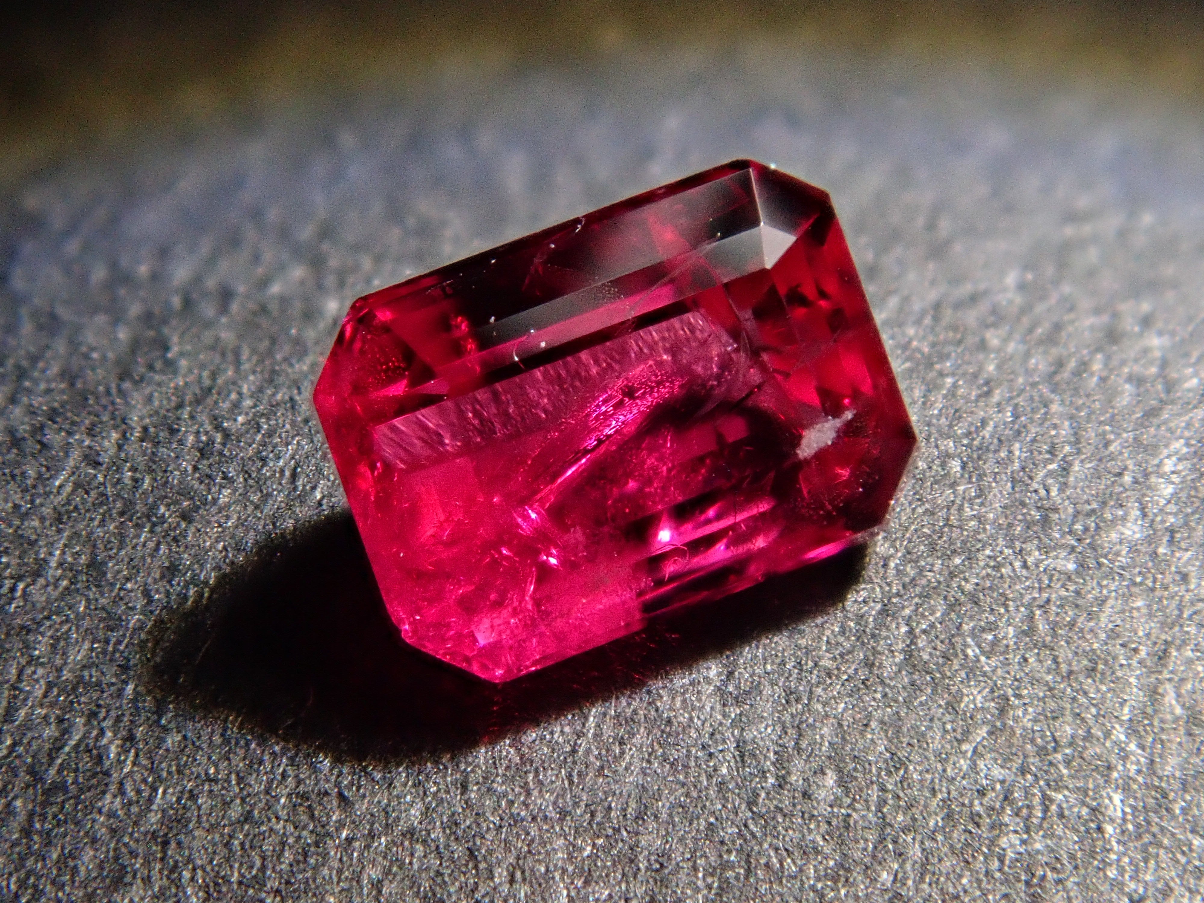Red beryl is famous as a rare stone. It is also known as "bixbite" after its discoverer, mineralogist Maynard Bixby. Mineralogy-wise, it is a member of the beryl group, which also includes emerald and aquamarine. This red beryl has a deep color and is highly transparent.