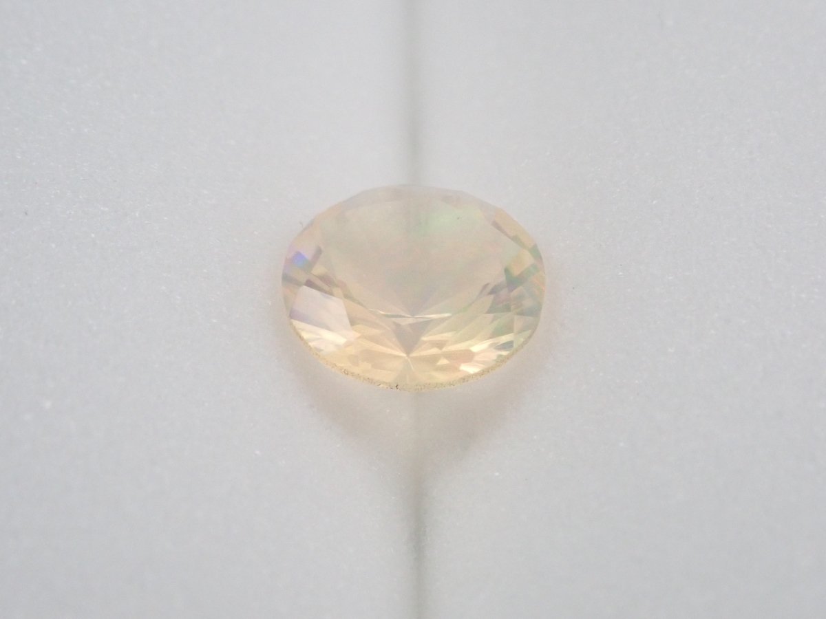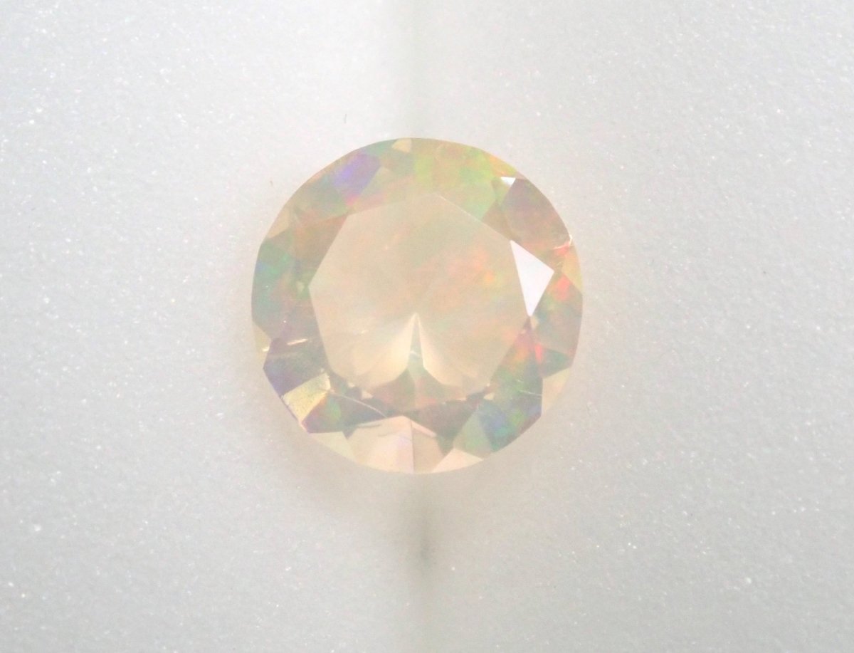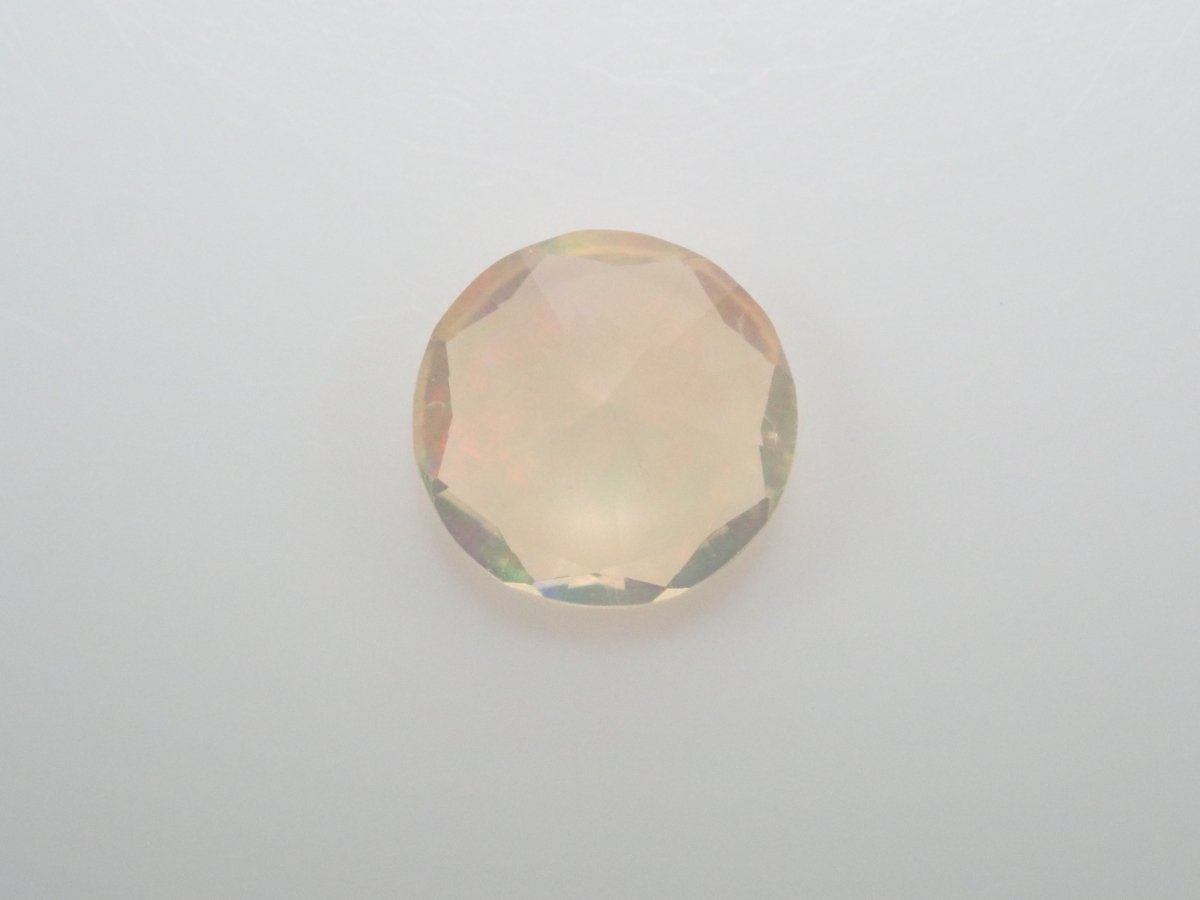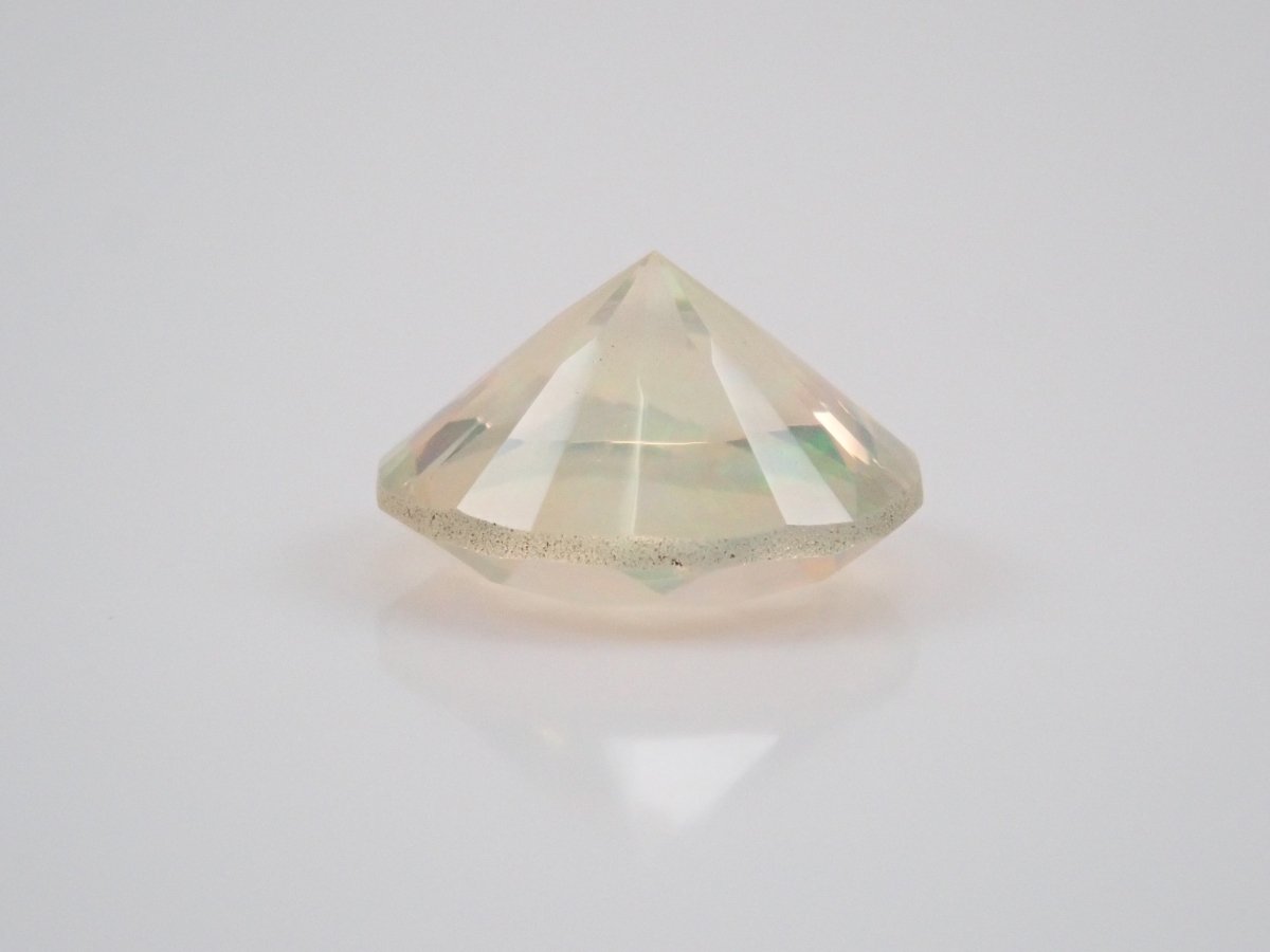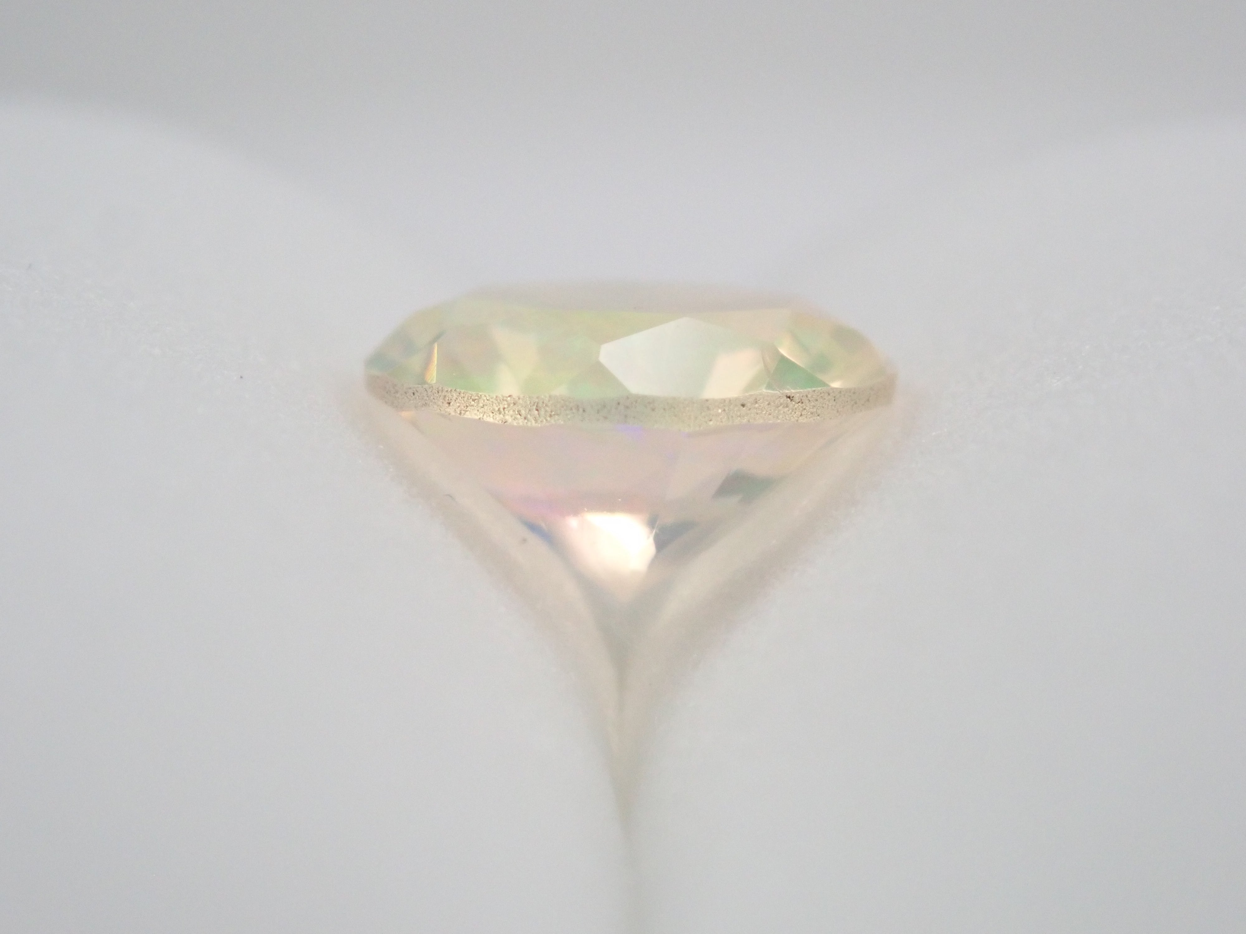 This is Shimizu Kiseki's Sakura in-cut . 7mm/0.74ct Mexican opal. You can also enjoy the play of colors.