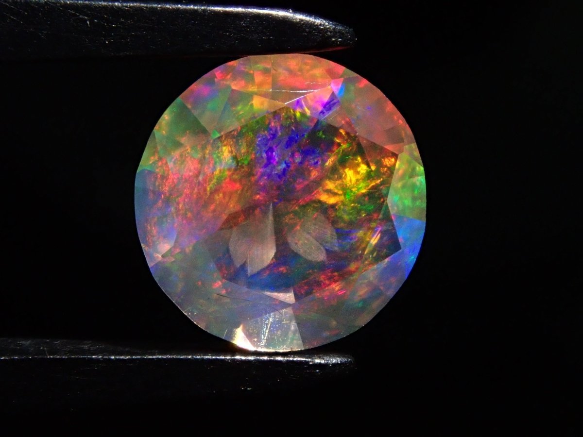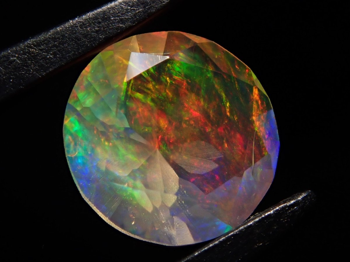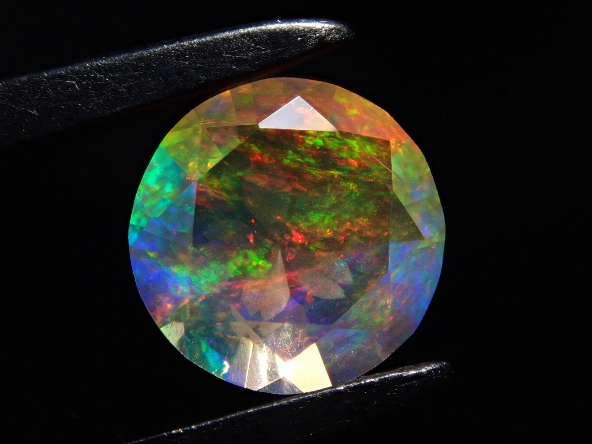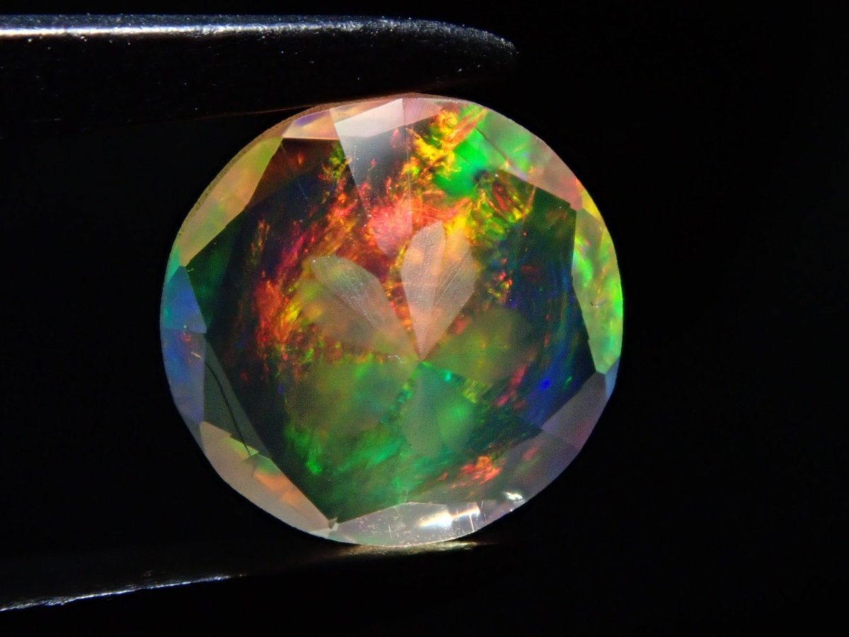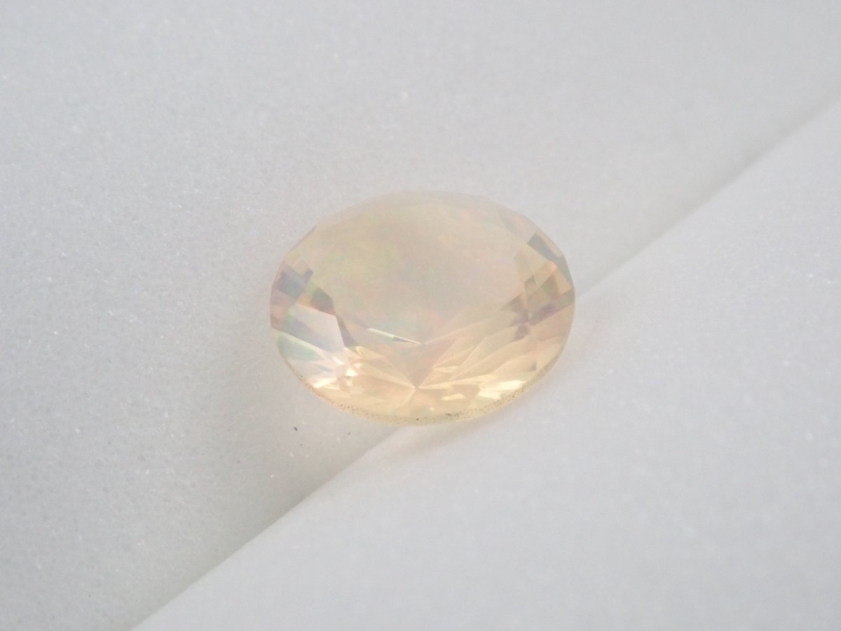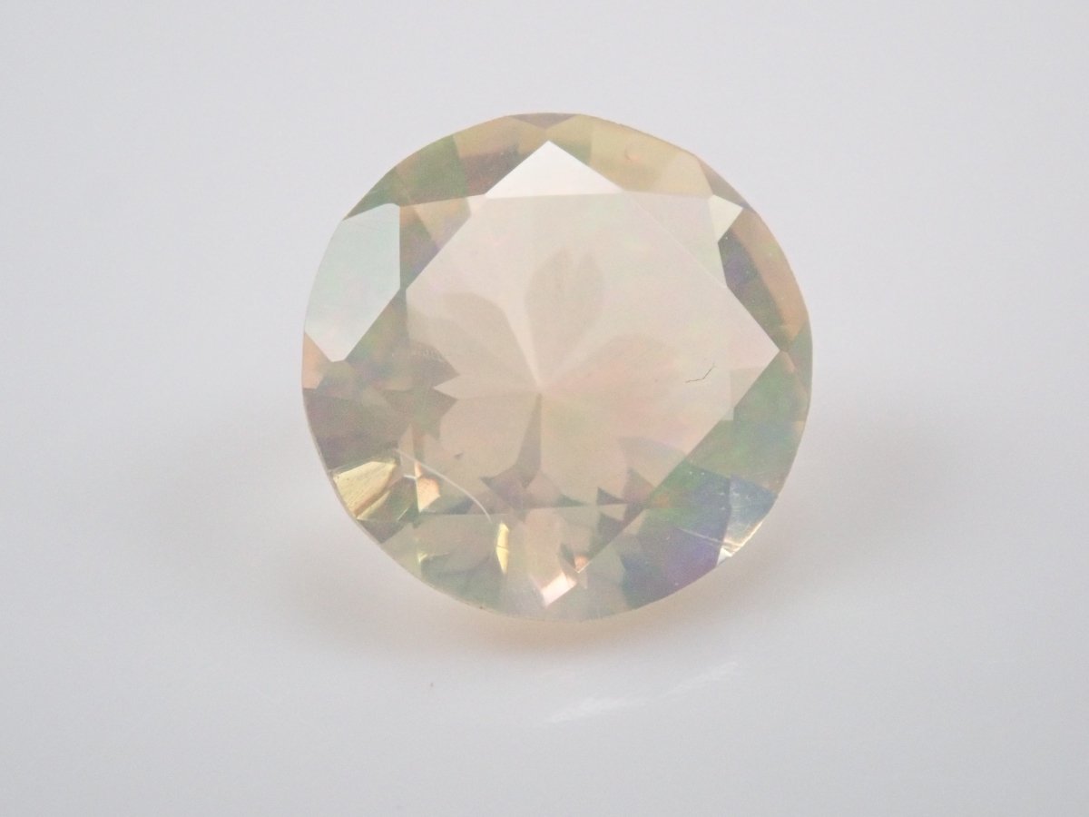 This is Shimizu Kiseki's Sakura in-cut . 7mm/0.74ct Mexican opal. You can also enjoy the play of colors.