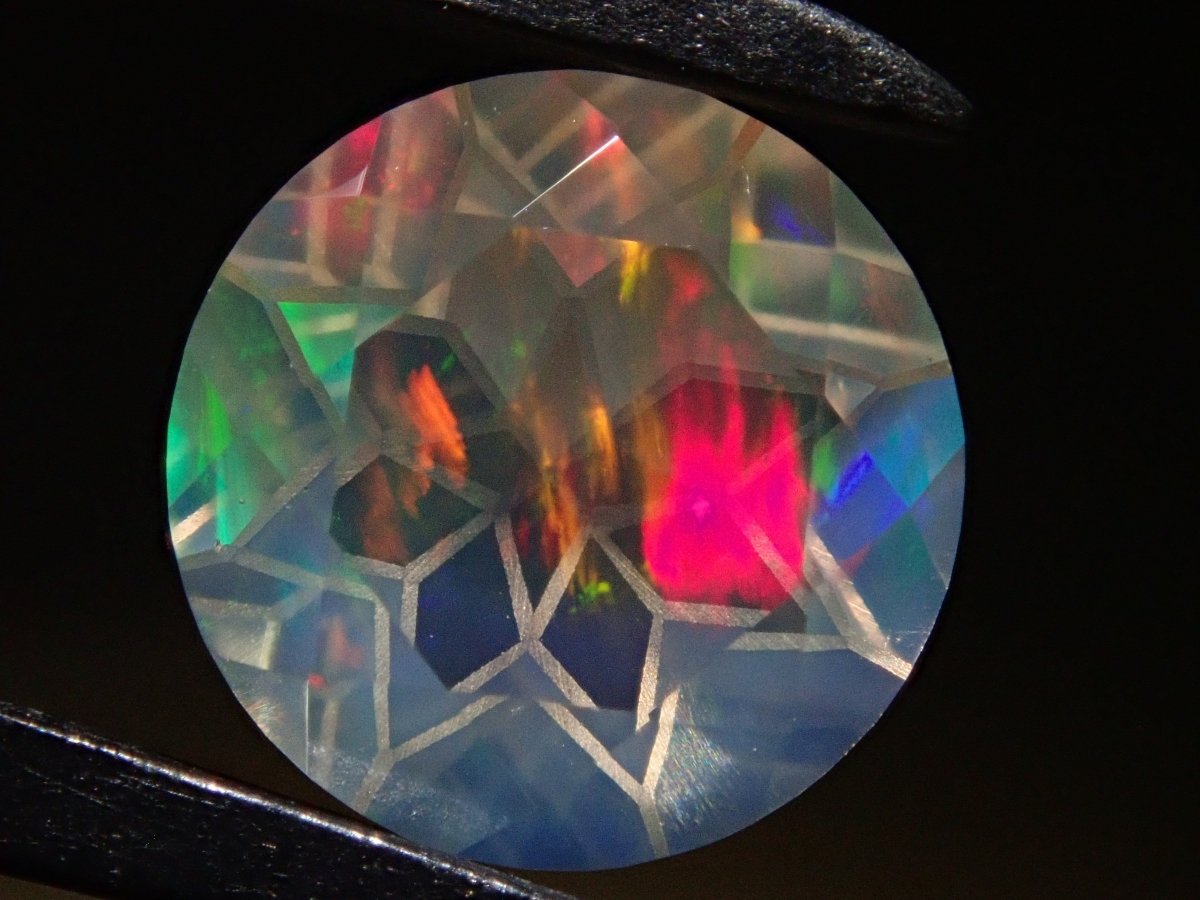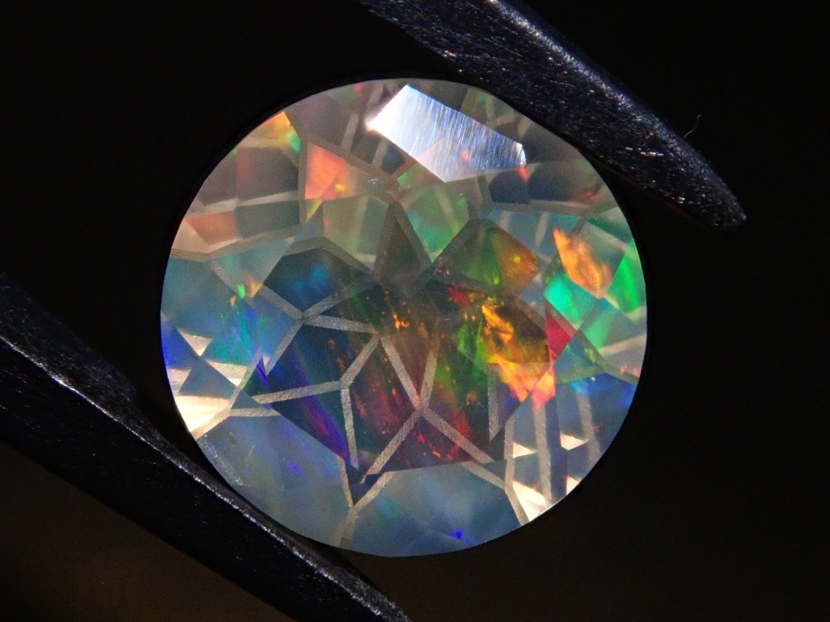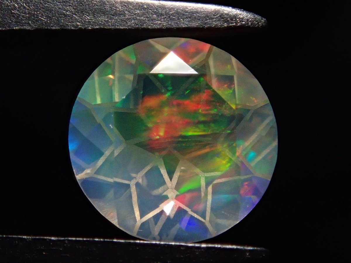 Shimizu Kiseki's dandelion cut . 8mm/1.16ct loose water opal. You can also enjoy play of colors. Dandelion cut water opal.