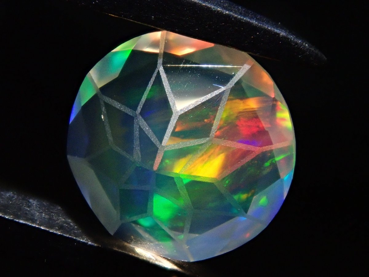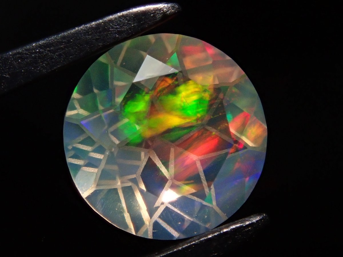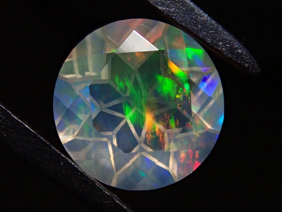 Shimizu Kiseki's dandelion cut . 8mm/1.16ct loose water opal. You can also enjoy play of colors. Dandelion cut water opal.