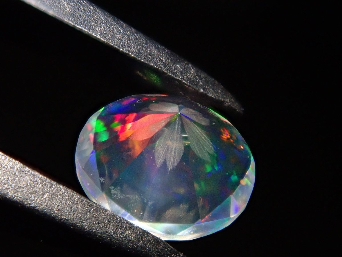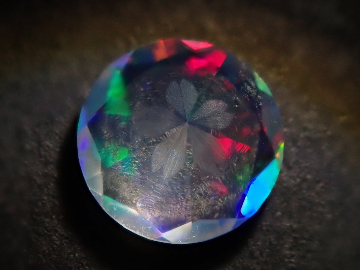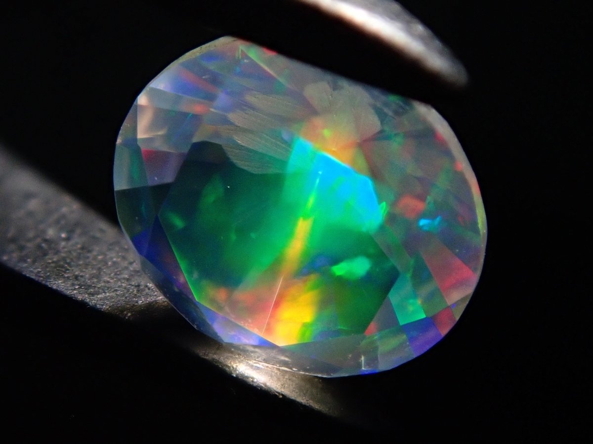 Opal is a gemstone characterized by shimmering rainbow-colored light. There are several types of opal, but water opal is one of the most popular gemstones. The dance of light swaying within the transparent stone will captivate your eyes. Photographs are taken using a penlight.