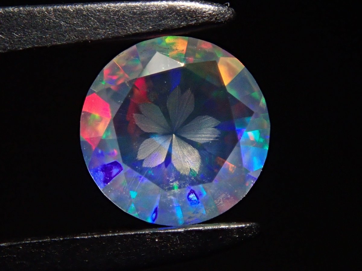 This is Shimizu Kiseki's Sakura in-cut . This is a very beautiful 6mm water opal (Mexican opal) where you can enjoy play of color and cherry blossoms.