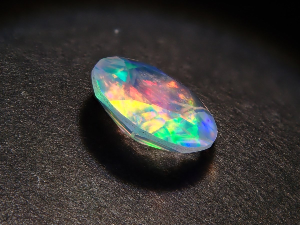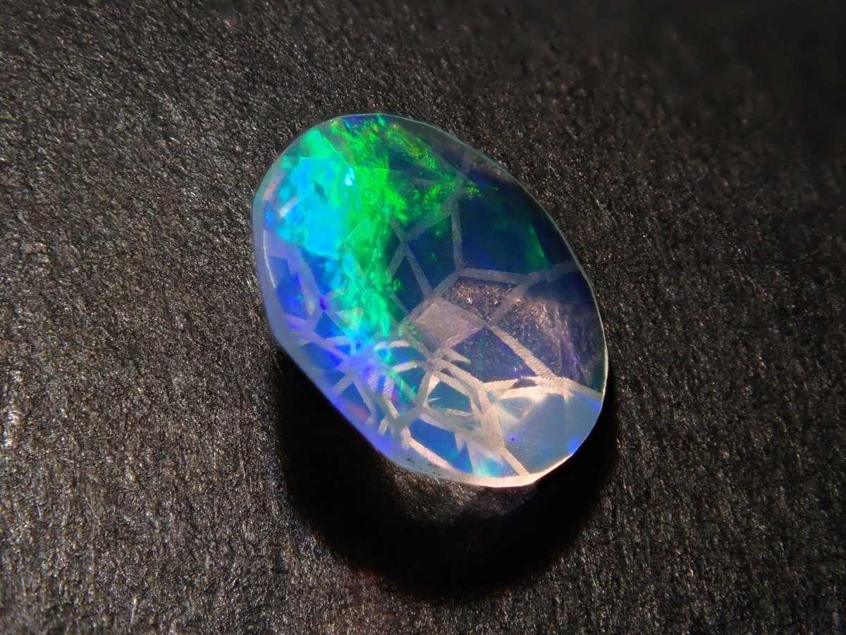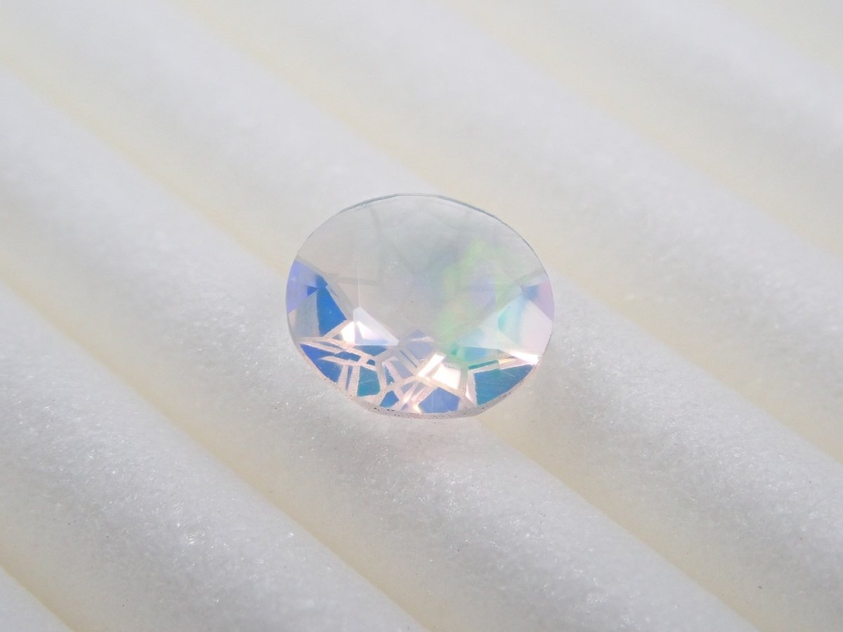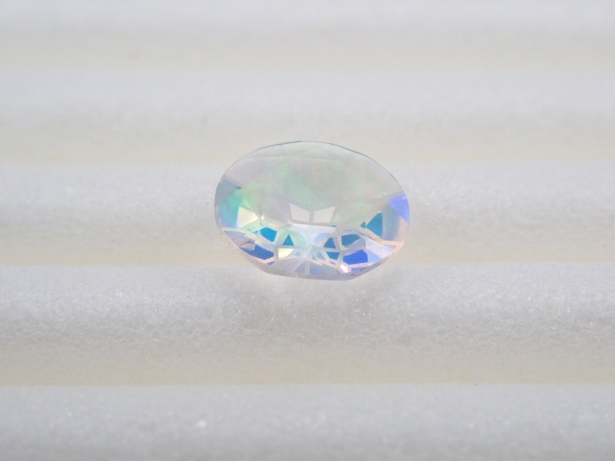 Opal is a gemstone characterized by shimmering rainbow-colored light. There are several types of opal, but water opal is one of the most popular gemstones. The dance of light swaying within the transparent stone will captivate your eyes. Photographs are taken using a penlight.