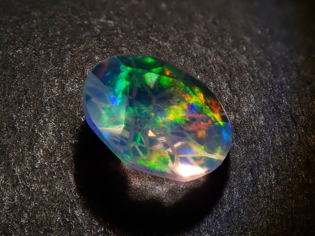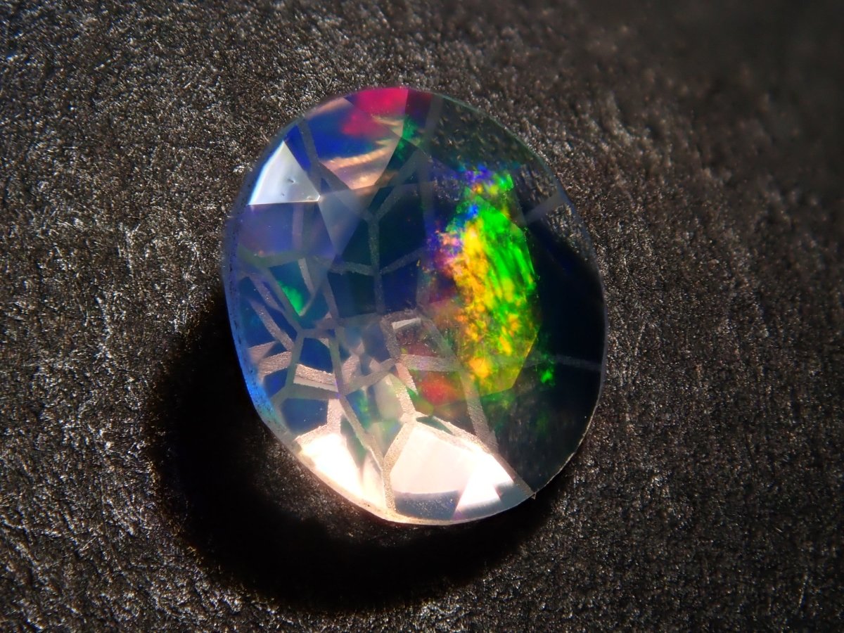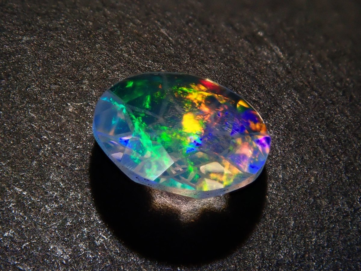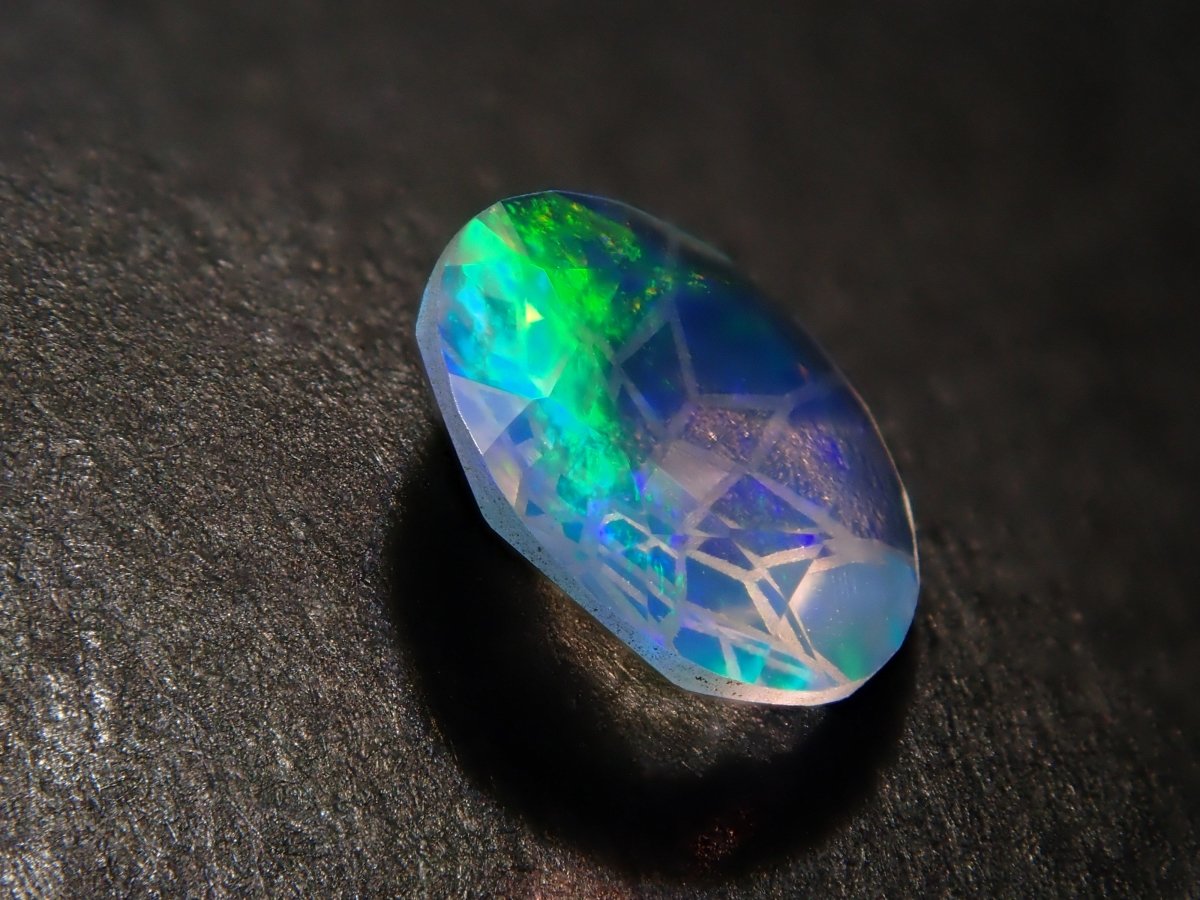 Opal is a gemstone characterized by shimmering rainbow-colored light. There are several types of opal, but water opal is one of the most popular gemstones. The dance of light swaying within the transparent stone will captivate your eyes. Photographs are taken using a penlight.