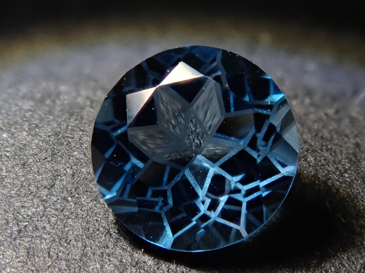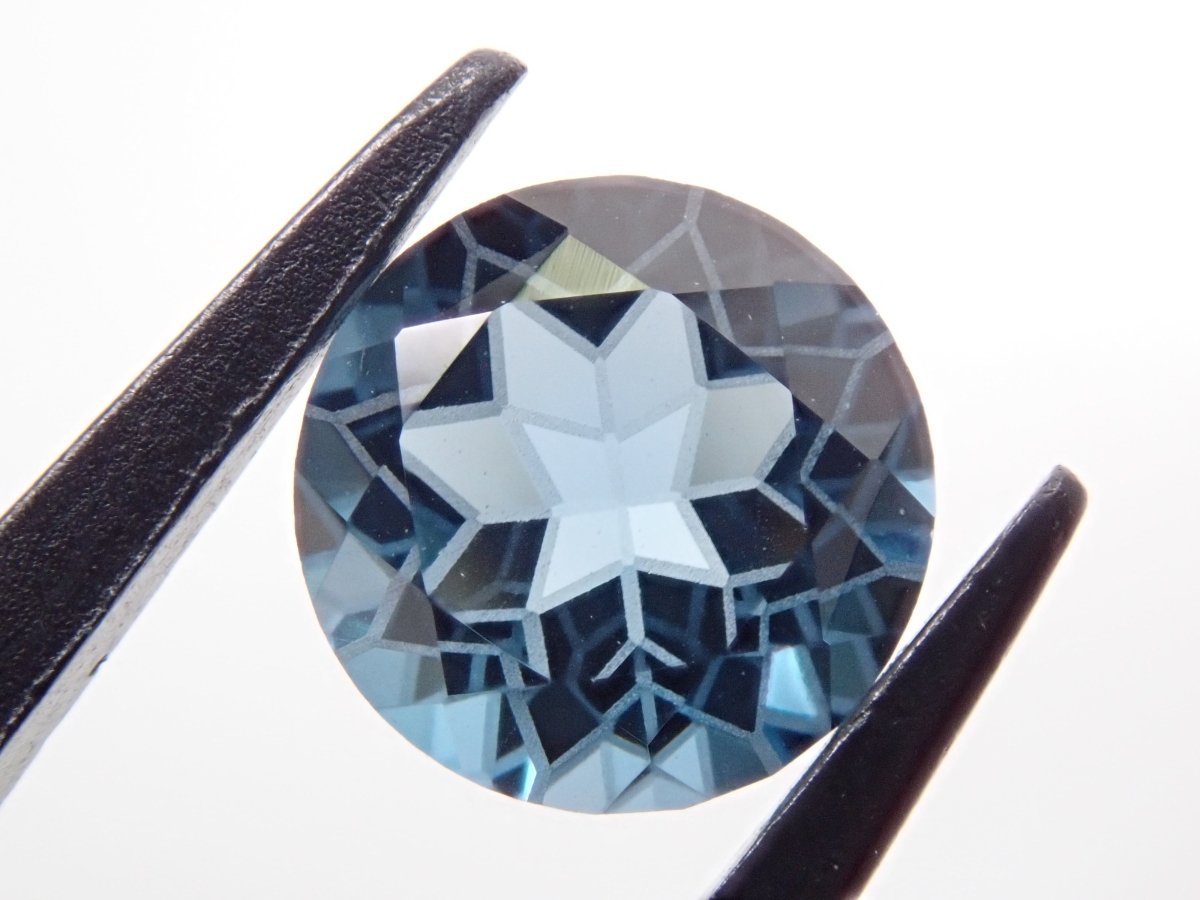 This is a dandelion cut stone from Shimizu Precious Stone. It is a 6mm/0.95ct London blue topaz loose stone.