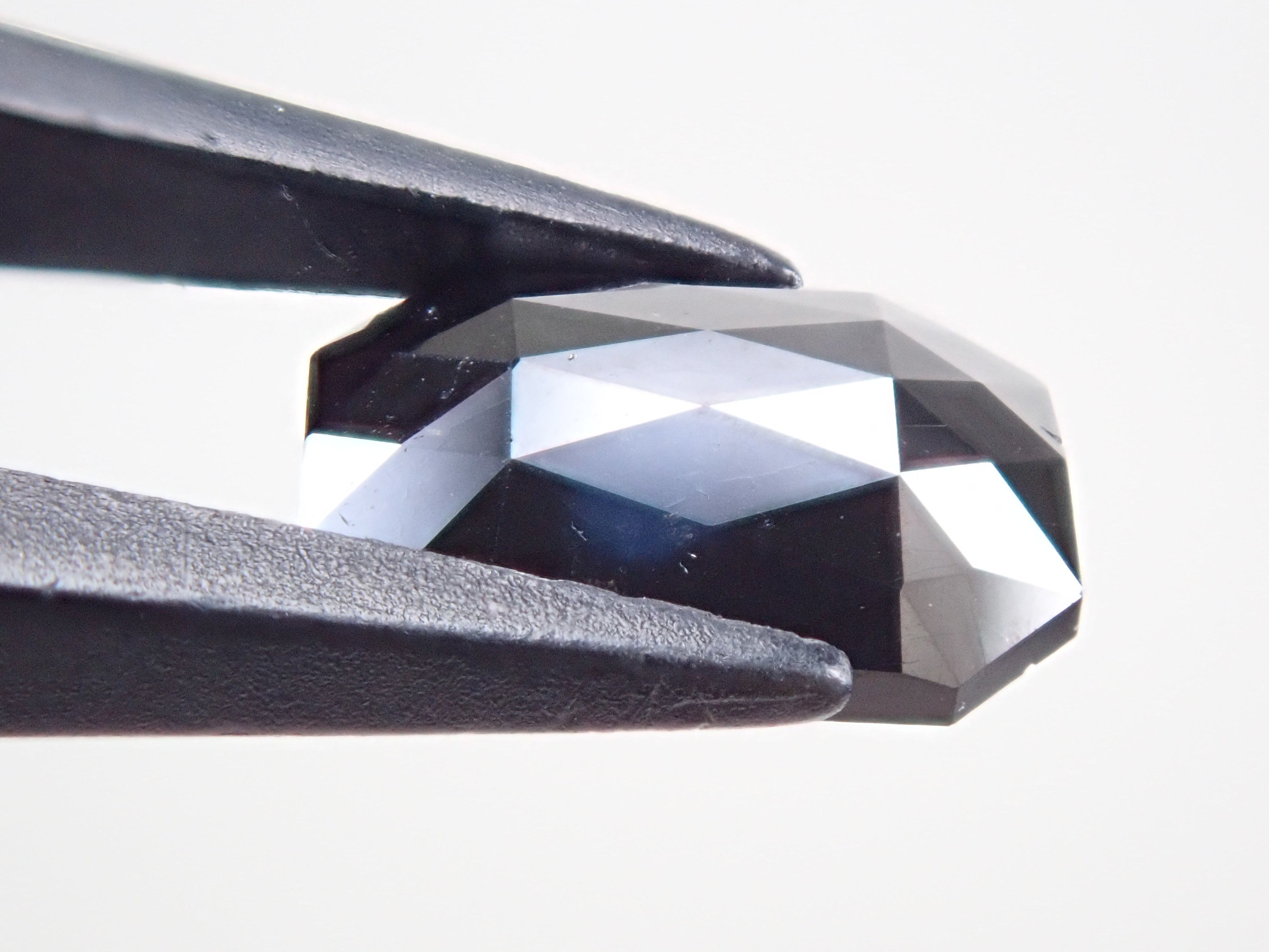 Among all the many precious stones, diamonds are one of the most special stones. In fact, it is a stone with many color variations, including not only colorless and transparent, but also pink, blue, red, brown, green, and yellow. This is a black diamond. A rose-cut x checkerboard-cut black diamond. It is a size with a presence of 1.1ct.