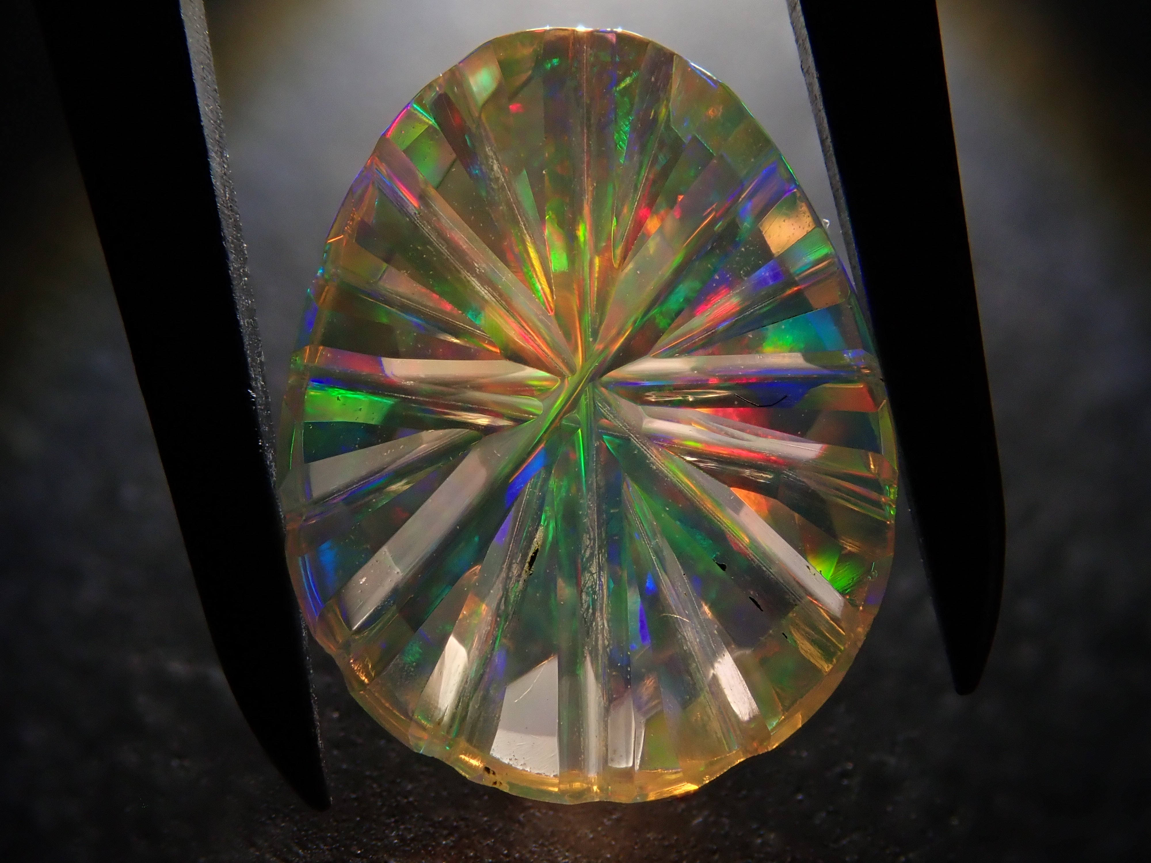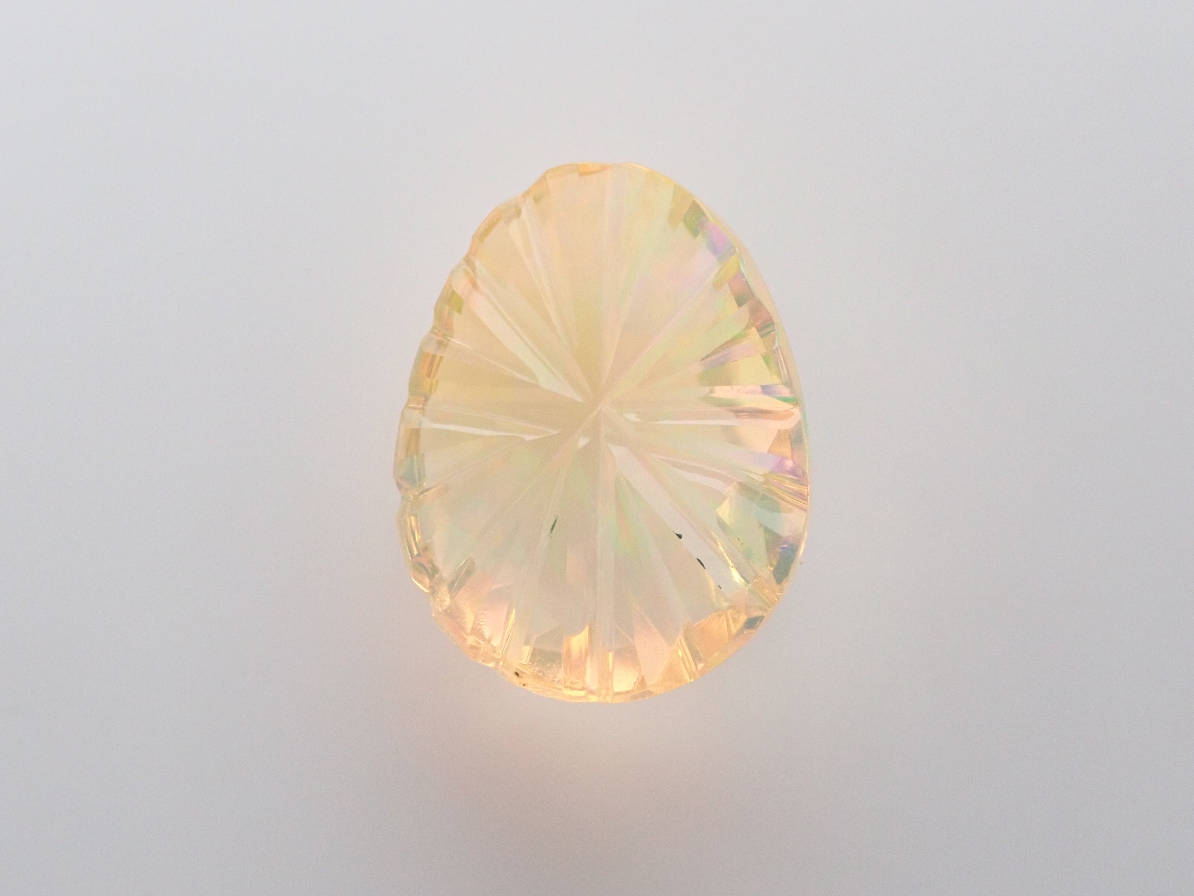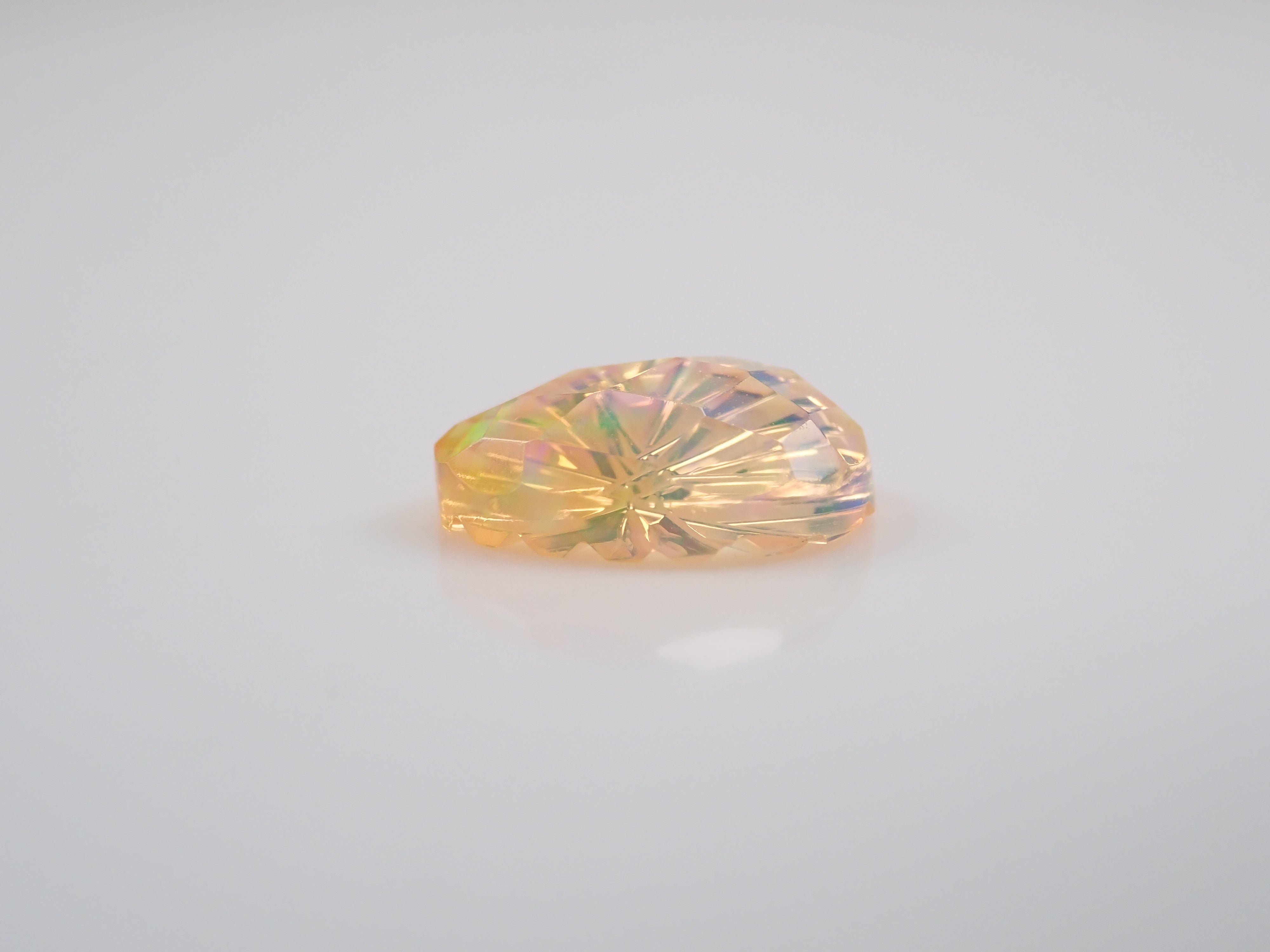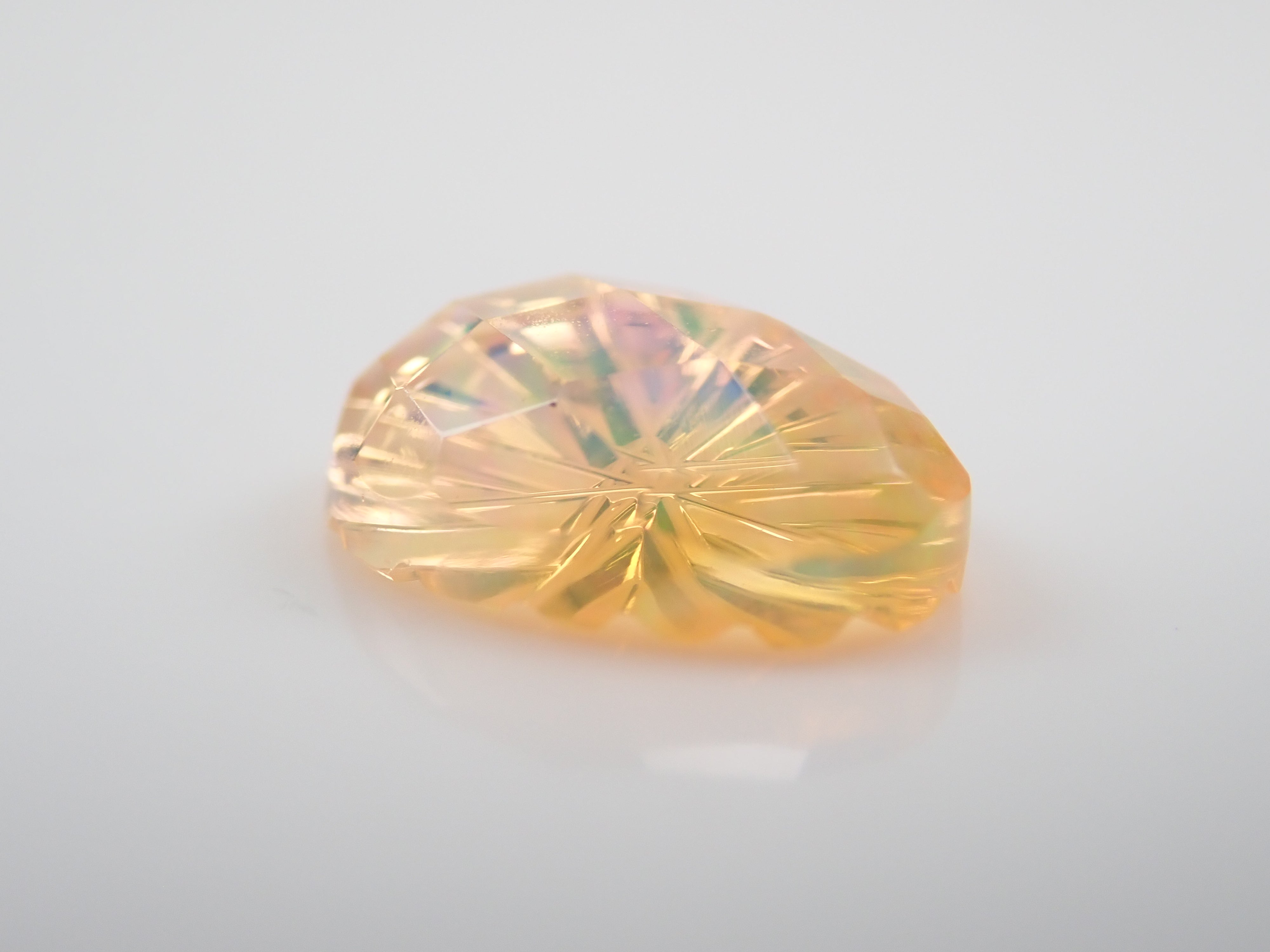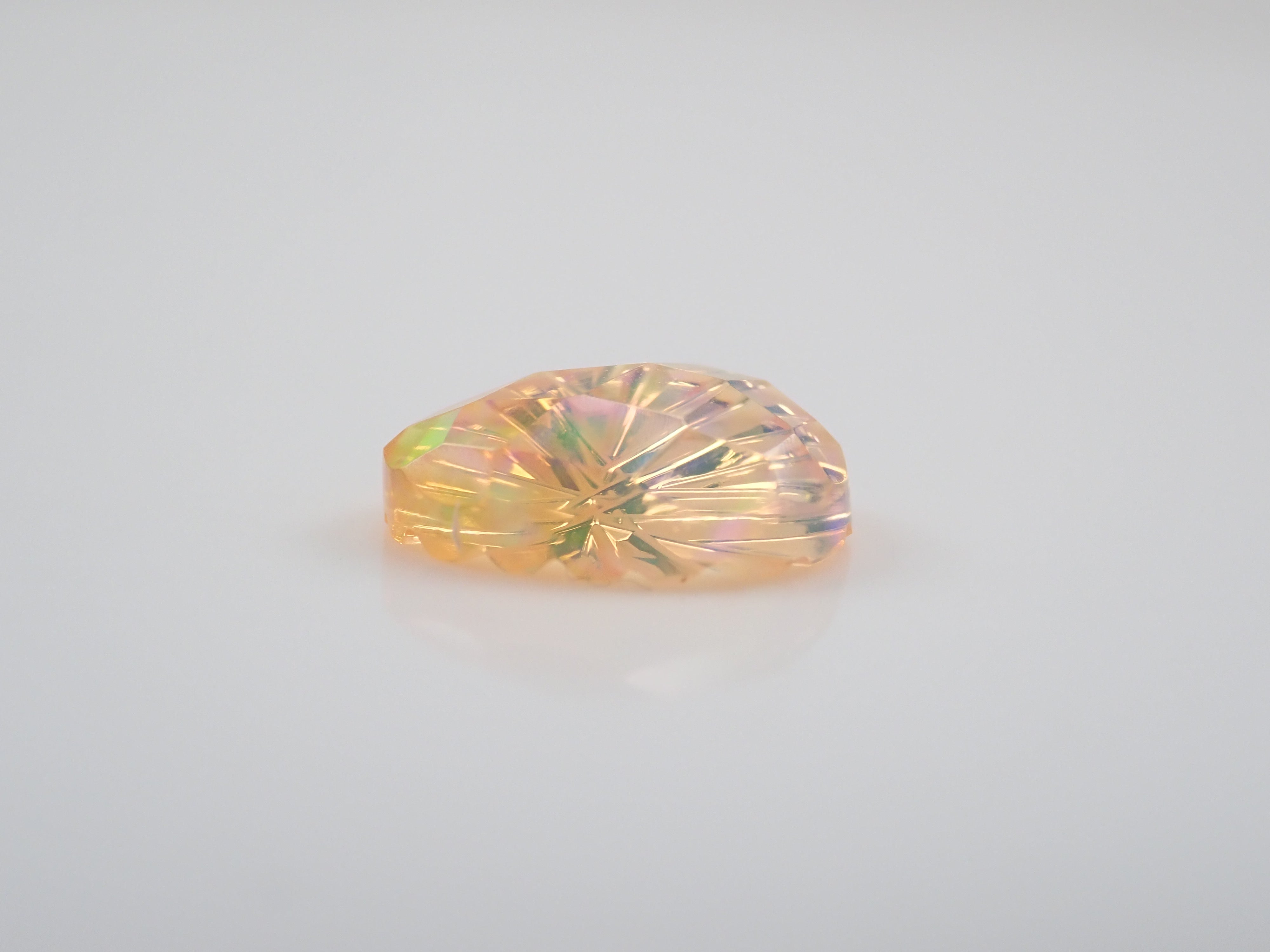 This is a Mexican fire opal "Checker x Subaru" made by Koshu Takaishi Kiriko, a collaboration between Shimizu Kiseki and Mr. Yoichi Fukasawa . Mr. Shimizu handles the facets and Mr. Fukasawa handles the facets.