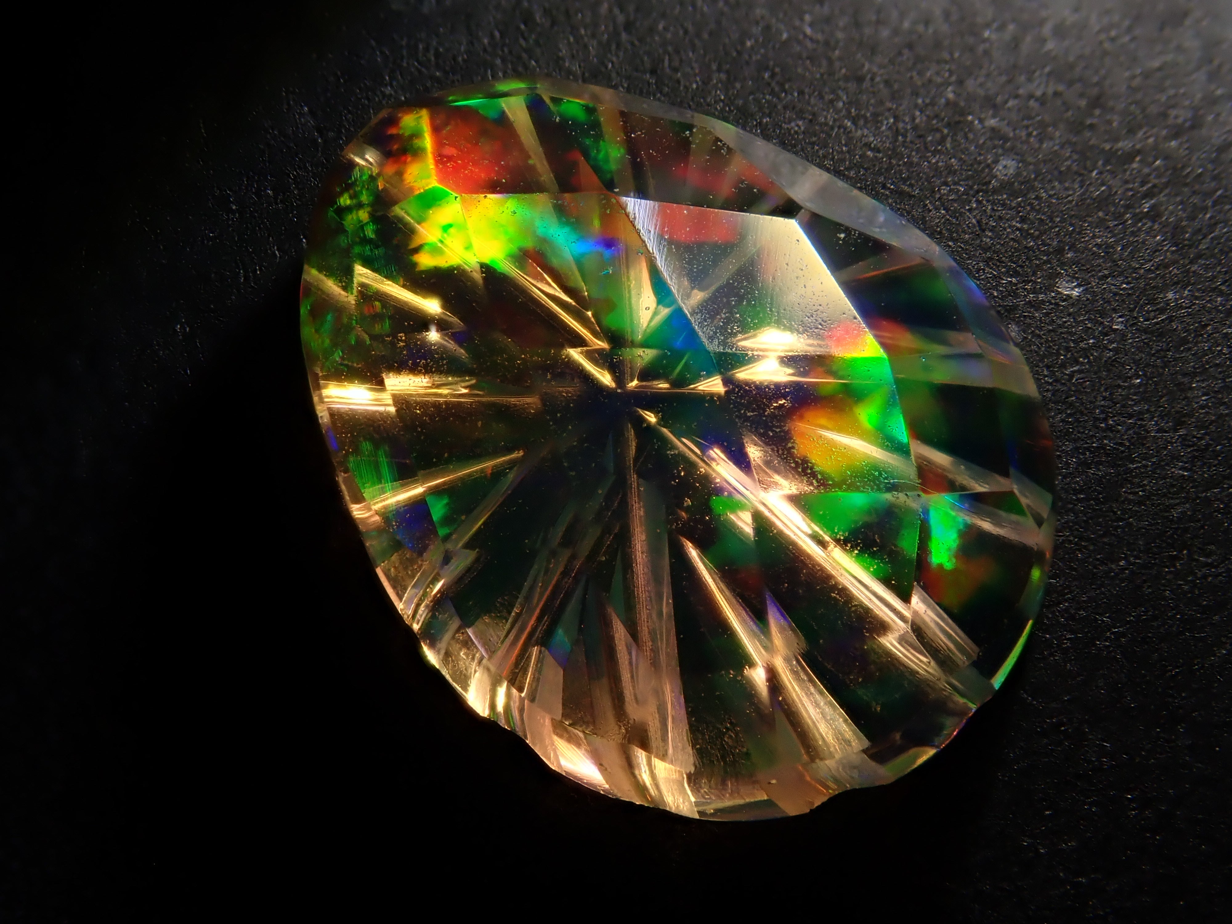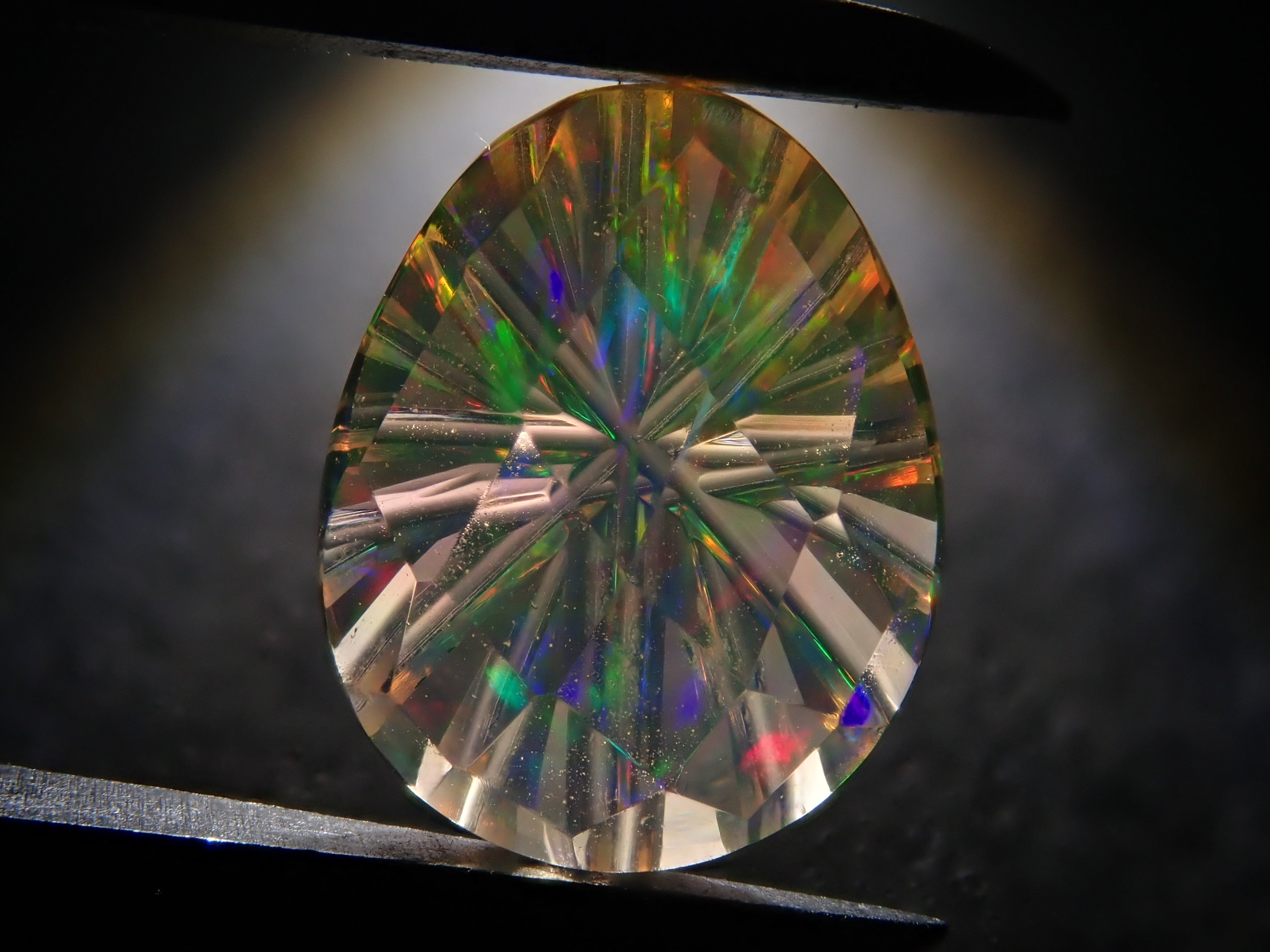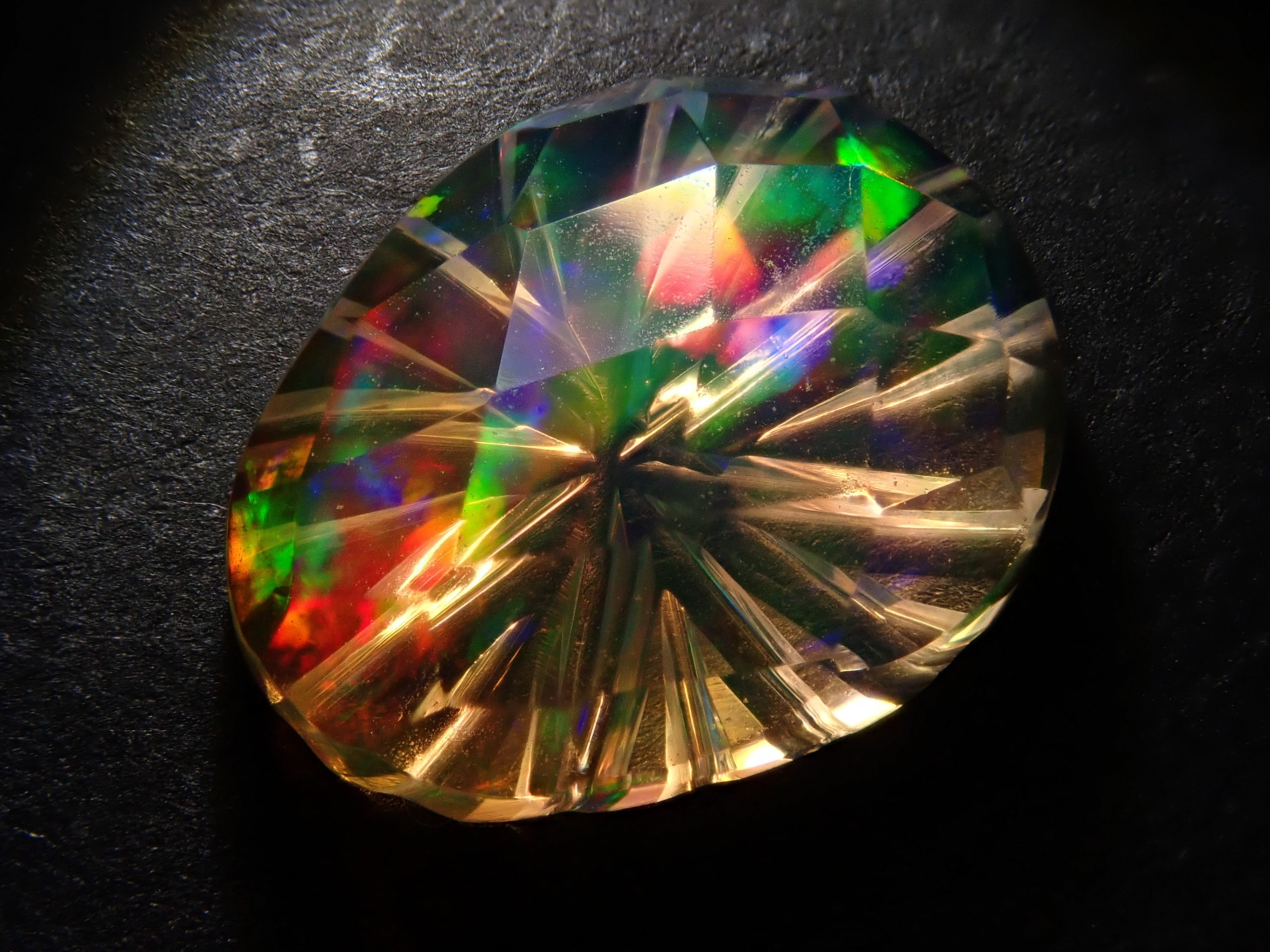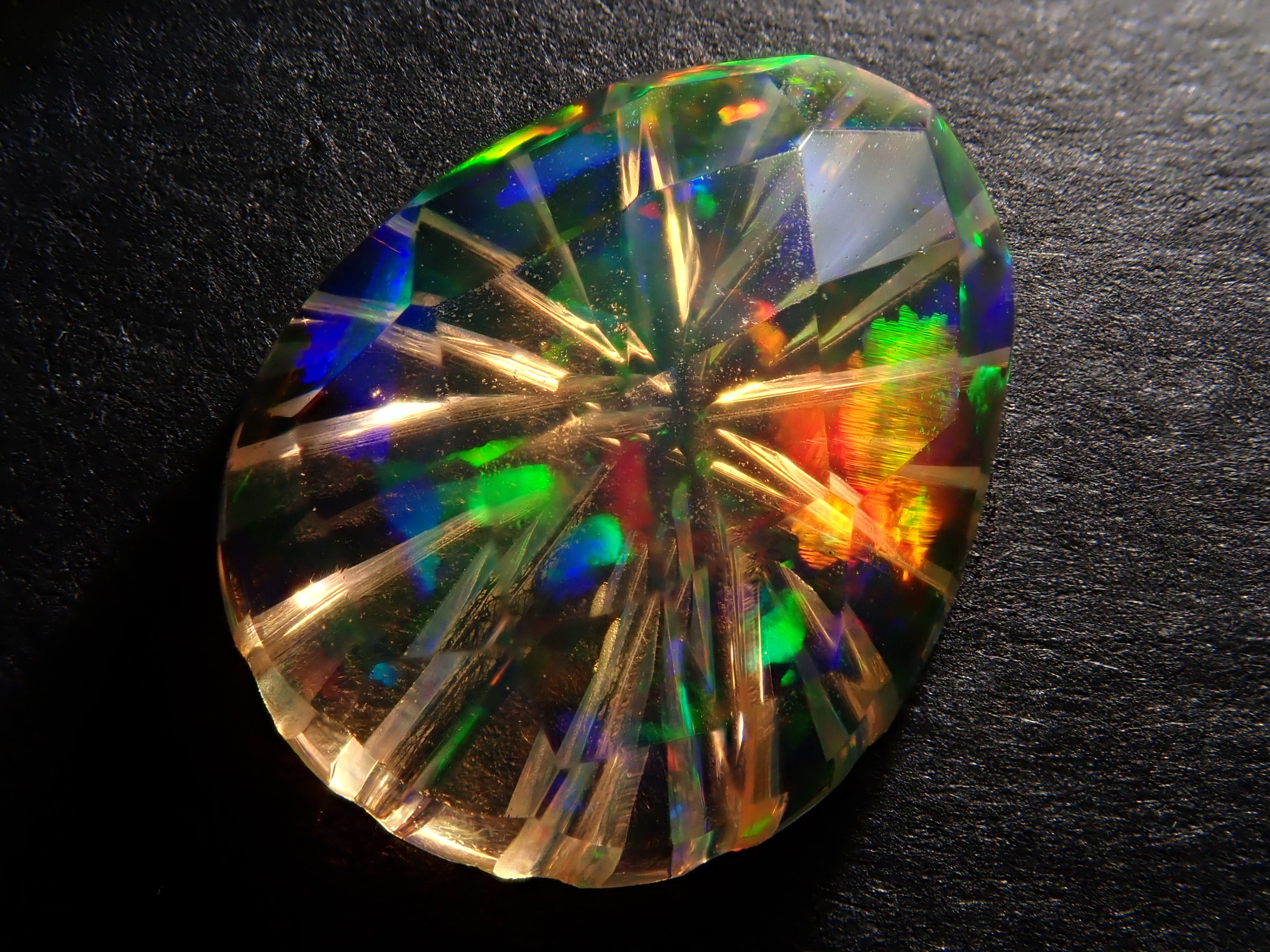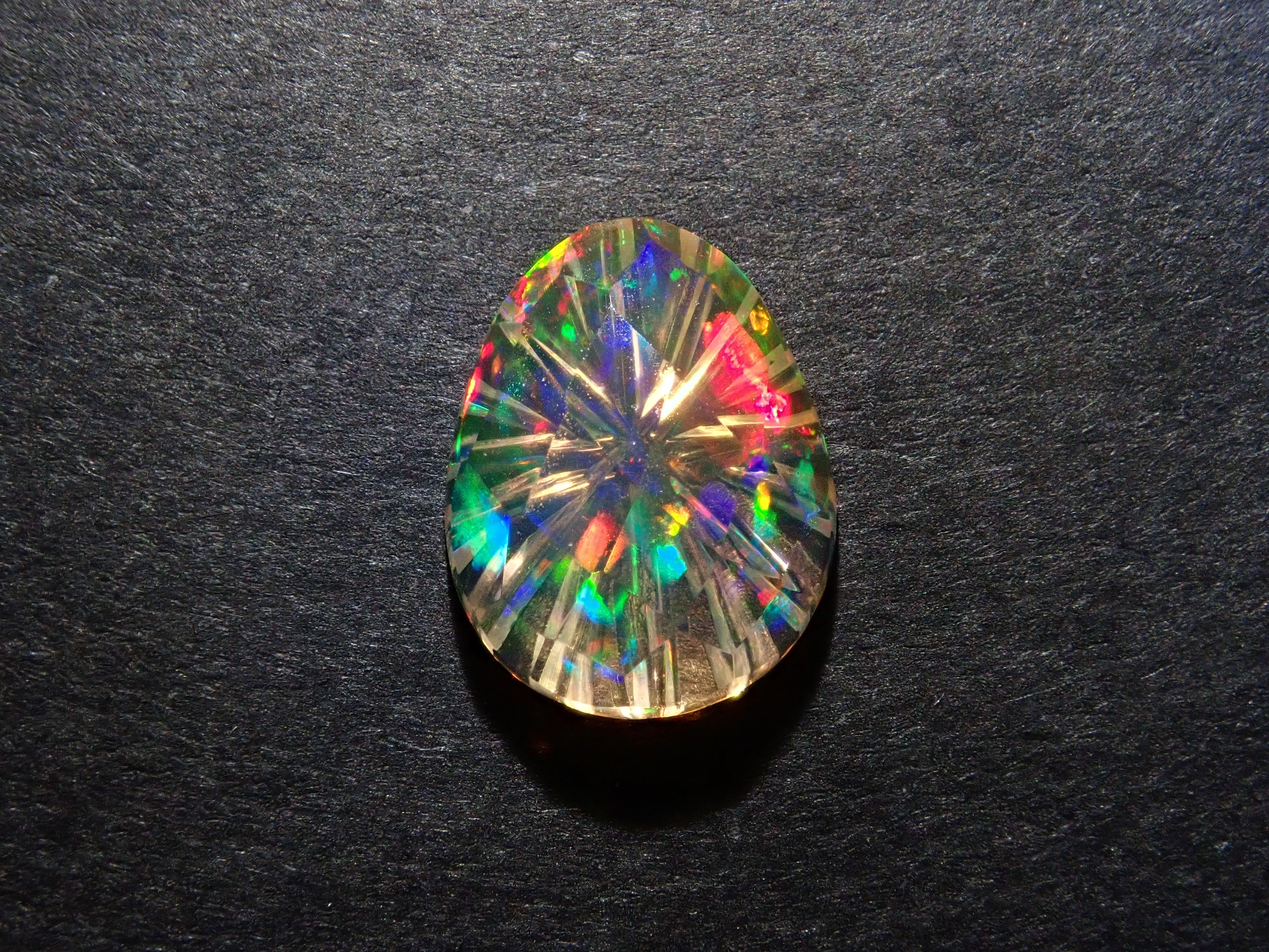 This is a Mexican fire opal "Checker x Subaru" made by Koshu Takaishi Kiriko, a collaboration between Shimizu Kiseki and Mr. Yoichi Fukasawa . Mr. Shimizu handles the facets and Mr. Fukasawa handles the facets.
