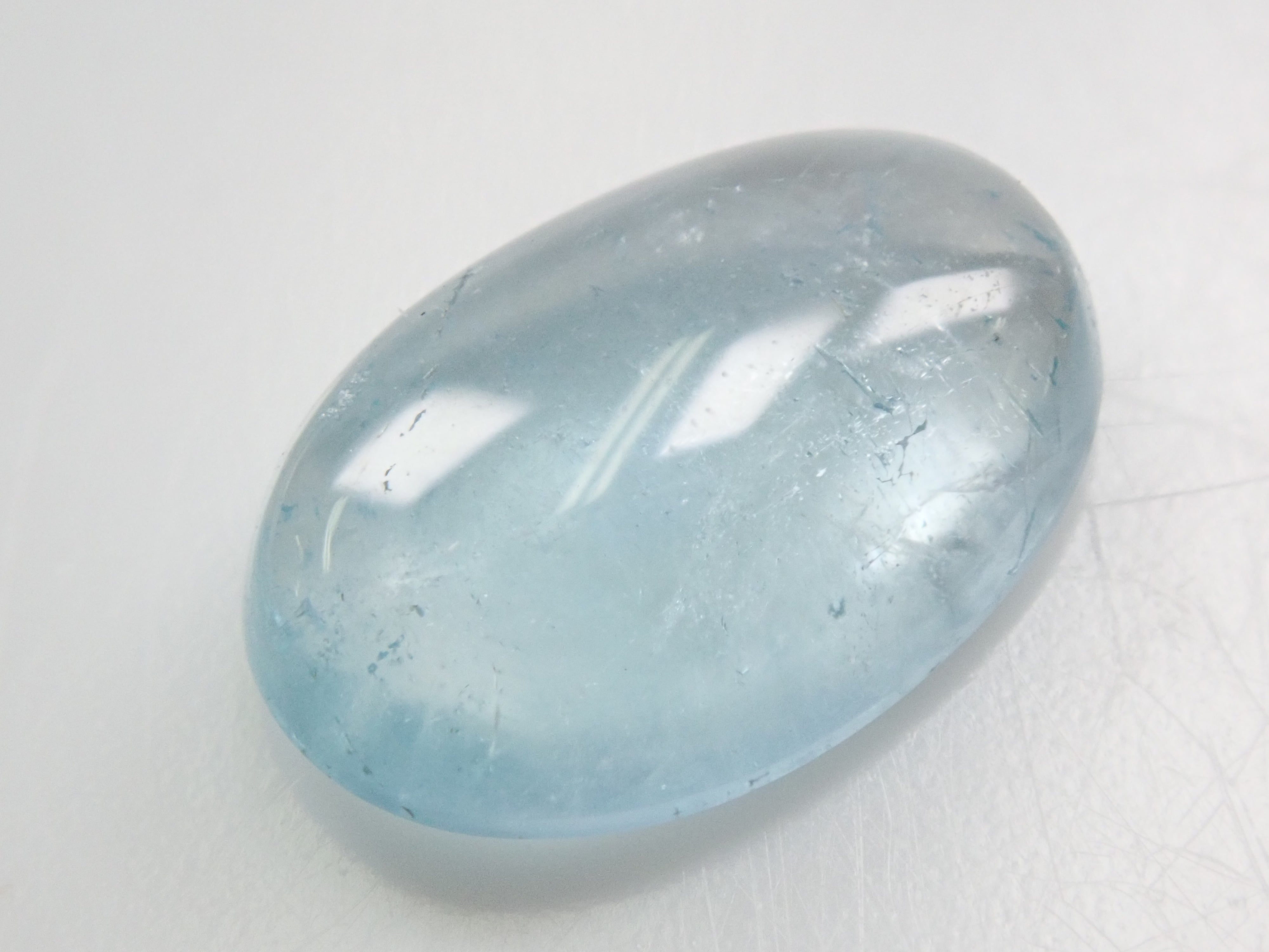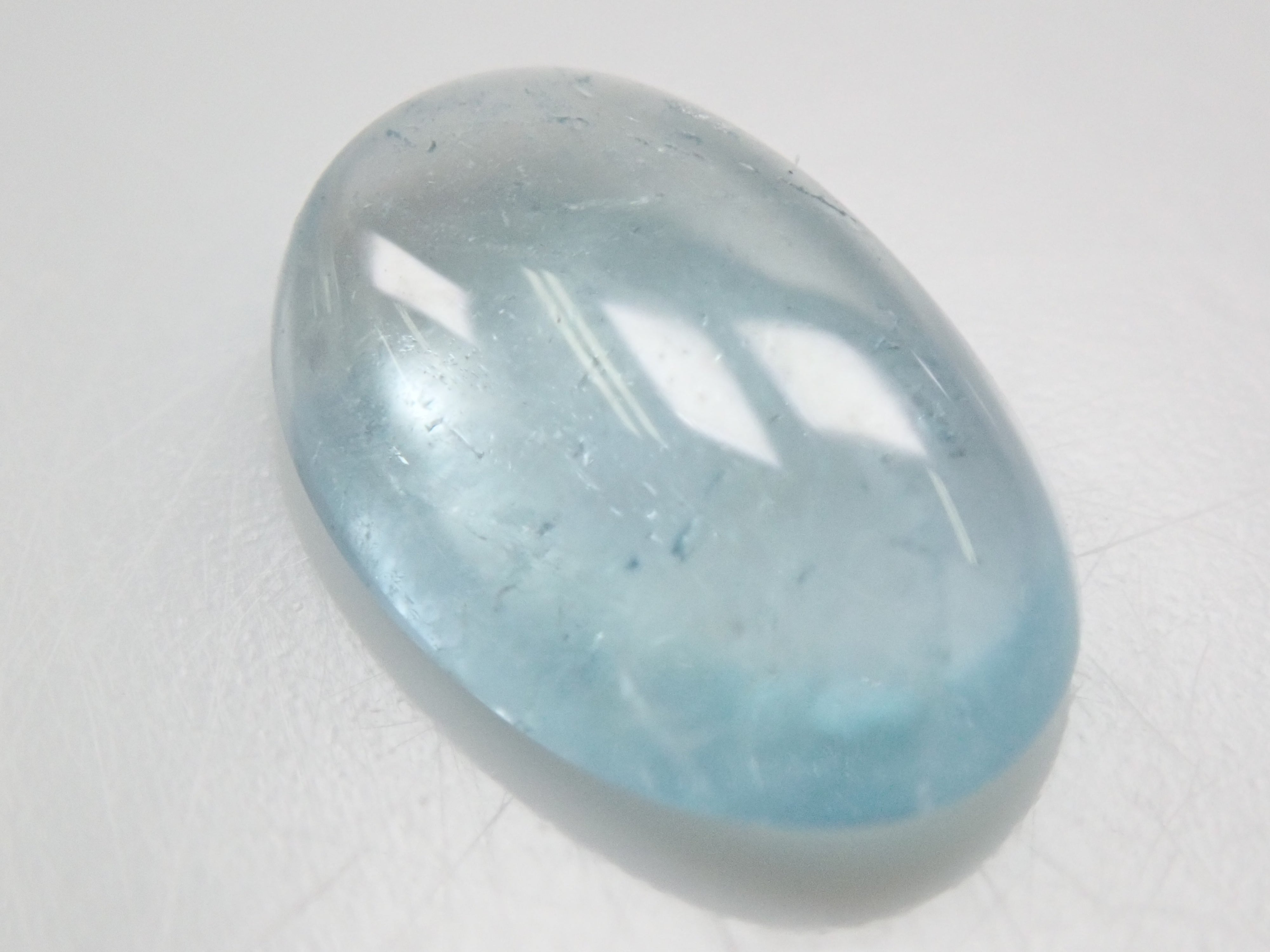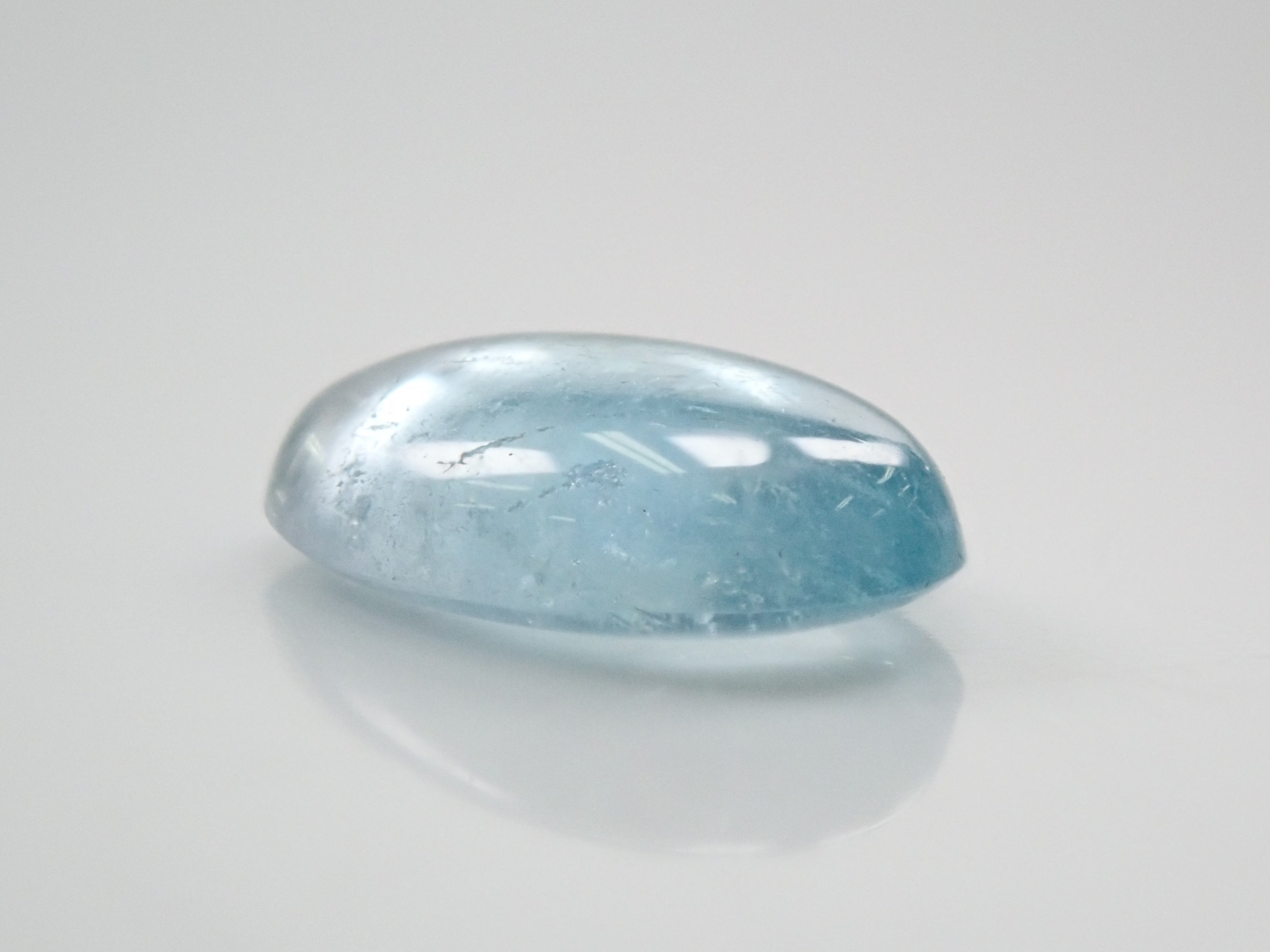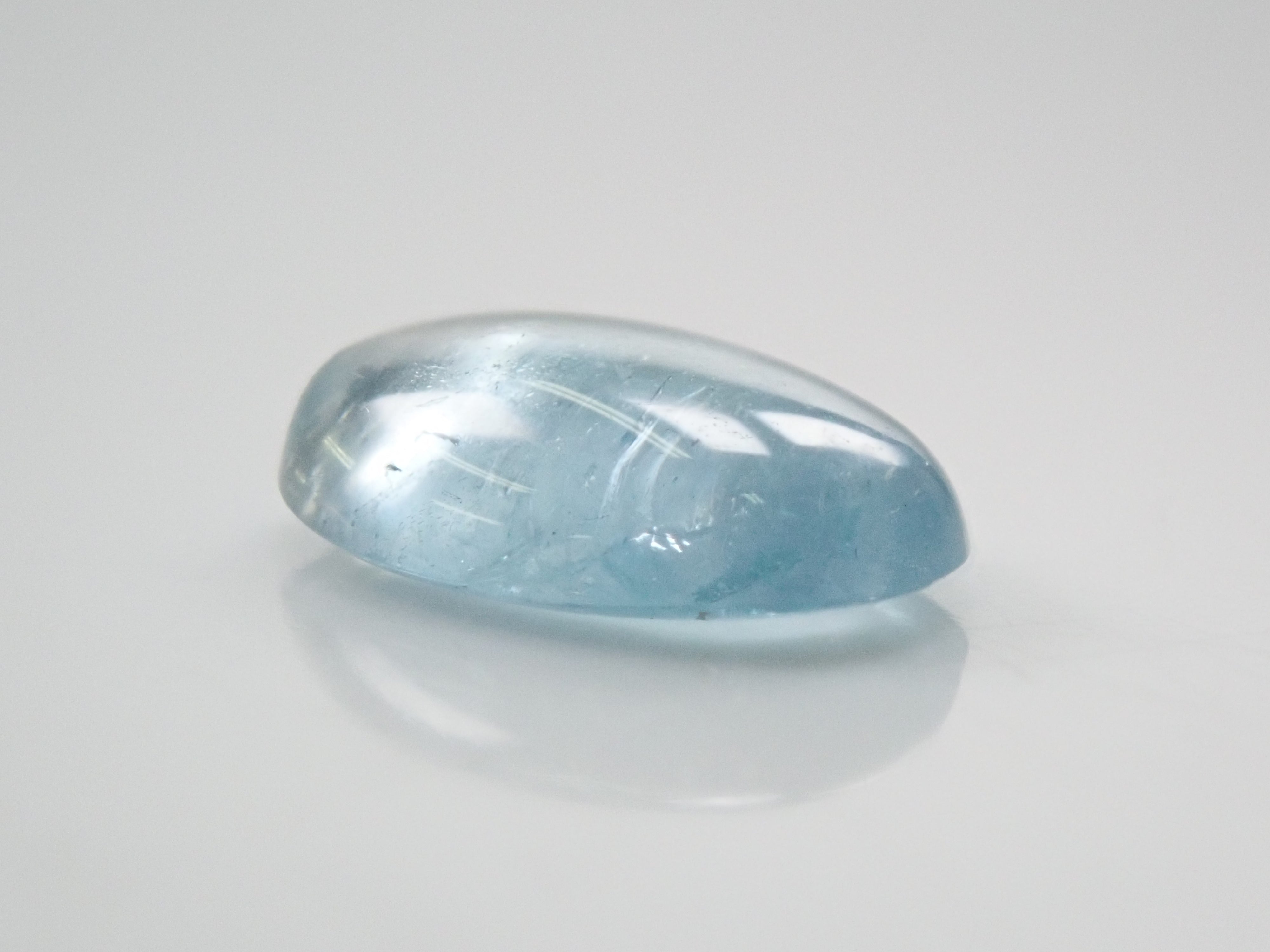 Euclase's name comes from the Greek words "eu", which means "well", and "klasis", which means "to break". As its origin suggests, it has a perfect cleavage. Because it is a rare species, it is a rare stone that is rarely made into jewelry. There are color variations such as white, colorless, light green, light blue, and dark blue. A loose, transparent cabochon cut from Colombian Euclase.