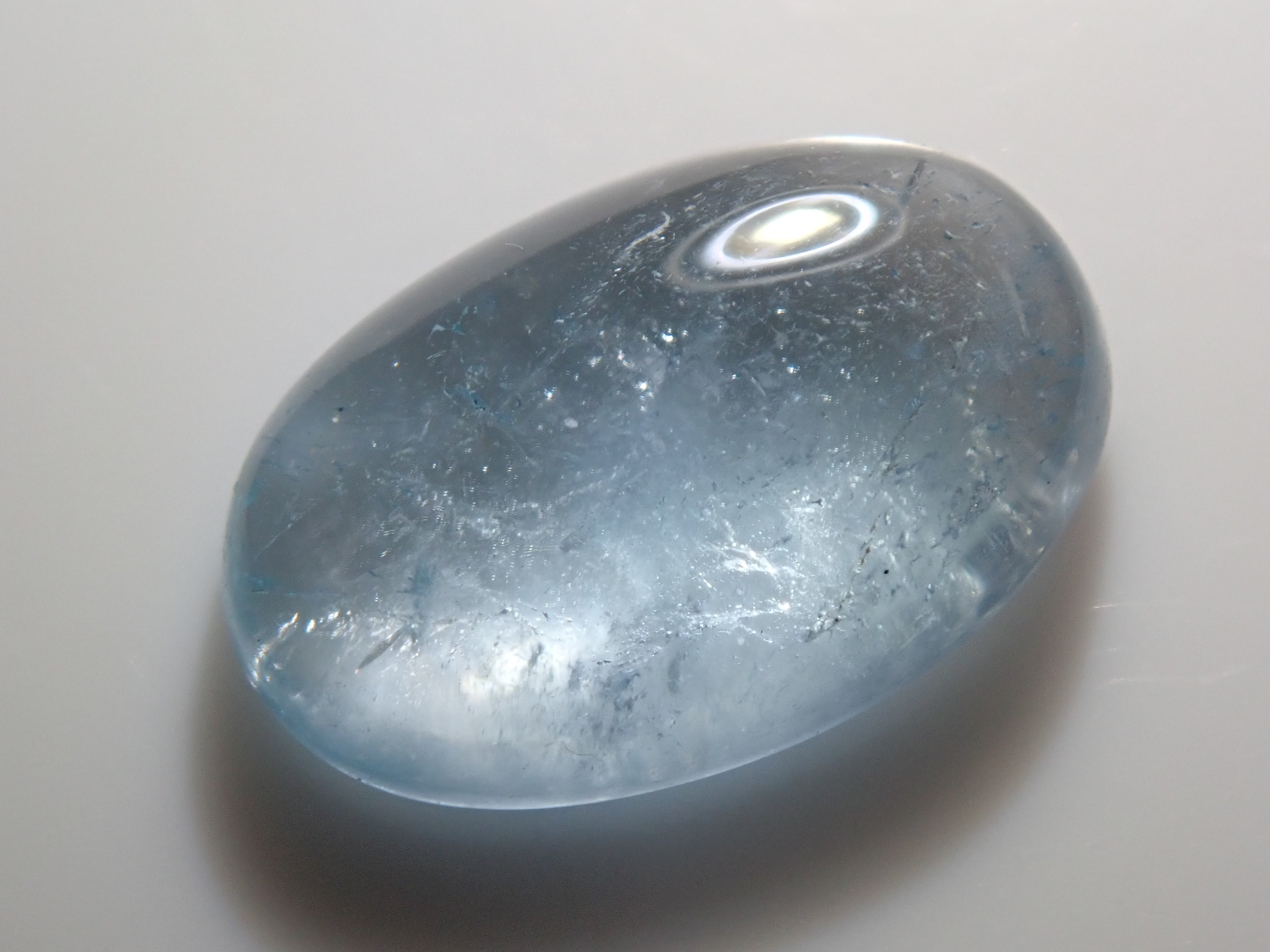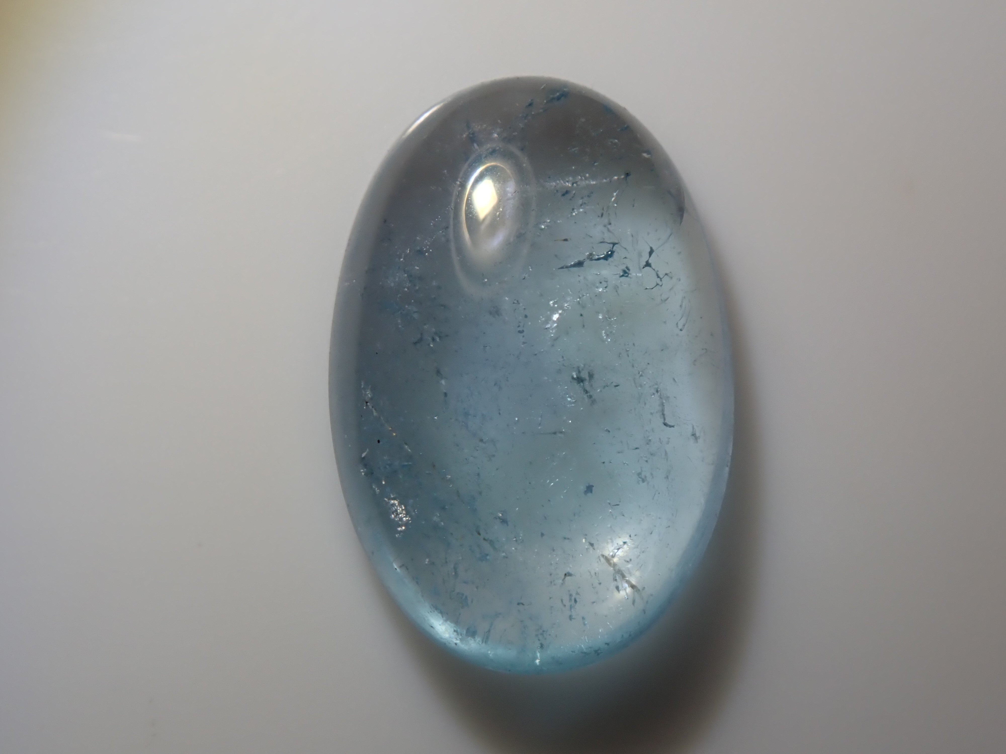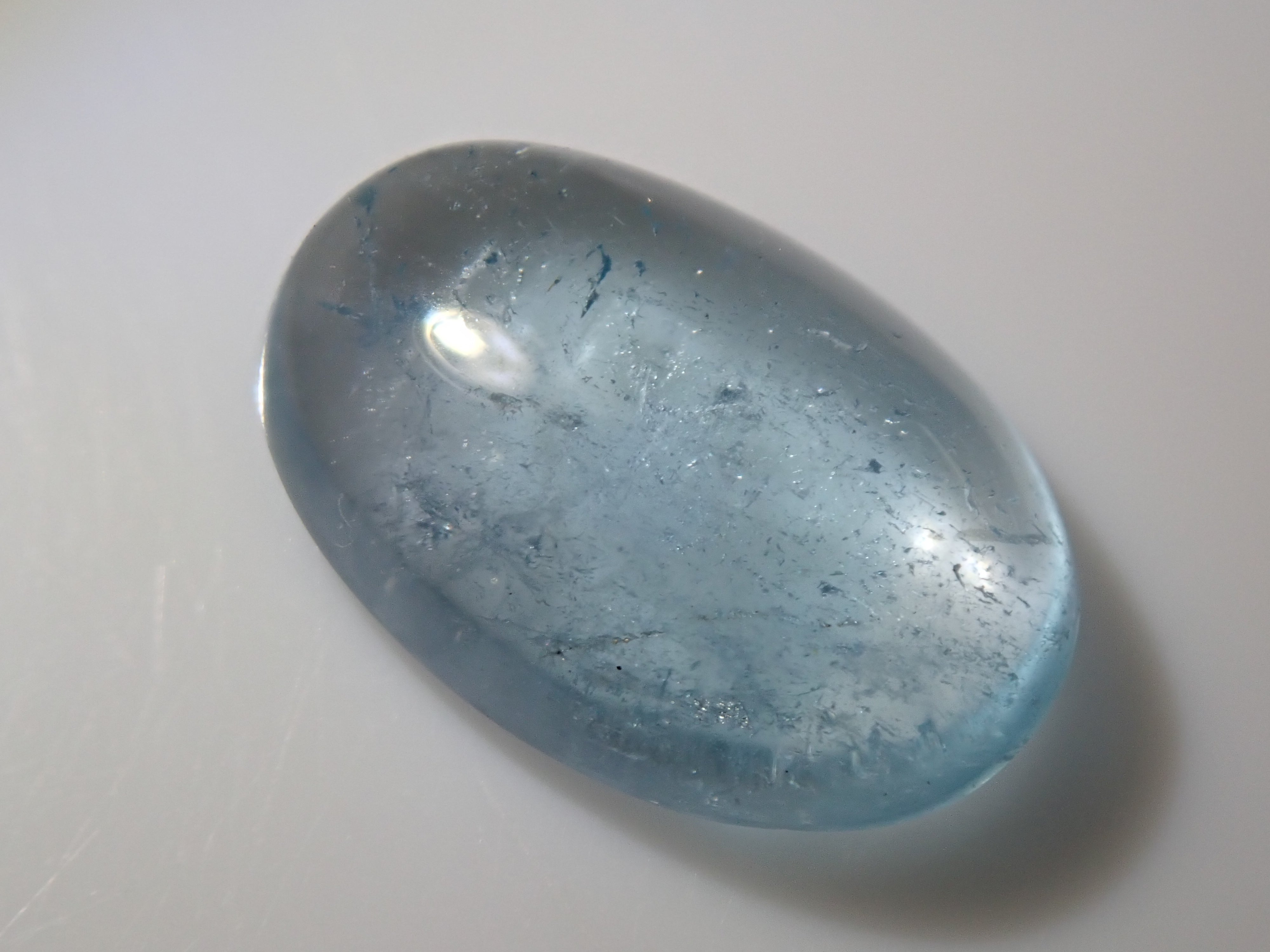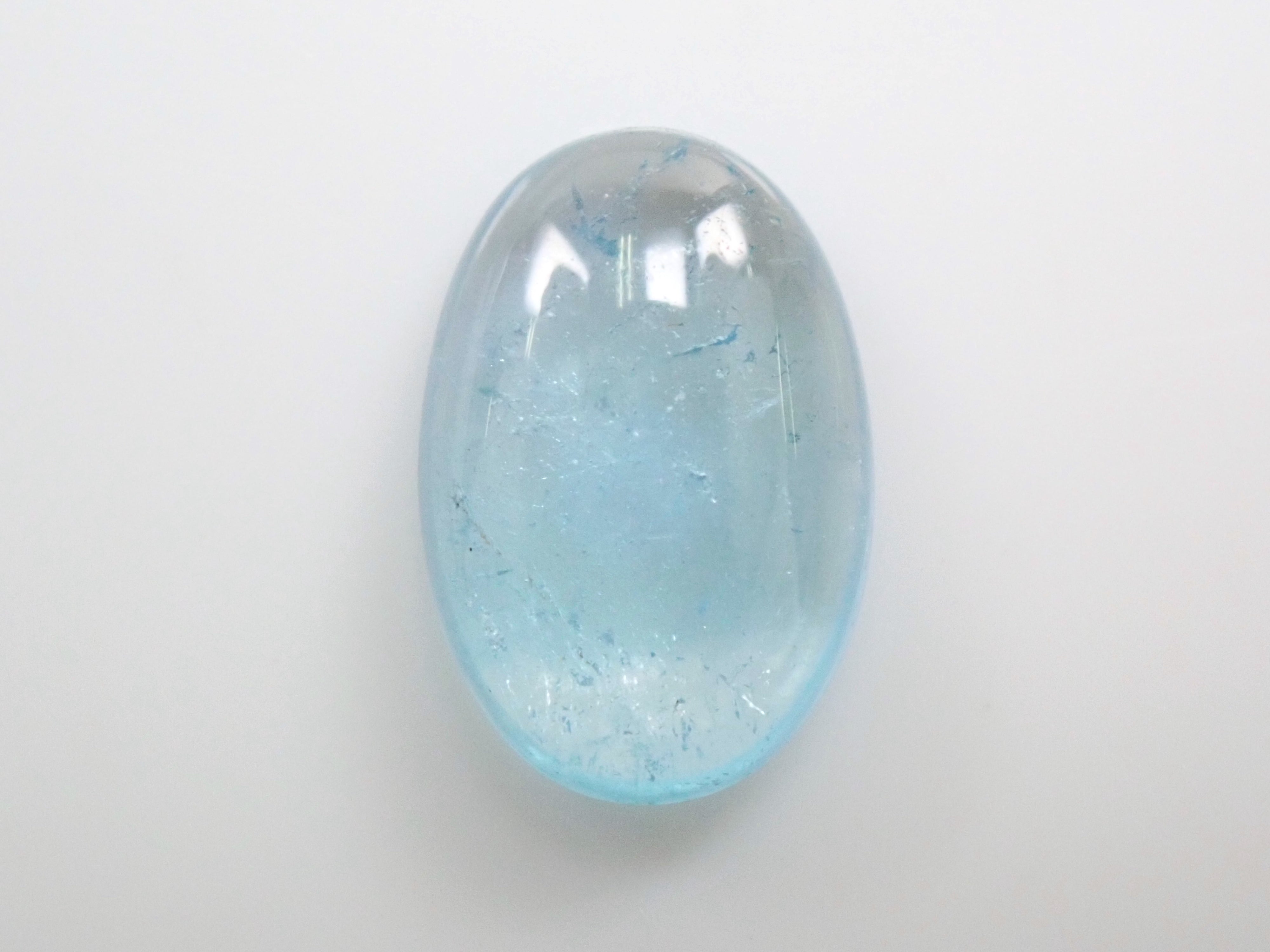 Euclase's name comes from the Greek words "eu", which means "well", and "klasis", which means "to break". As its origin suggests, it has a perfect cleavage. Because it is a rare species, it is a rare stone that is rarely made into jewelry. There are color variations such as white, colorless, light green, light blue, and dark blue. A loose, transparent cabochon cut from Colombian Euclase.