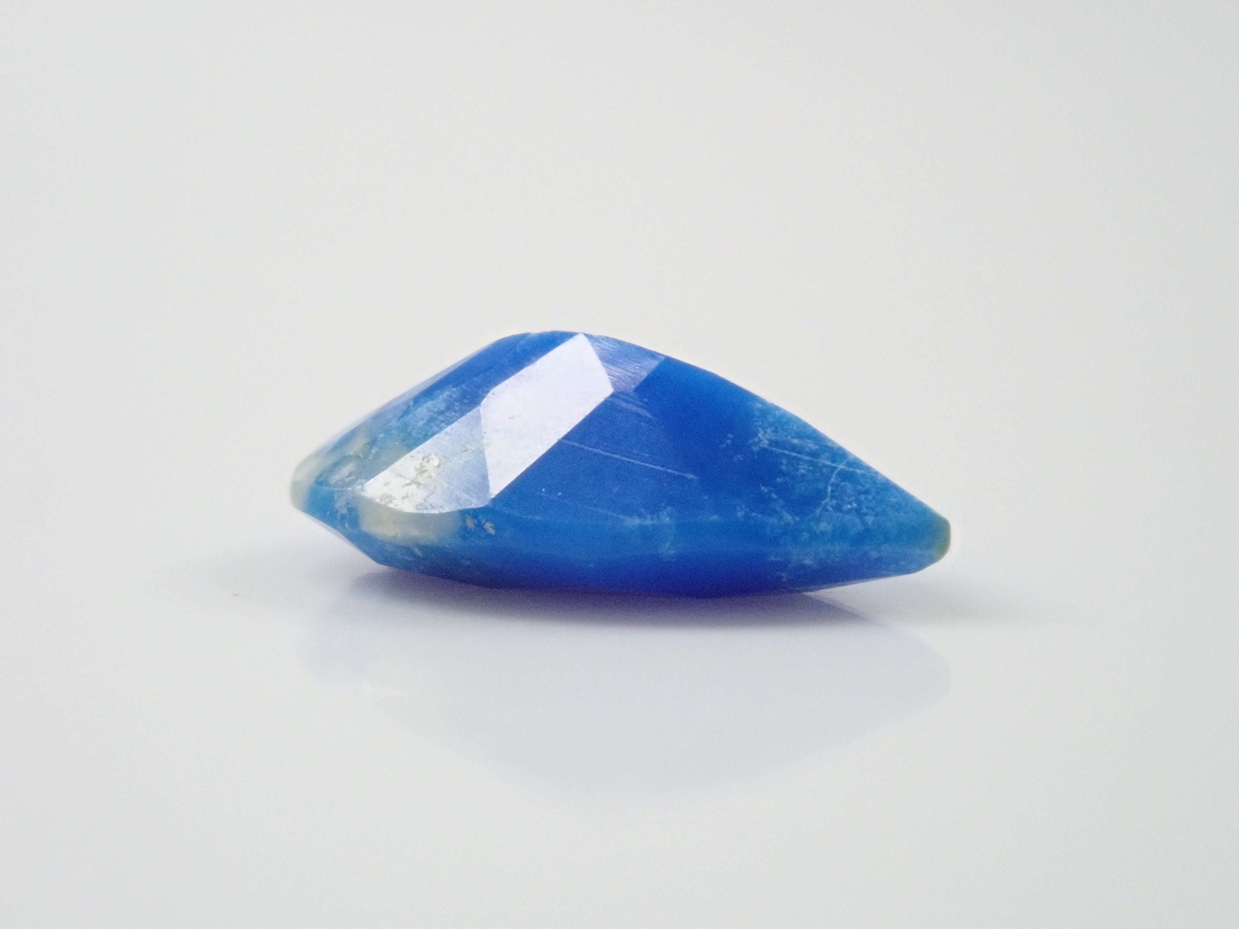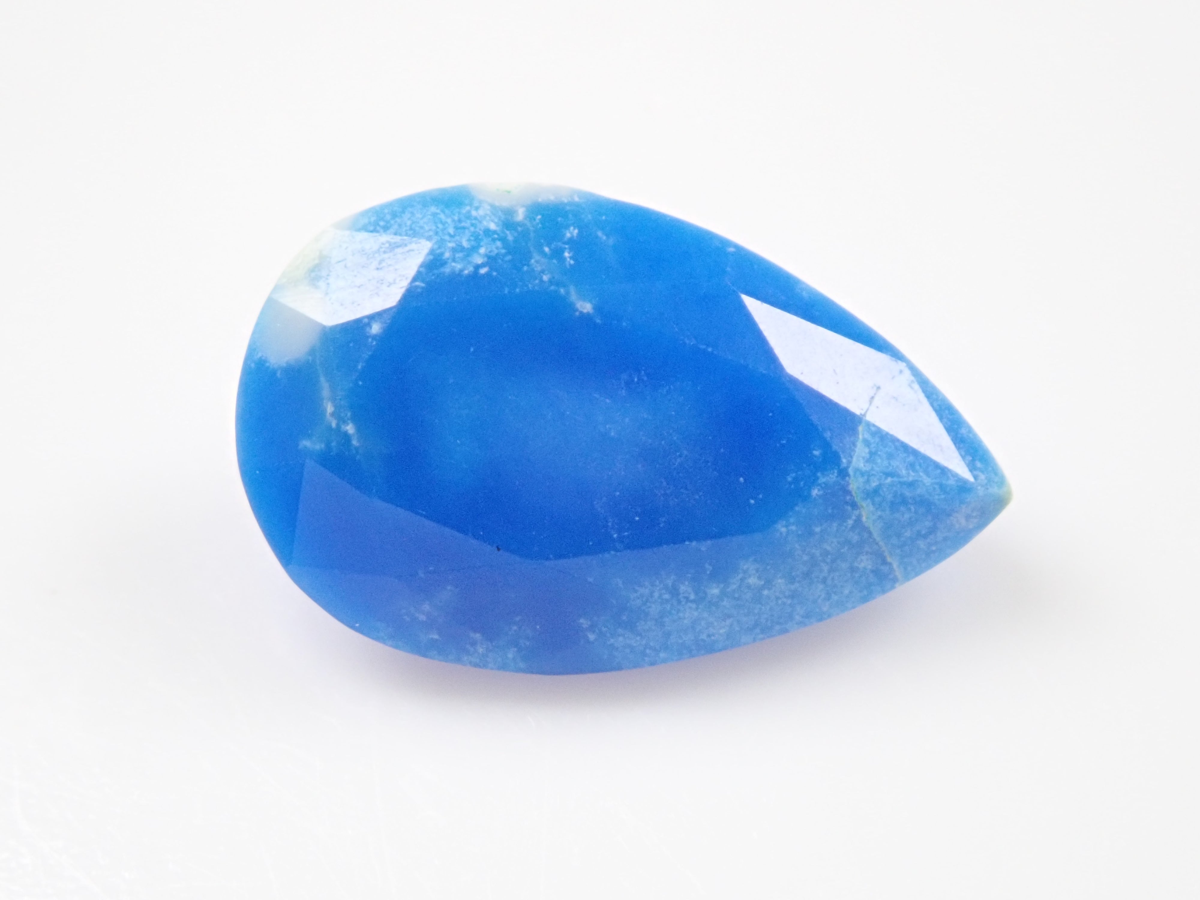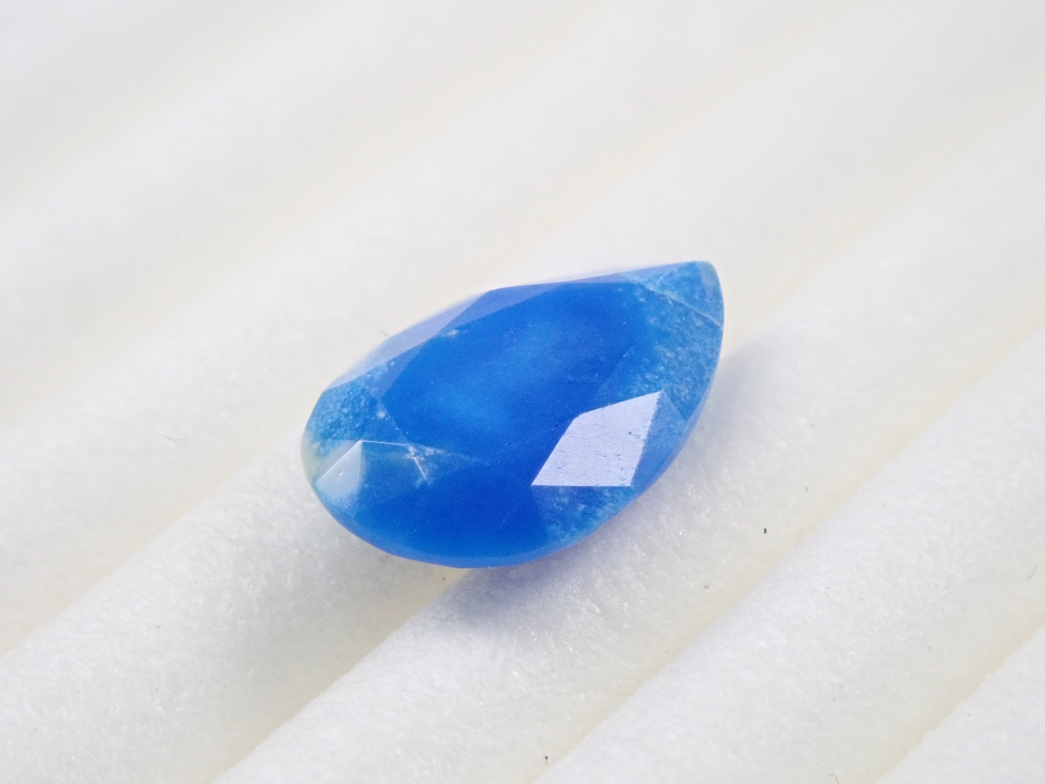 Ceruleite, a gemstone similar to turquoise, is called pseudoturquoise in Japanese. Discovered in 1976, it has a cerulean blue (sky blue) hue, and its name comes from the Latin word caeruleus, meaning sky blue. This is Ruth, which I bought in Tucson, USA in 2023. It is loose with a faceted cut, which is rare for Ceruleite. A certificate of identification from the Japan-German Gem Research Institute is included.