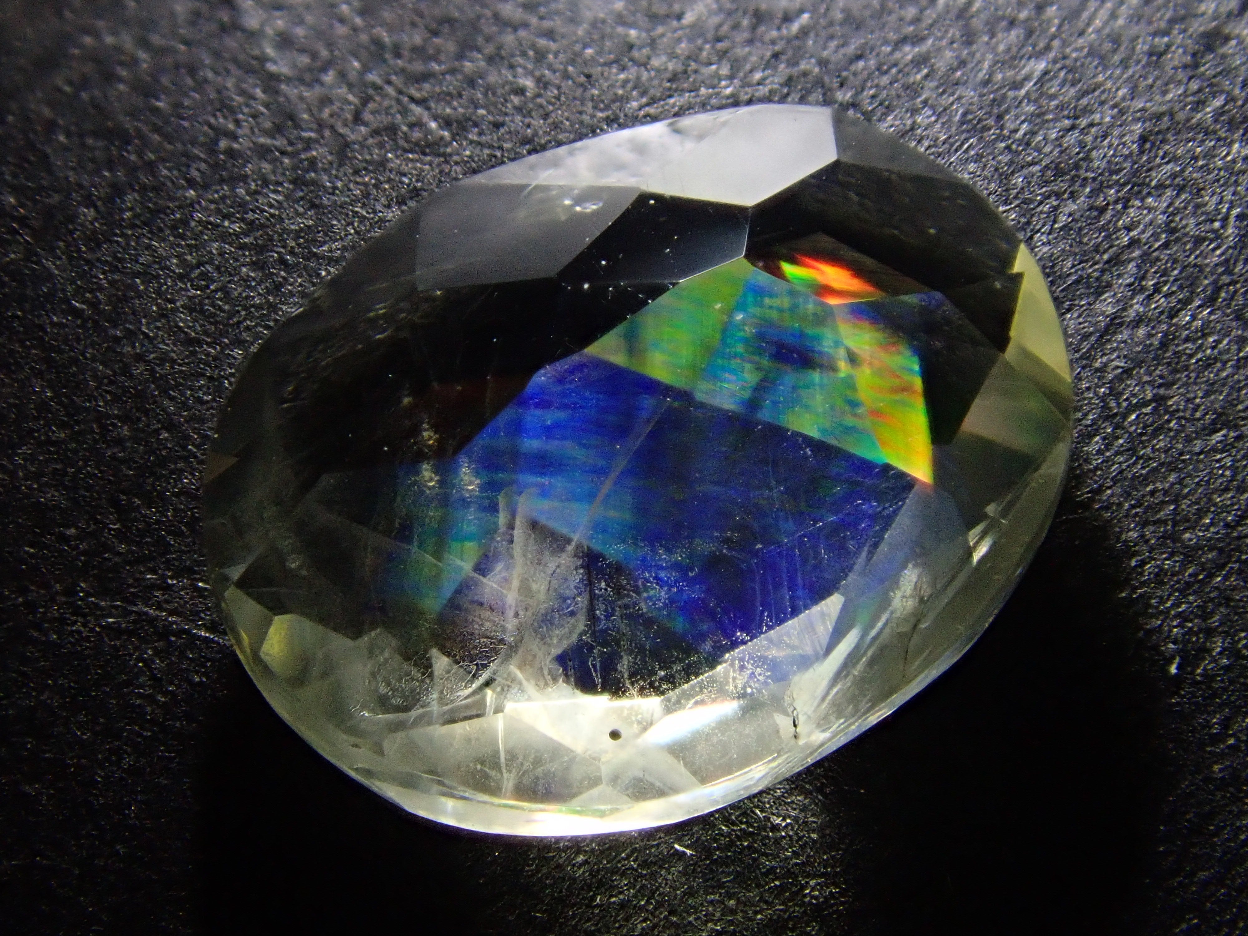 Leucite is also called leucite in Japanese. This is a Resstone with little circulation. It is also famous for being produced in Italy, and has a hardness of 5.5 to 6. This is a type of leucite that allows you to enjoy the play of color effect like opal. A certificate of identification from the Japan-German Gem Research Institute is included.