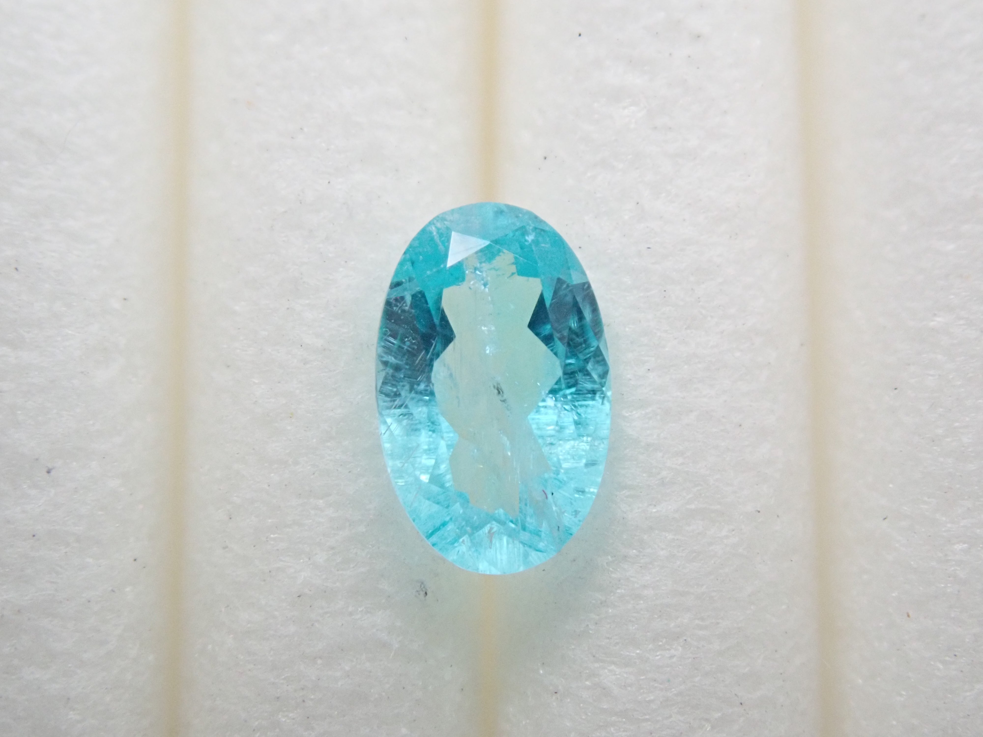Paraiba tourmaline is attractive for its exquisite color, which is different from the blue of the sea or the blue of the sky. In Japan, it is defined as "blue to green tourmaline containing copper (regardless of origin)." It is a gemstone that has enduring popularity. CuO: 0.7%, MnO: 0.2%. It comes with sorting from the Gemstone and Precious Metals Association of Japan. It is a Paraiba tourmaline from Batalha, Brazil.