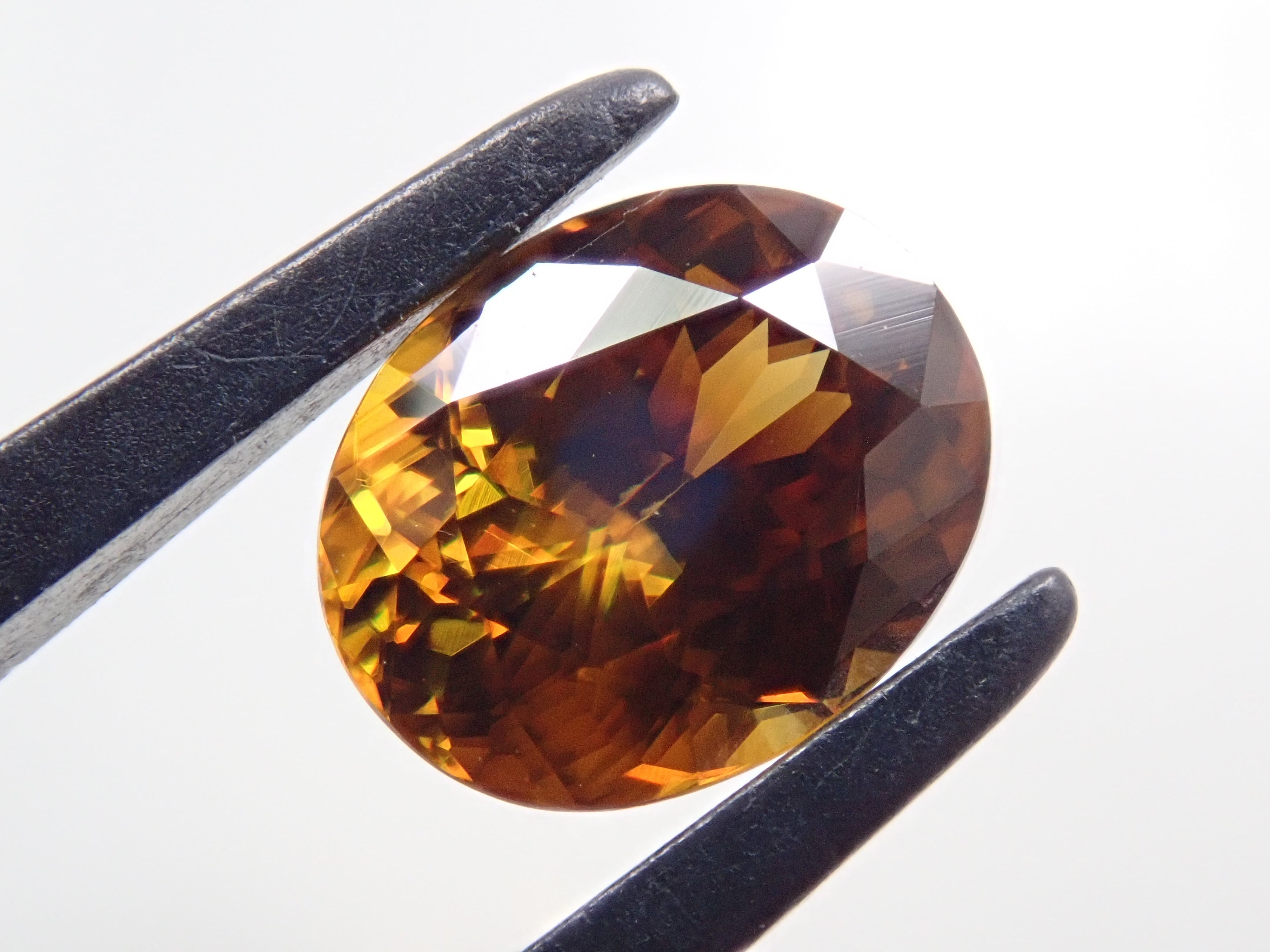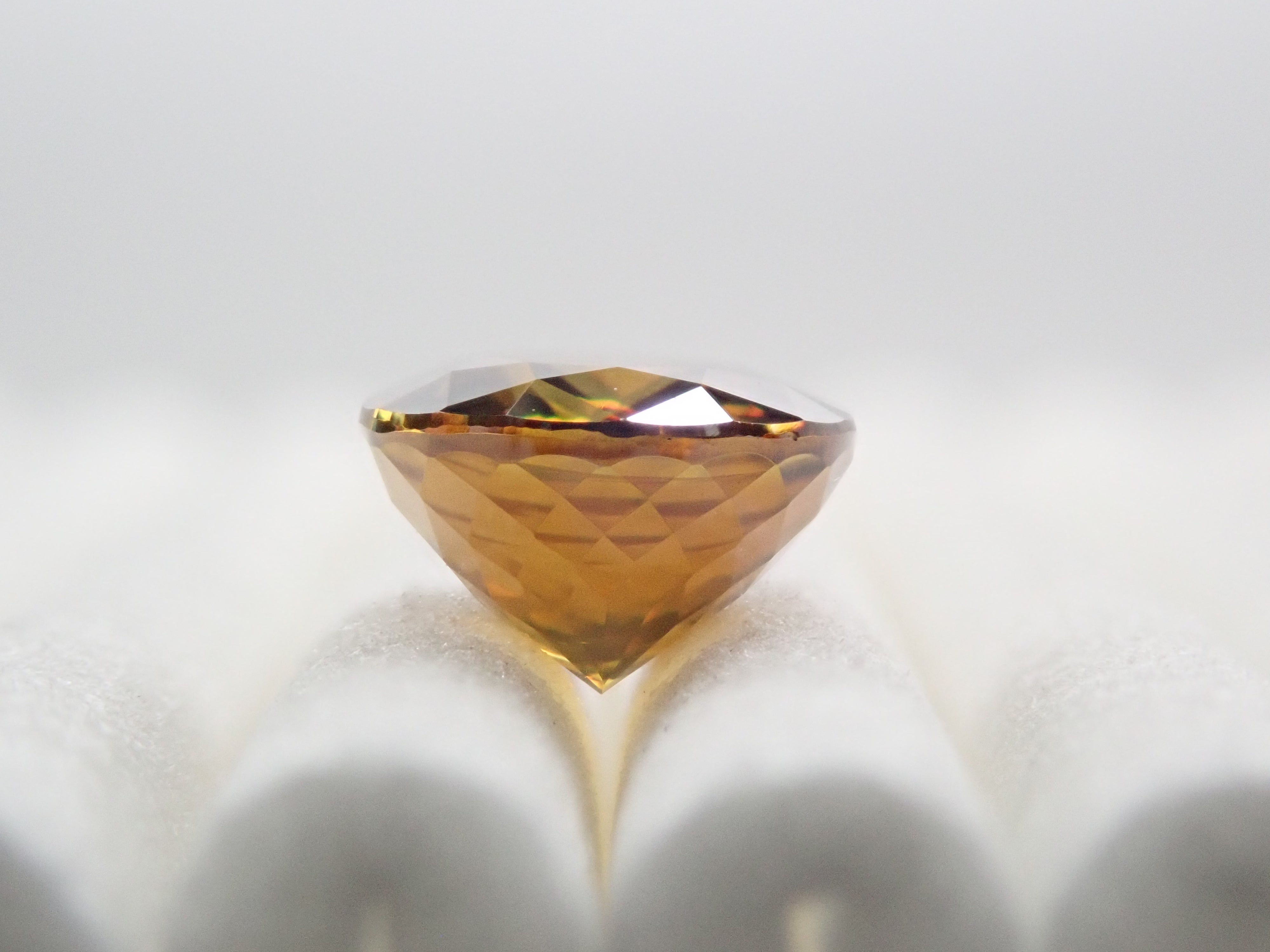 A sphene that shows a golden glow and luxurious fire. It is gaining popularity among collectors as an attractive gemstone that emits more powerful fire than diamonds. A sphene whose radiance changes rapidly depending on the angle. Please roll it in your hand under the sunlight and look at it. Please note that some of the photos were taken using a penlight.