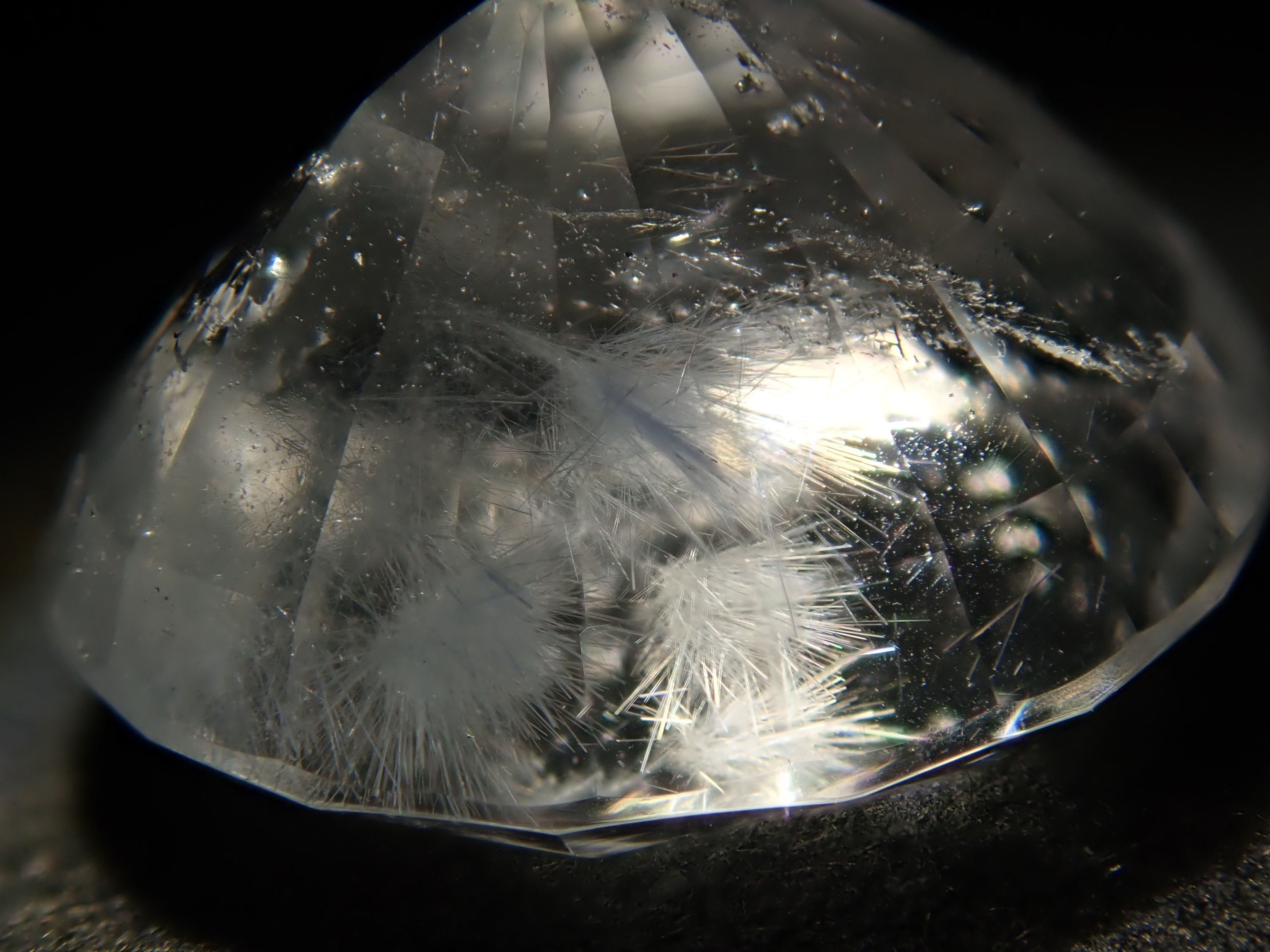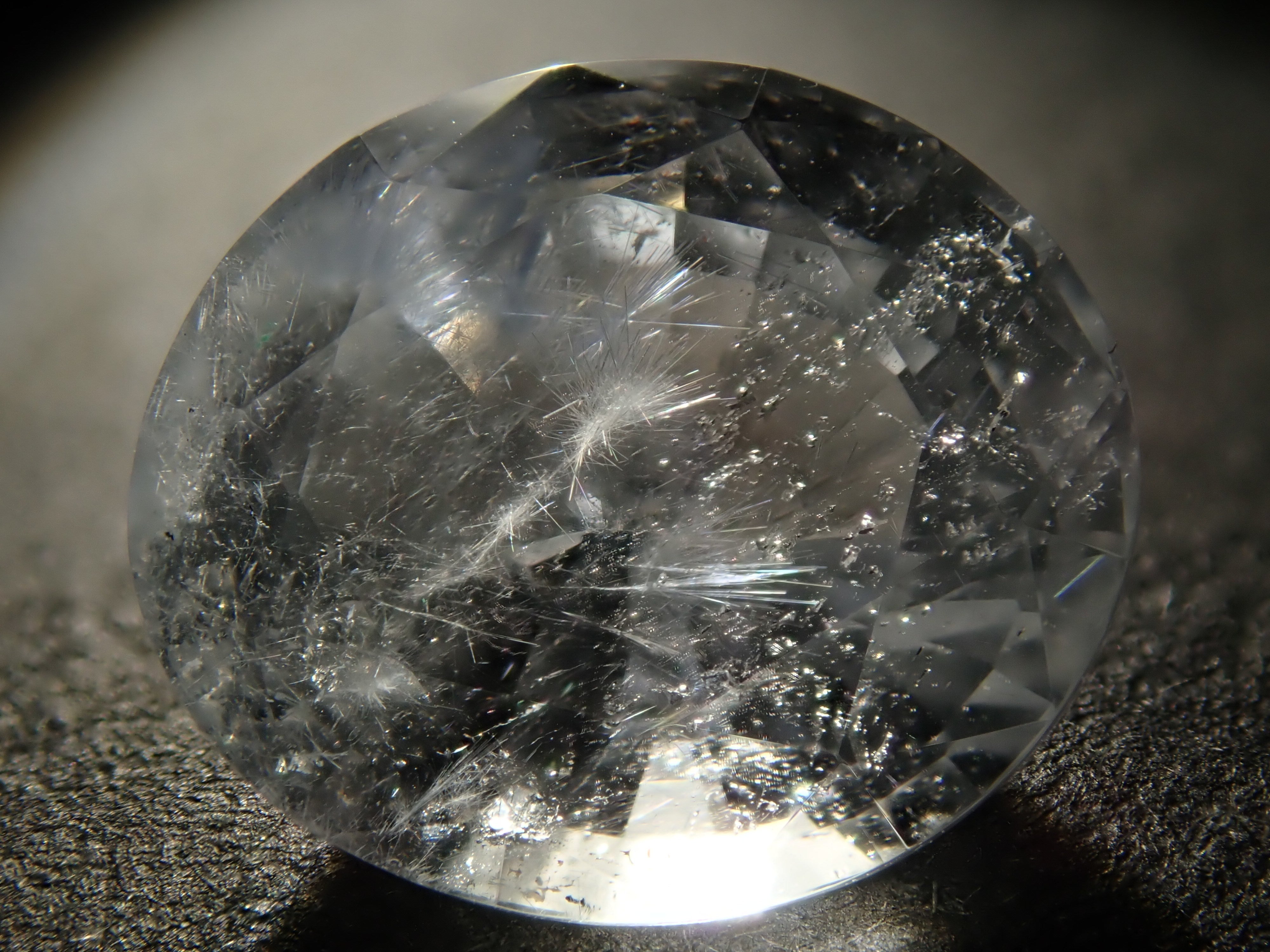 It is loose and polished into a faceted cut, which is rare for dumortierite in quartz.