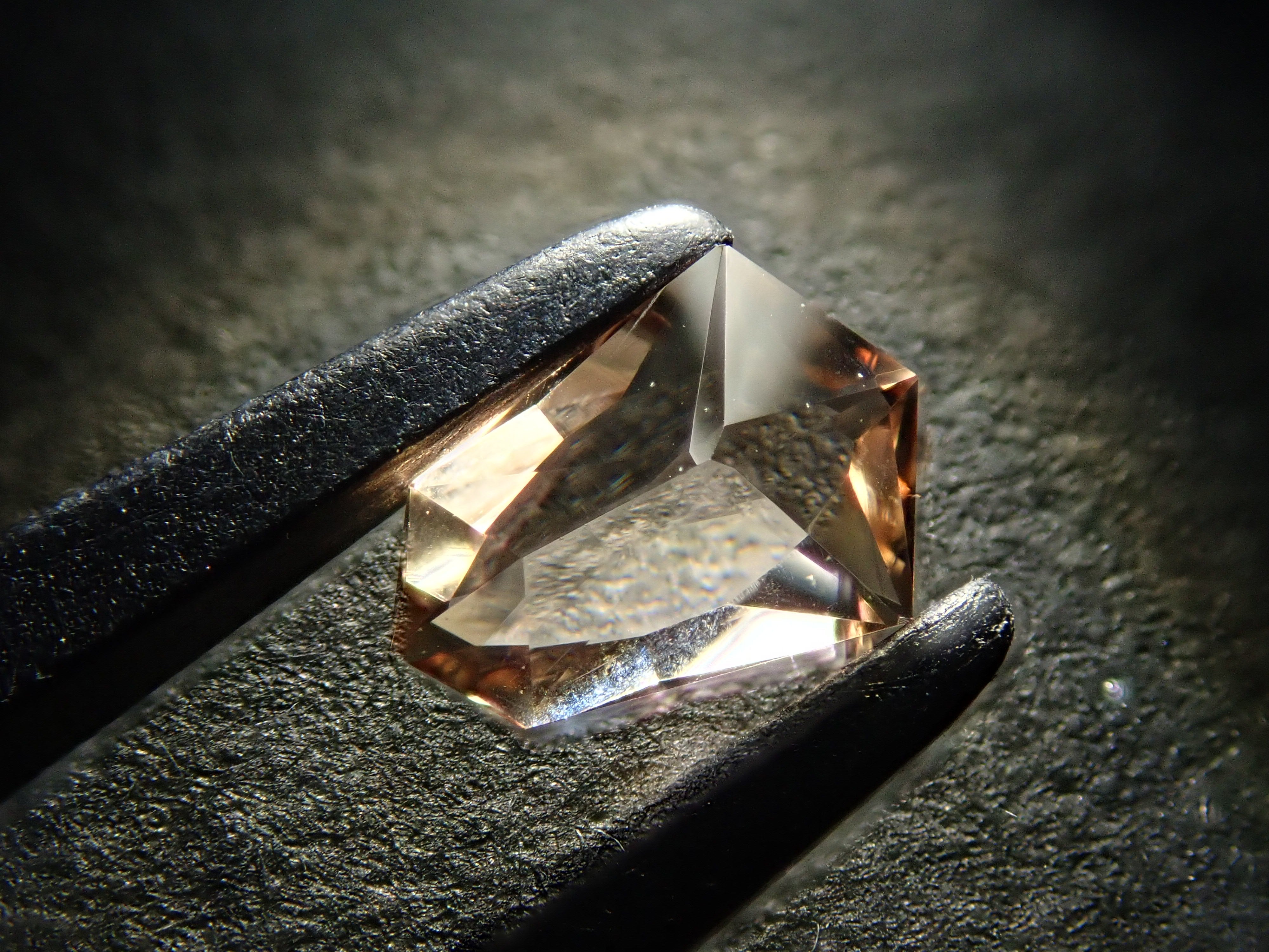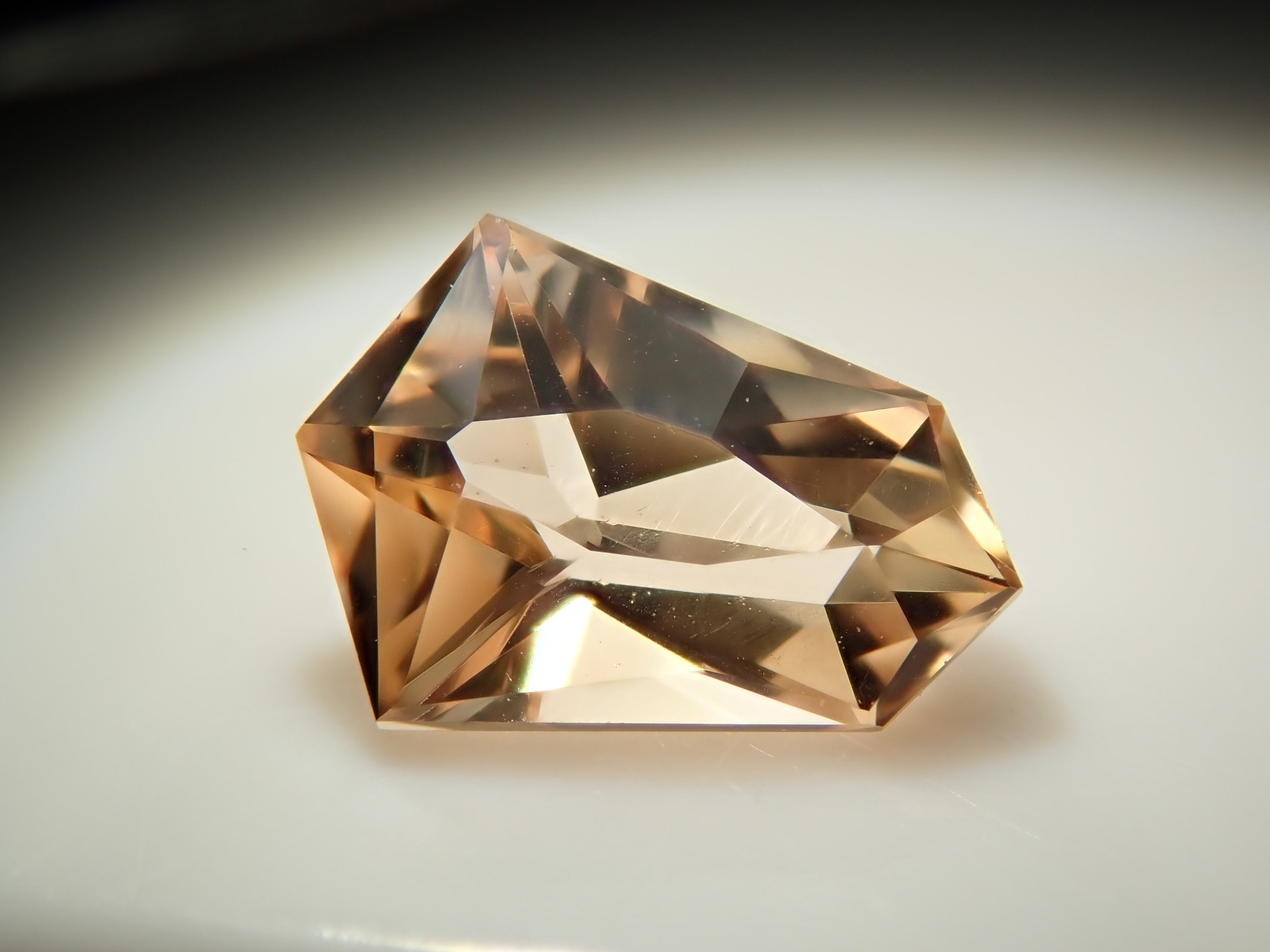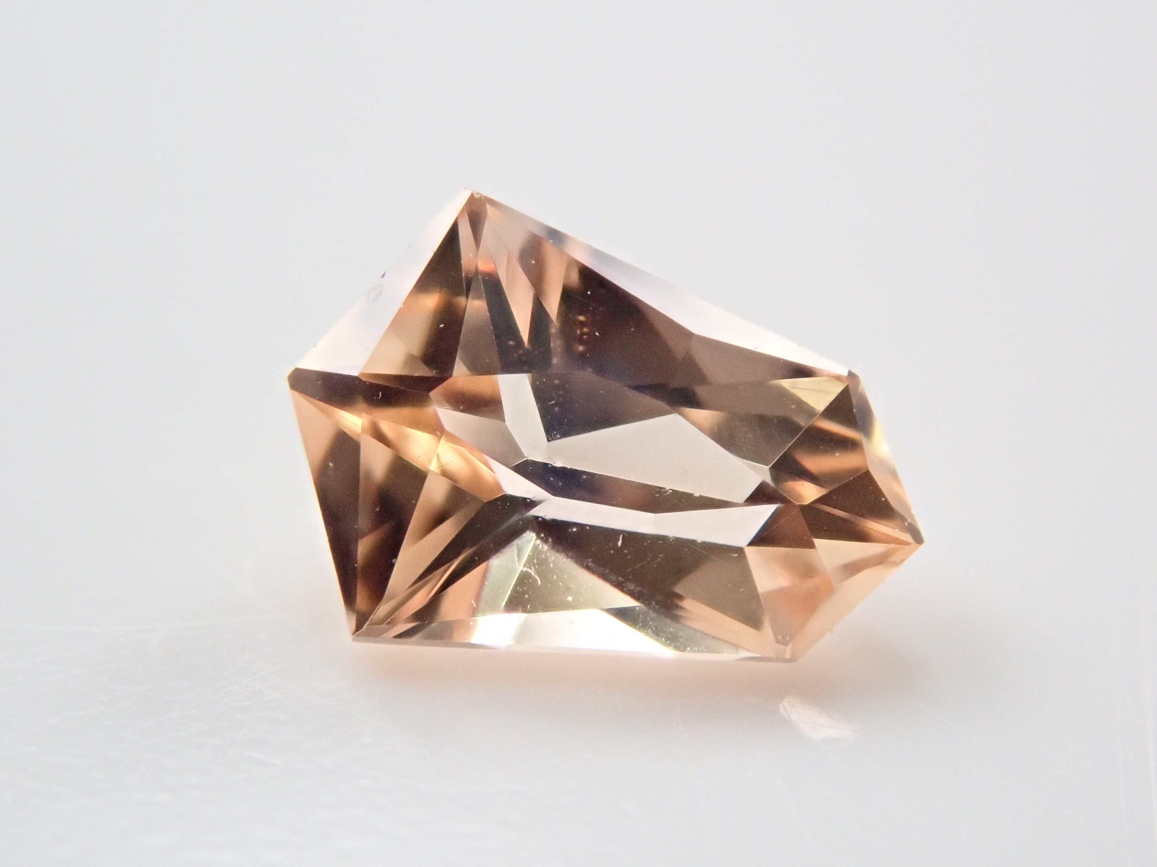 Imperial topaz is highly regarded as the best of topaz. Topaz is divided into two types: "F type" which contains fluorine and "OH type" which contains hydroxyl groups, and Imperial topaz is OH type topaz. It comes in a variety of colors such as golden, orange, pink, and red. Enjoy the elegant sparkle that lives up to the Imperial name. This is a custom-cut, highly transparent Brazilian Imperial topaz.