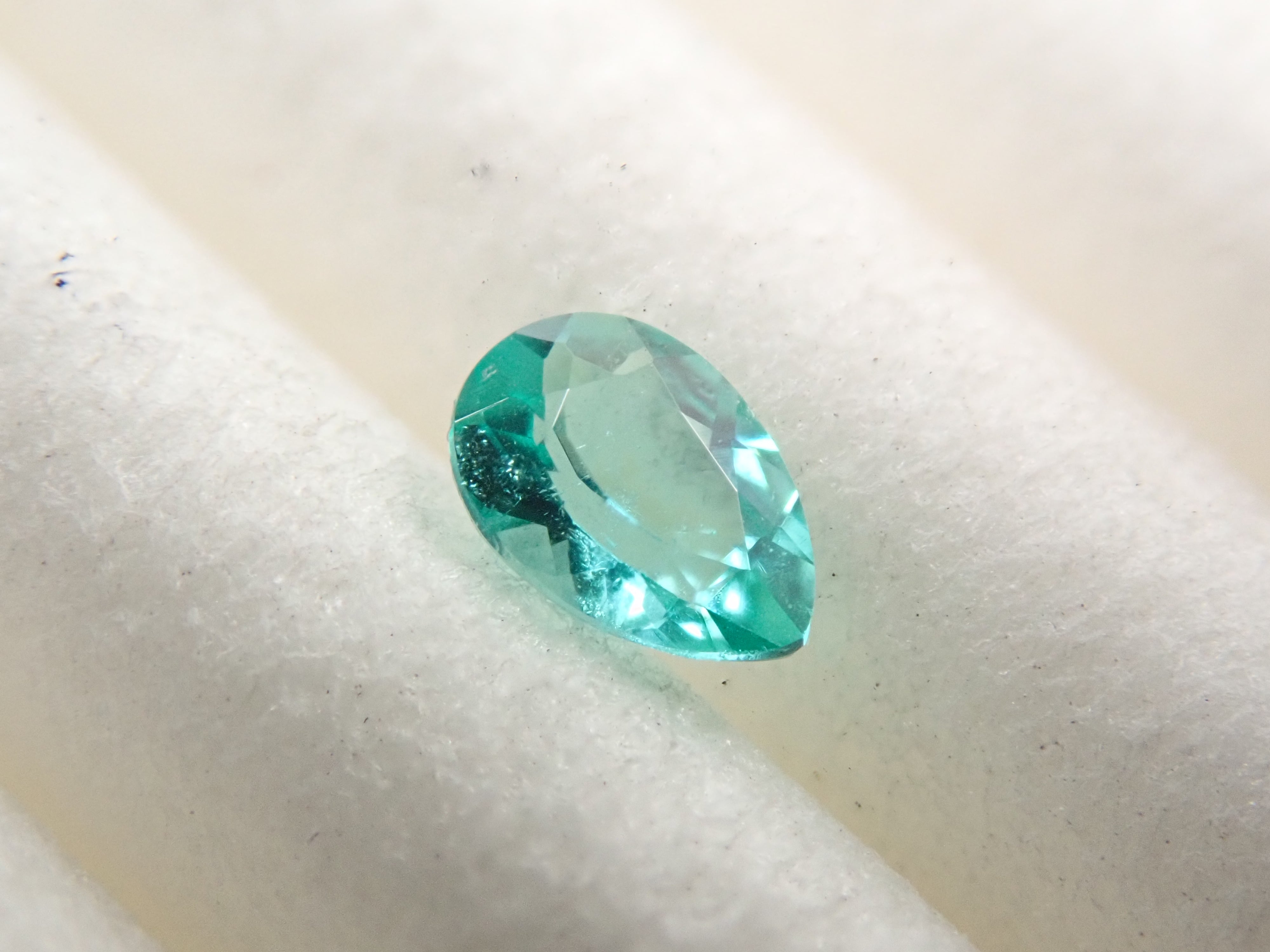 This is a high-quality unheated Brazilian Paraiba tourmaline with high transparency and vivid color. It is a Brazilian Paraiba tourmaline with CuO: 1.7% and MnO: 2.4%. It comes with a sorting certificate from the Japan Gem and Precious Metals Association. Since domestic appraisal agencies cannot issue unheated reports for Paraiba tourmalines of this color, the sorting certificate usually states that it is heated.