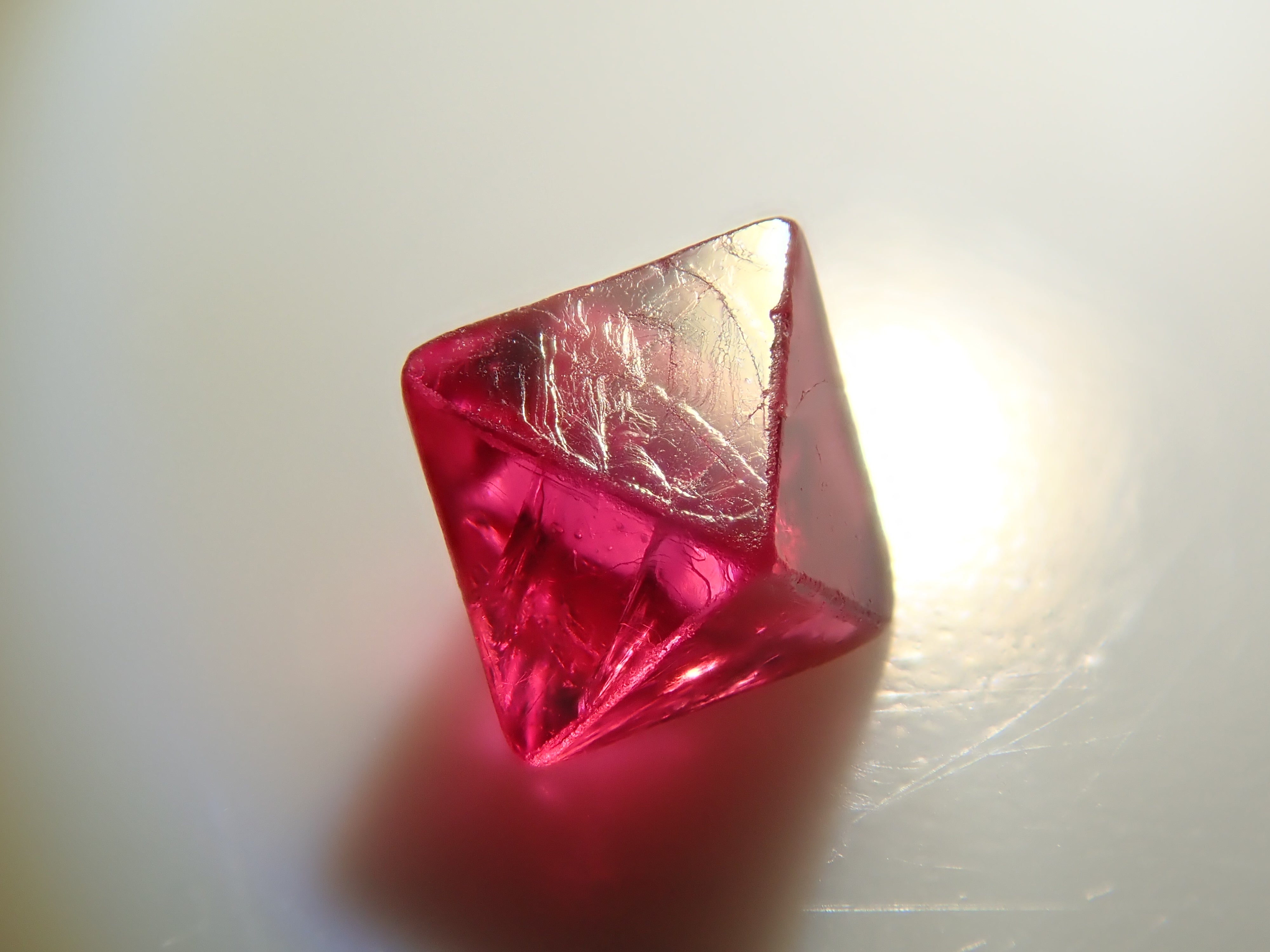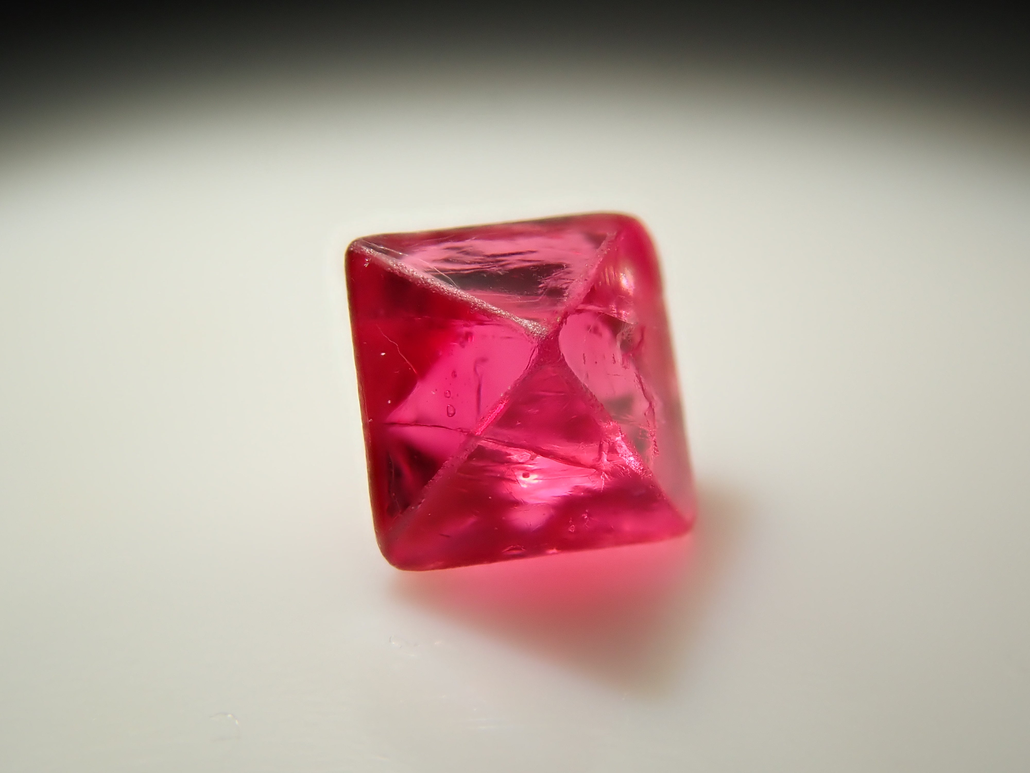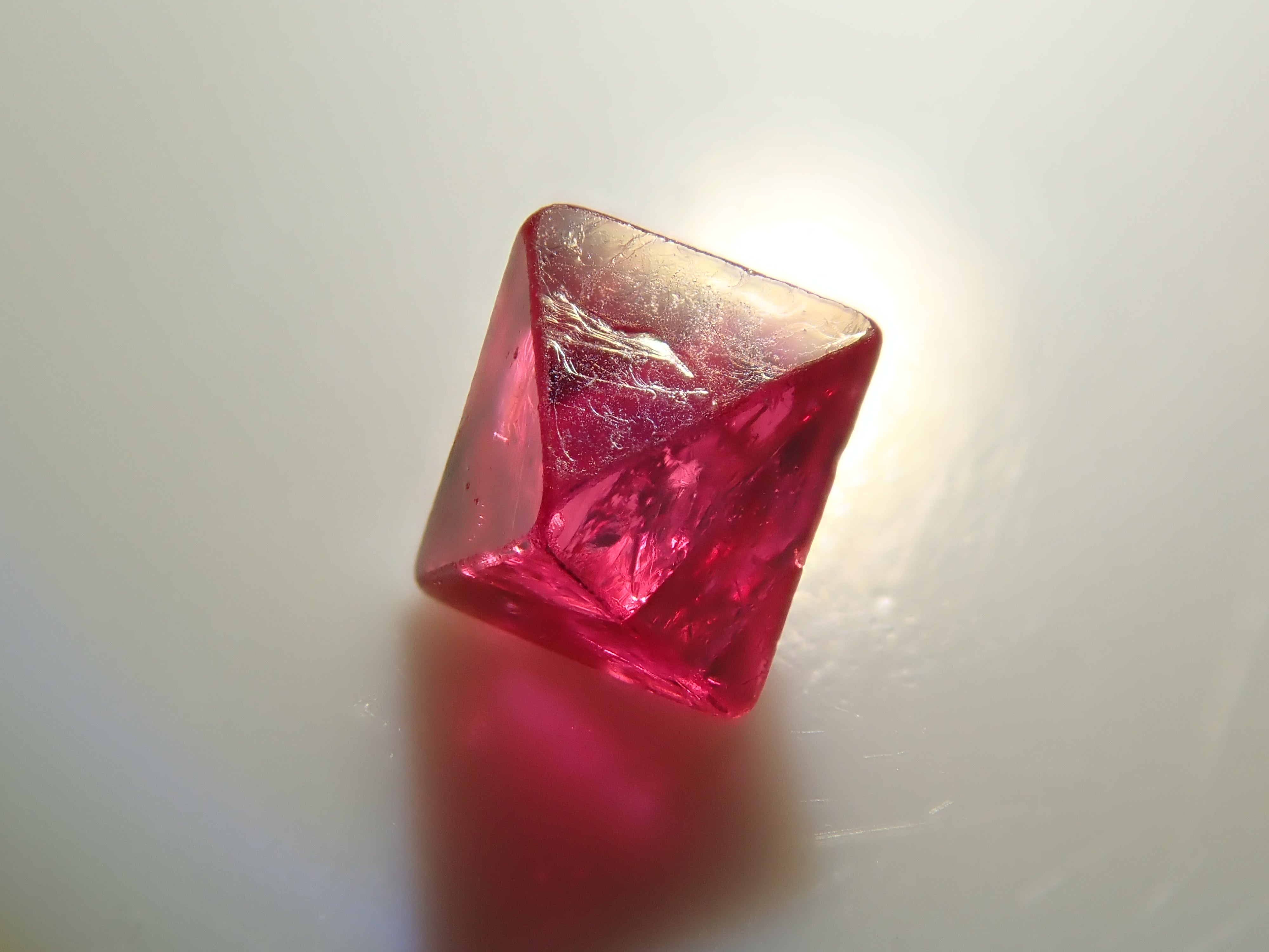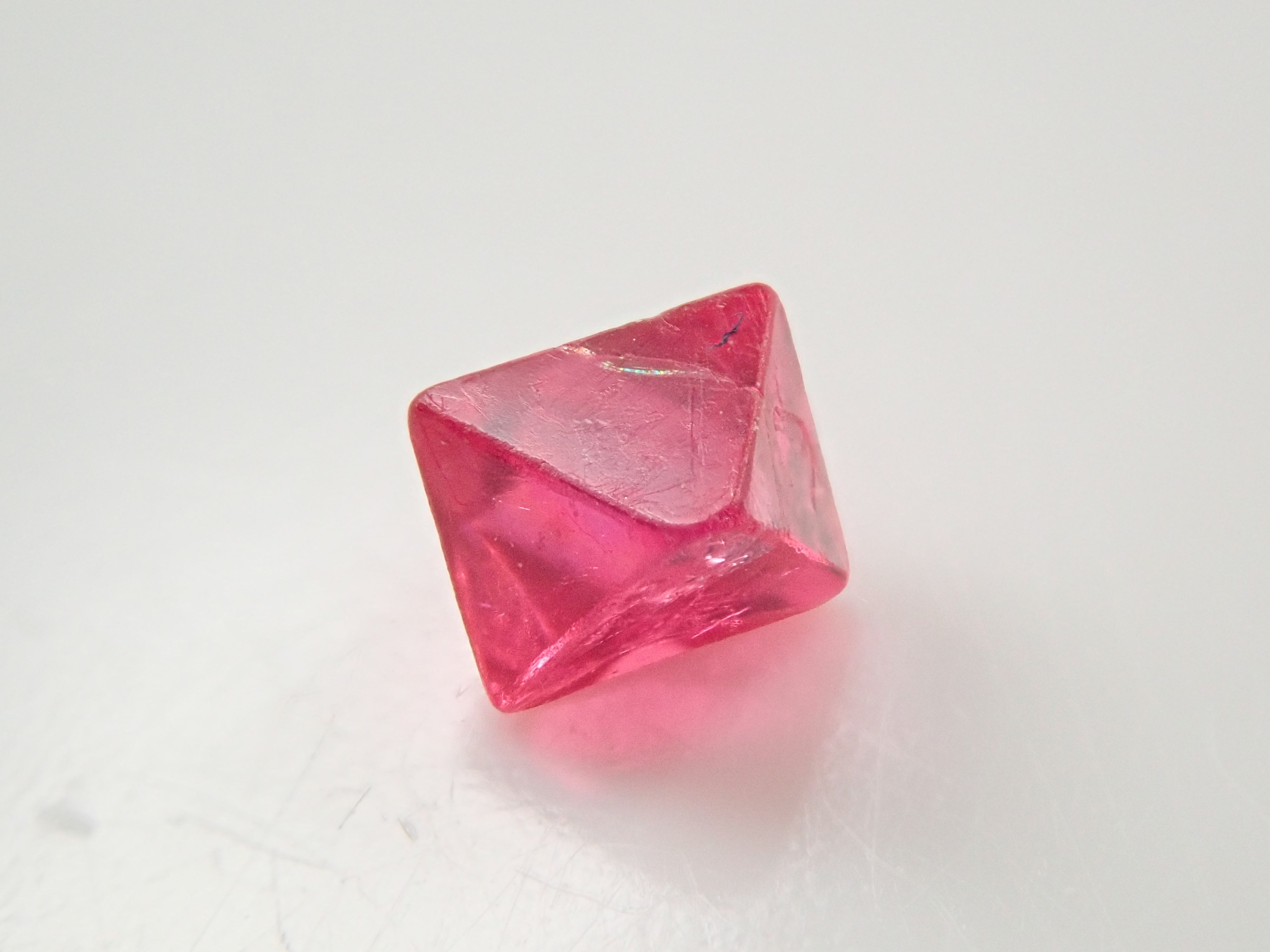 This is a red spinel rough stone from Myanmar with high transparency and a perfect shape. Its color can be described as either hot pink spinel or red spinel.