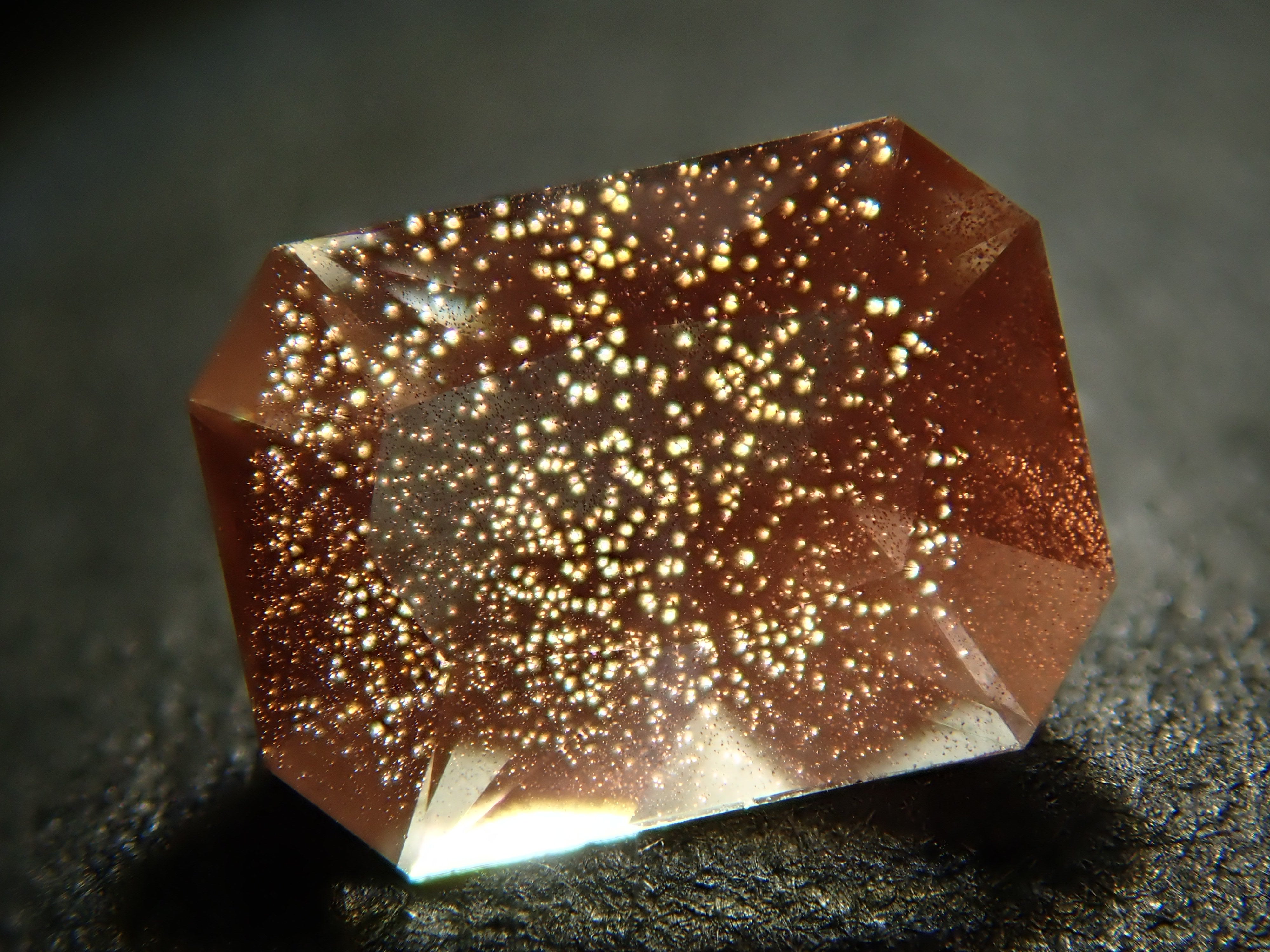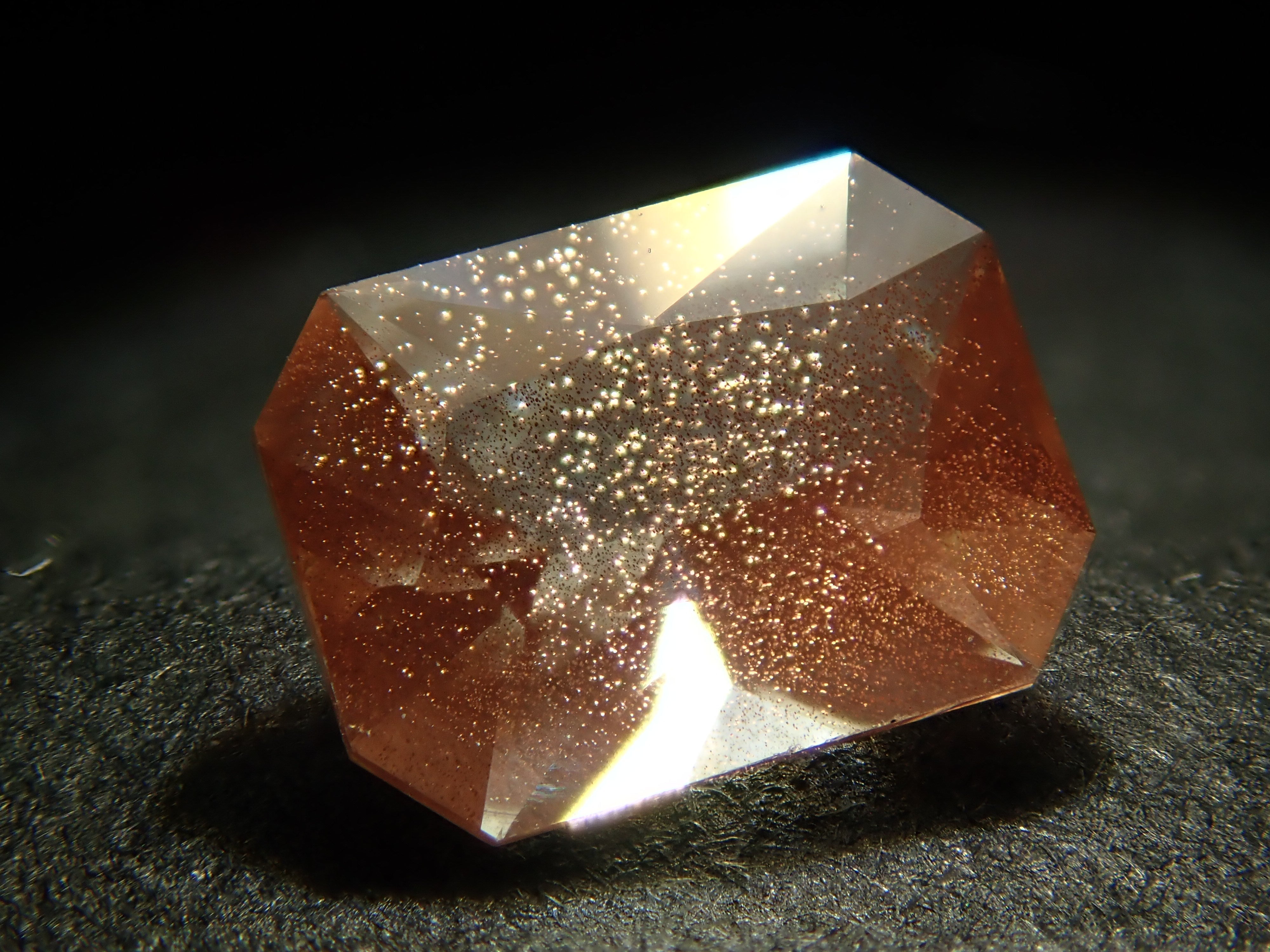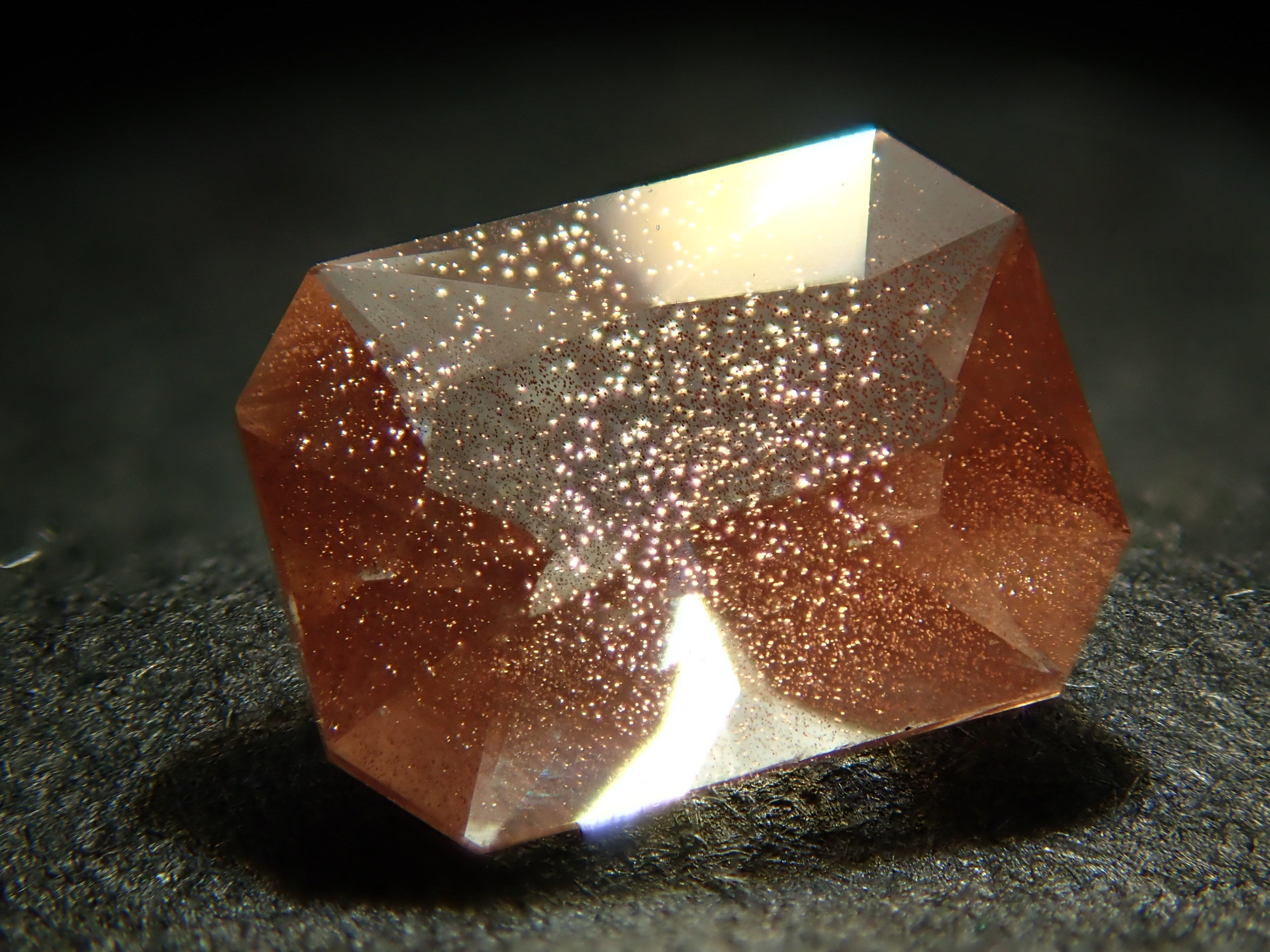 Oregon Sunstone is said to be the most beautiful labradorite in the world. It is a stone that has become increasingly popular in recent years. There are types of stones where the inclusions in the stone reflect like glitter, a phenomenon called aventurescence (Schiller effect). In order to properly convey these optical effects, a penlight is used for photography.