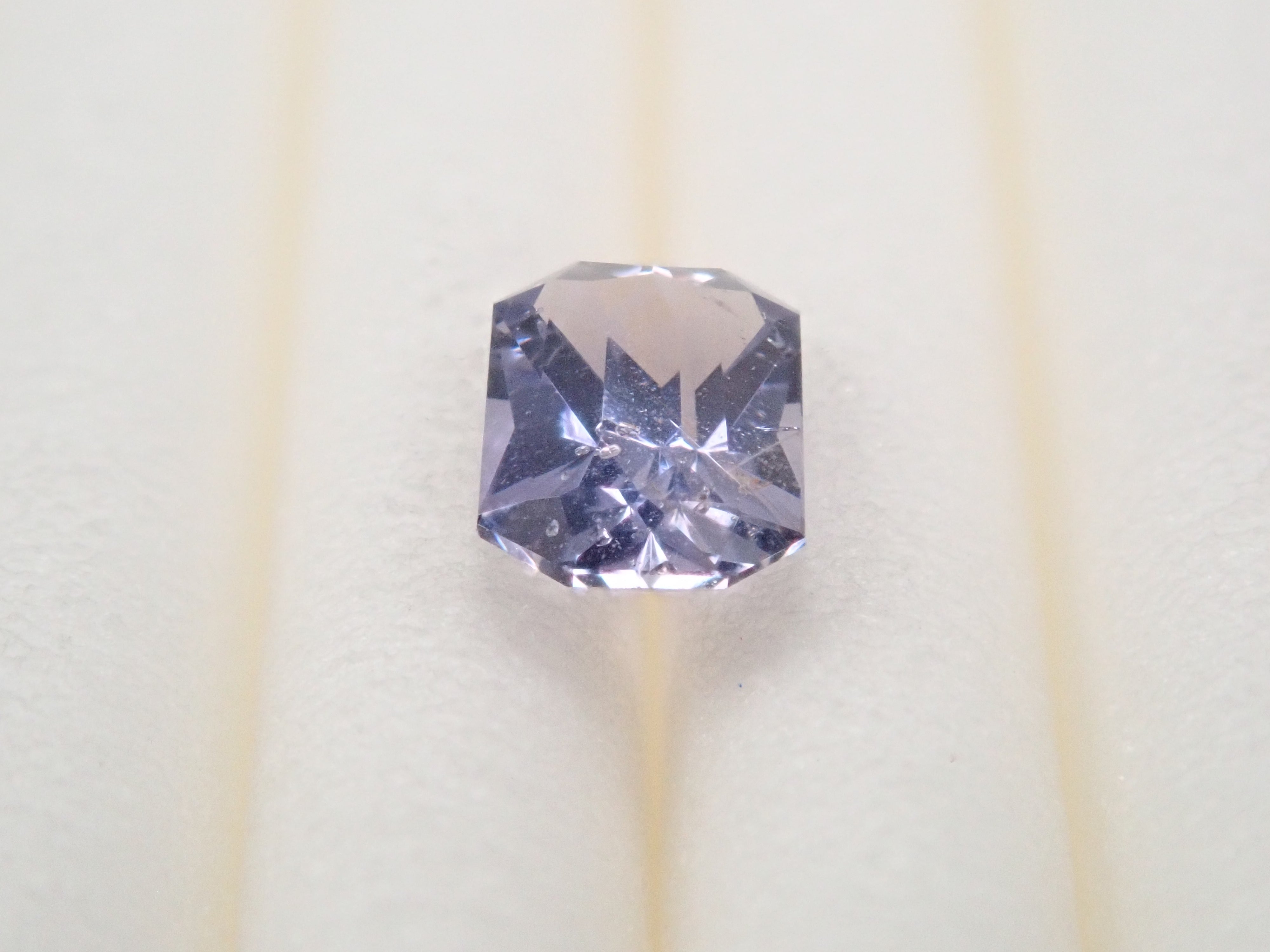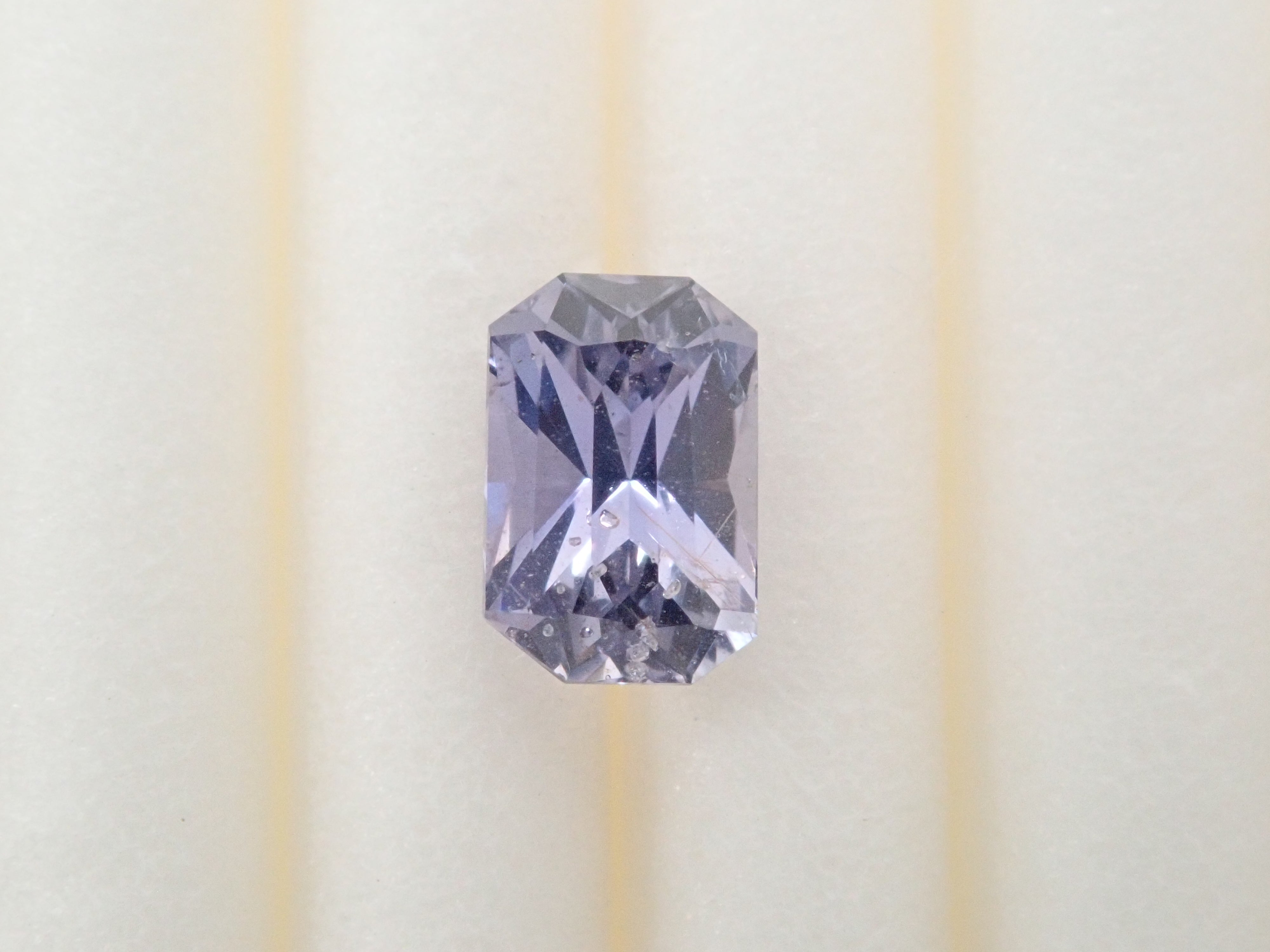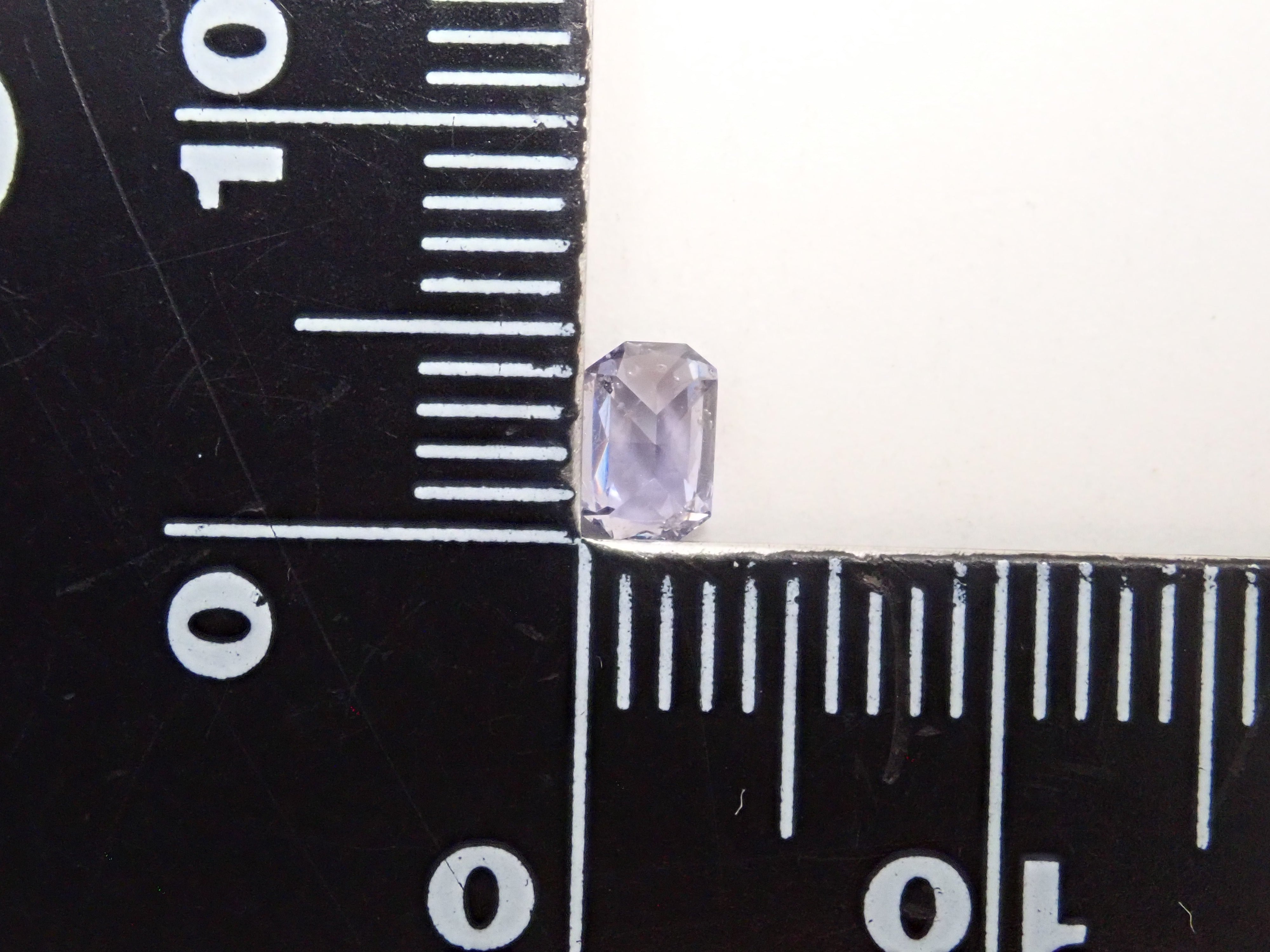 Sapphire is a well-known stone. It is made from the same mineral as ruby, corundum, but all corundum other than red is called sapphire. This is a purple sapphire. Sapphire is the second hardest gemstone after diamond with a hardness of 9, and is tough, stable, and easy to care for. This is a radiant cut purple sapphire with distinctive inclusions. It was polished by Sanjay, a Sri Lankan polisher.