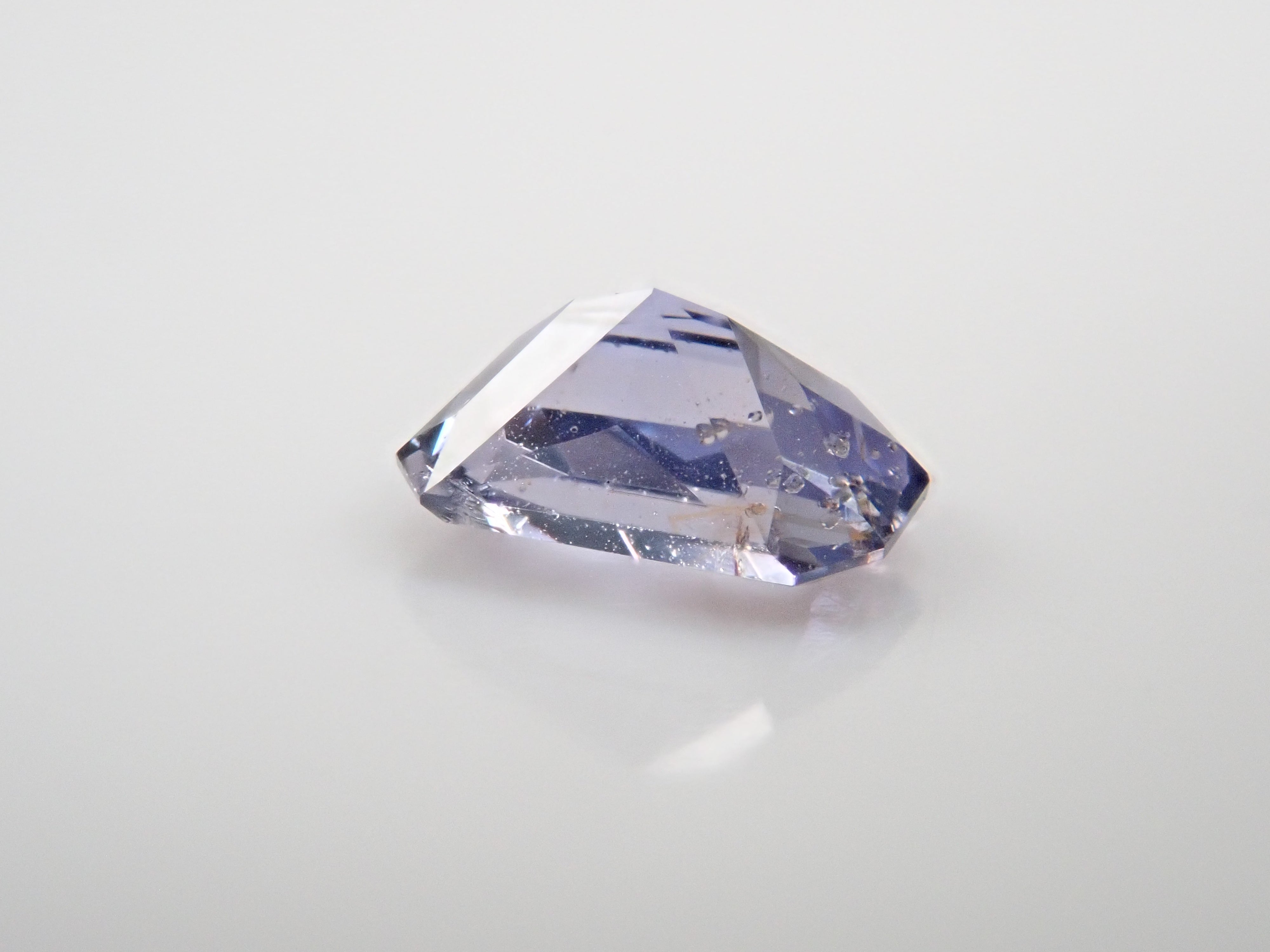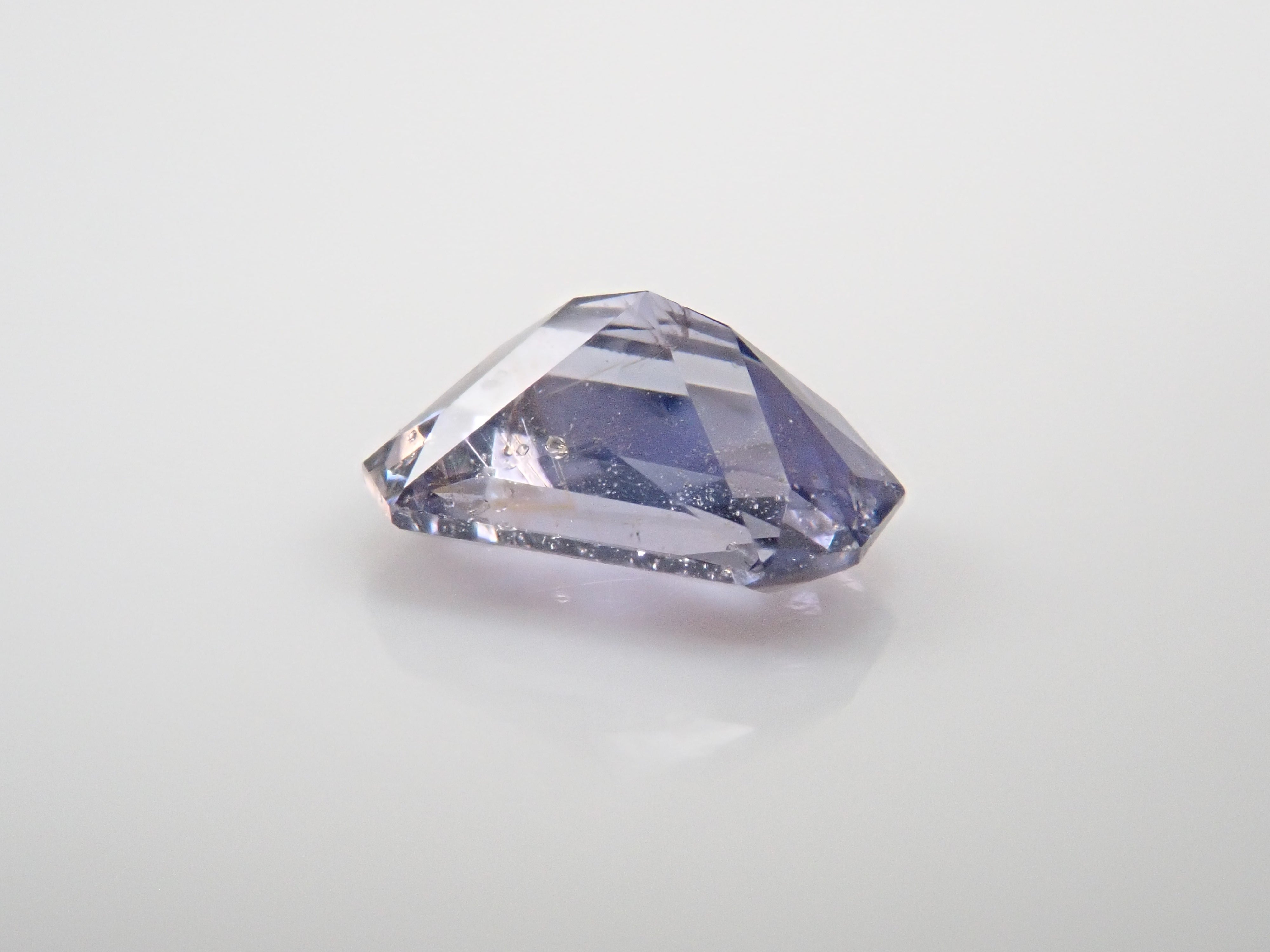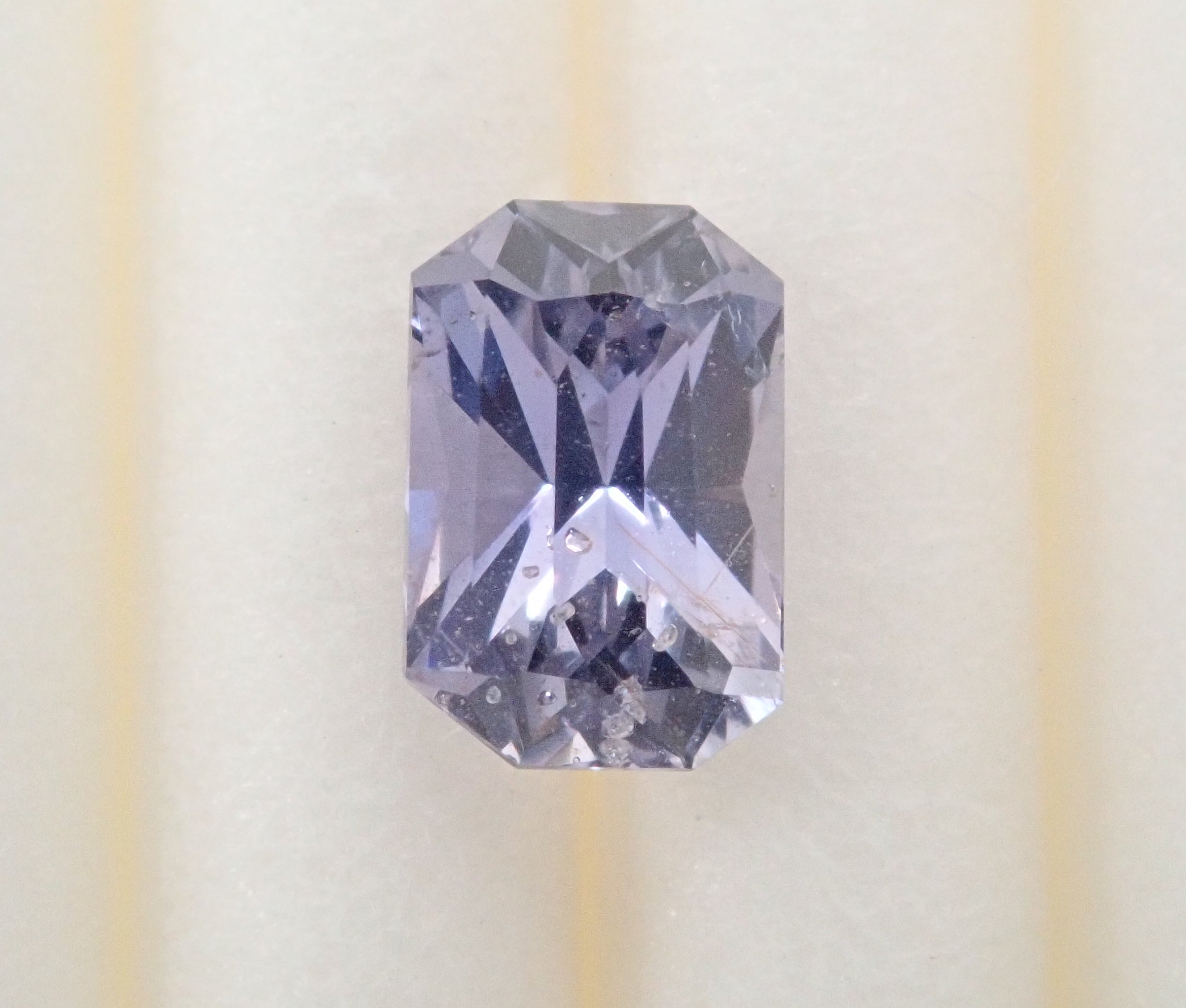 Sapphire is a well-known stone. It is made from the same mineral as ruby, corundum, but all corundum other than red is called sapphire. This is a purple sapphire. Sapphire is the second hardest gemstone after diamond with a hardness of 9, and is tough, stable, and easy to care for. This is a radiant cut purple sapphire with distinctive inclusions. It was polished by Sanjay, a Sri Lankan polisher.