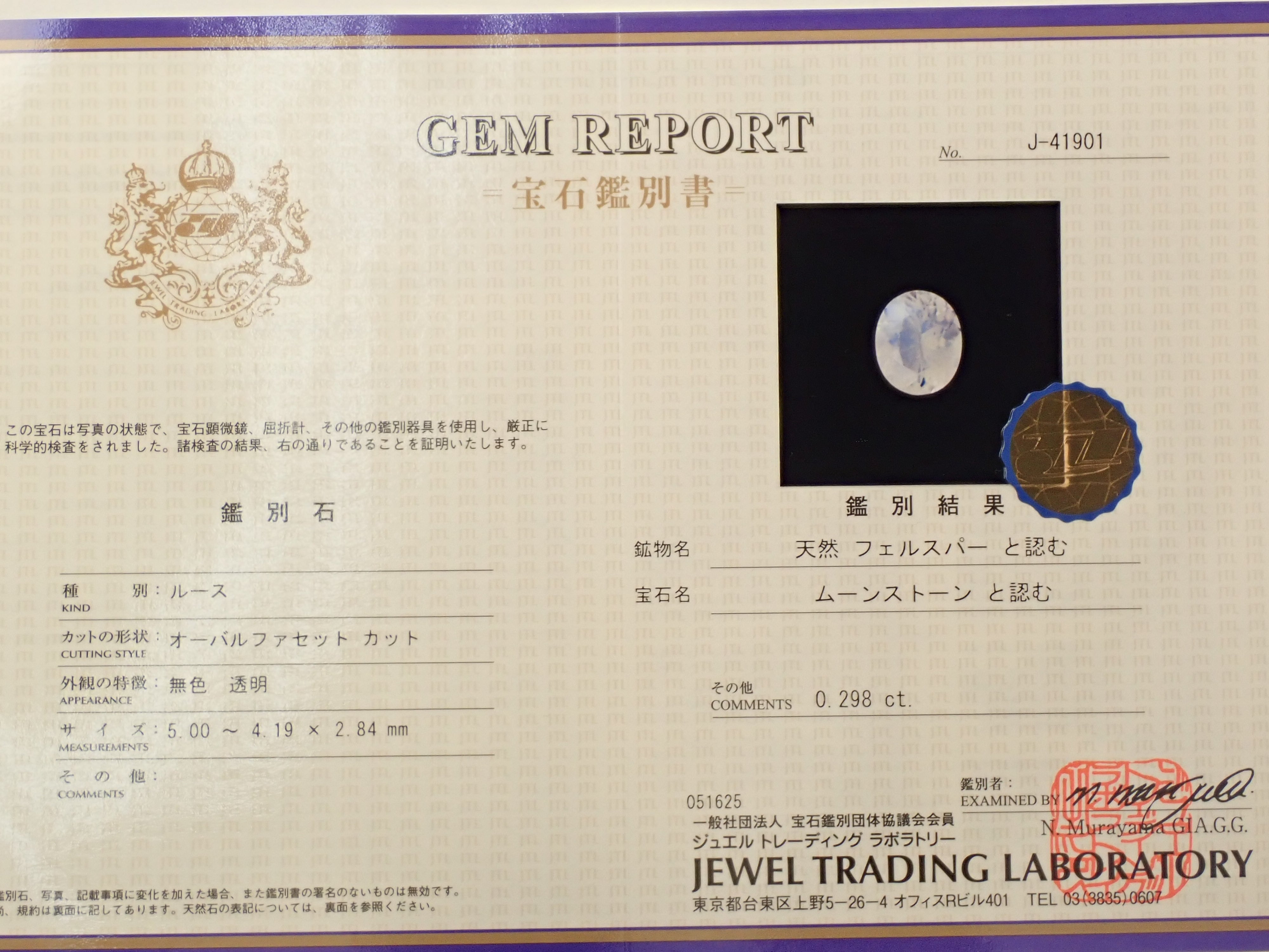 ・Accessories: Certificate of Authenticity (JTL (Jewel Trading Laboratory)), loose stone case (if it does not fit, a clear zippered case will be provided)