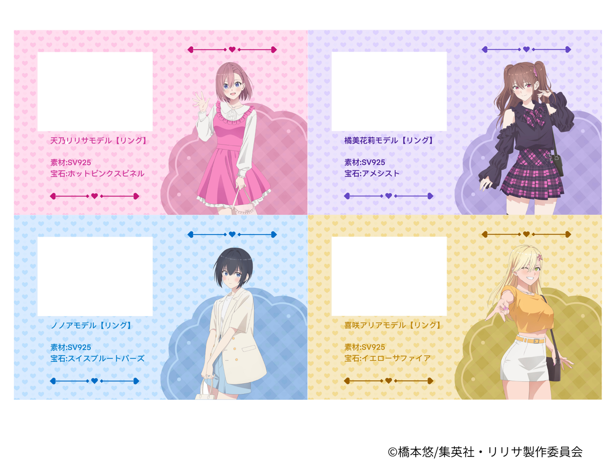 TVアニメ「2.5次元の誘惑」と宝石専門店KARATZがコラボし、キャラクターをイメージした天然石ジュエリーを展開します。