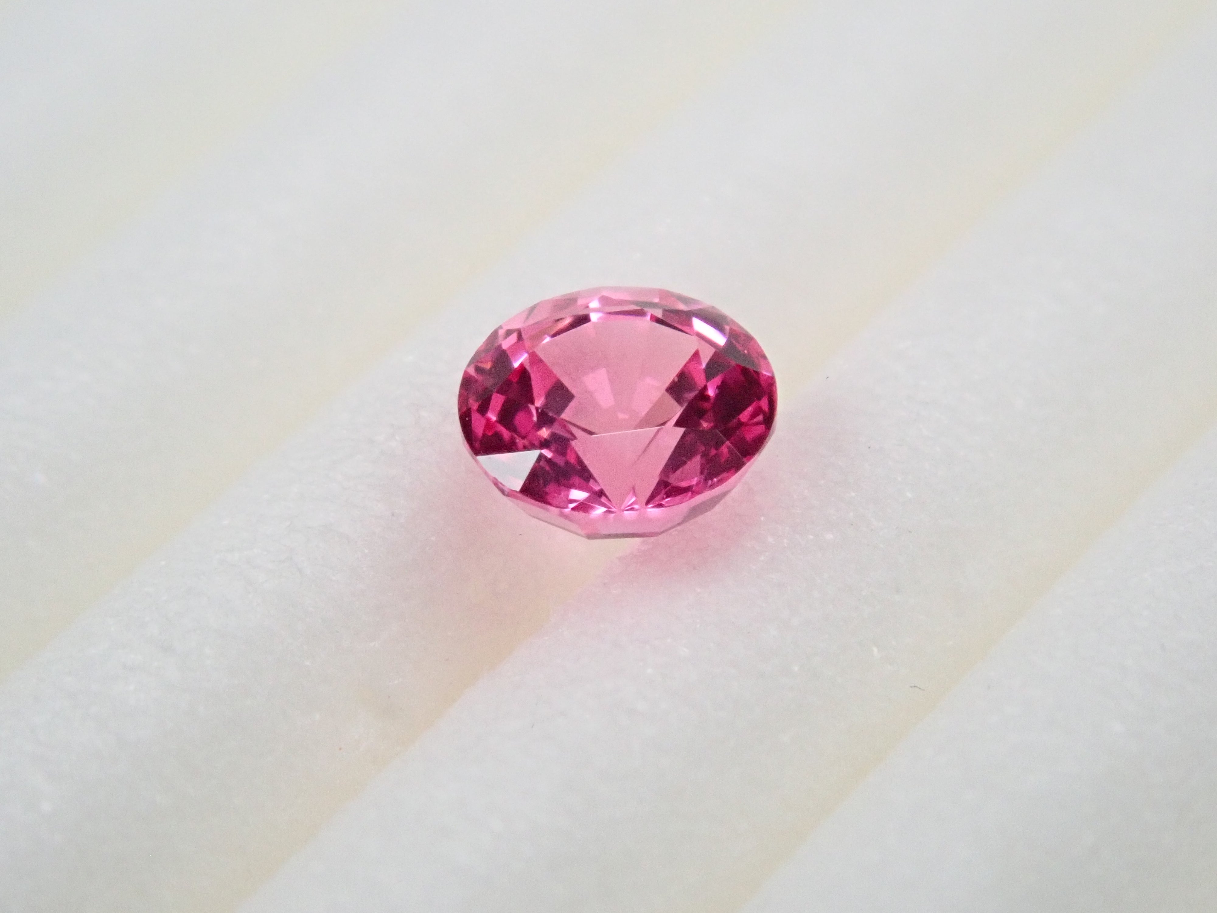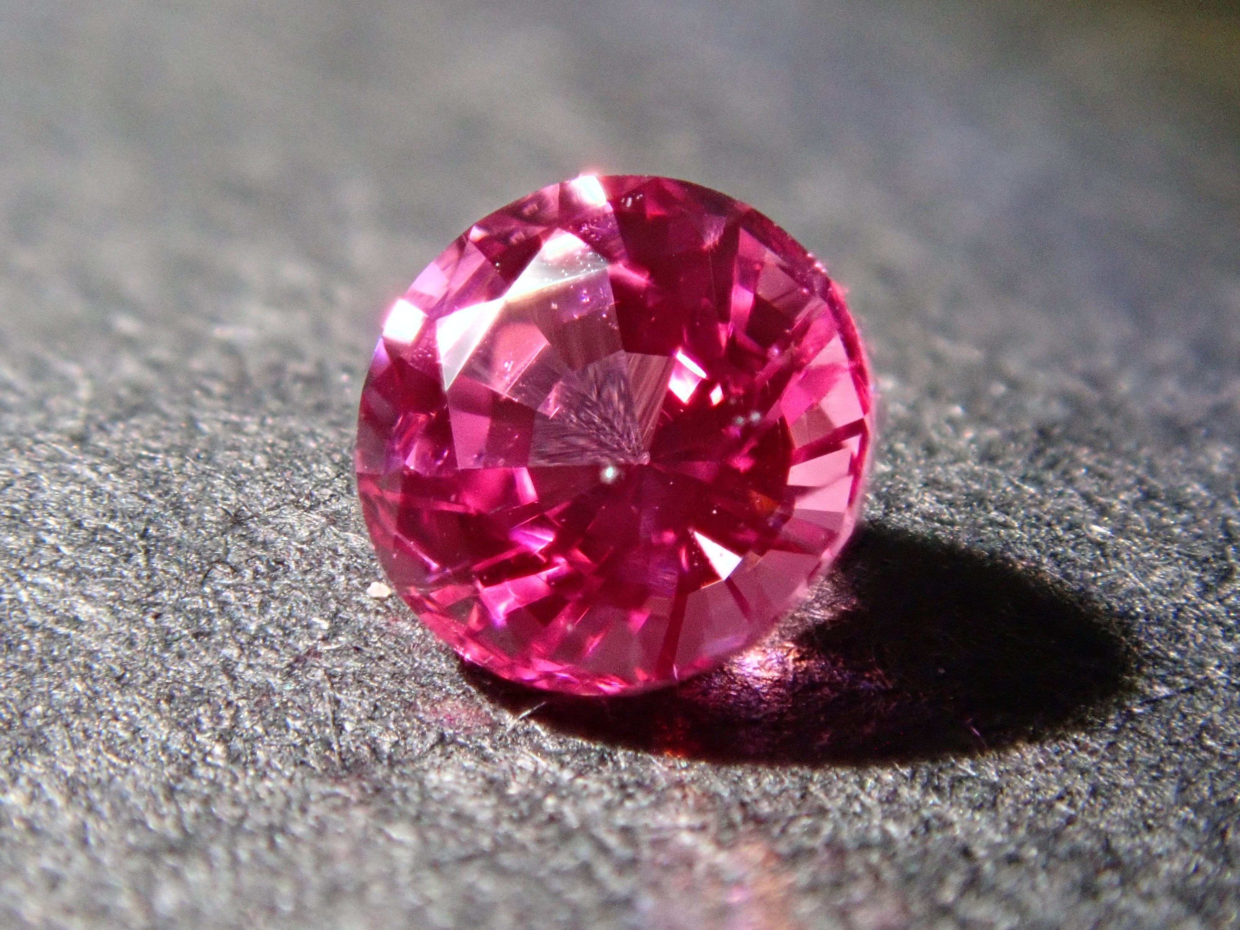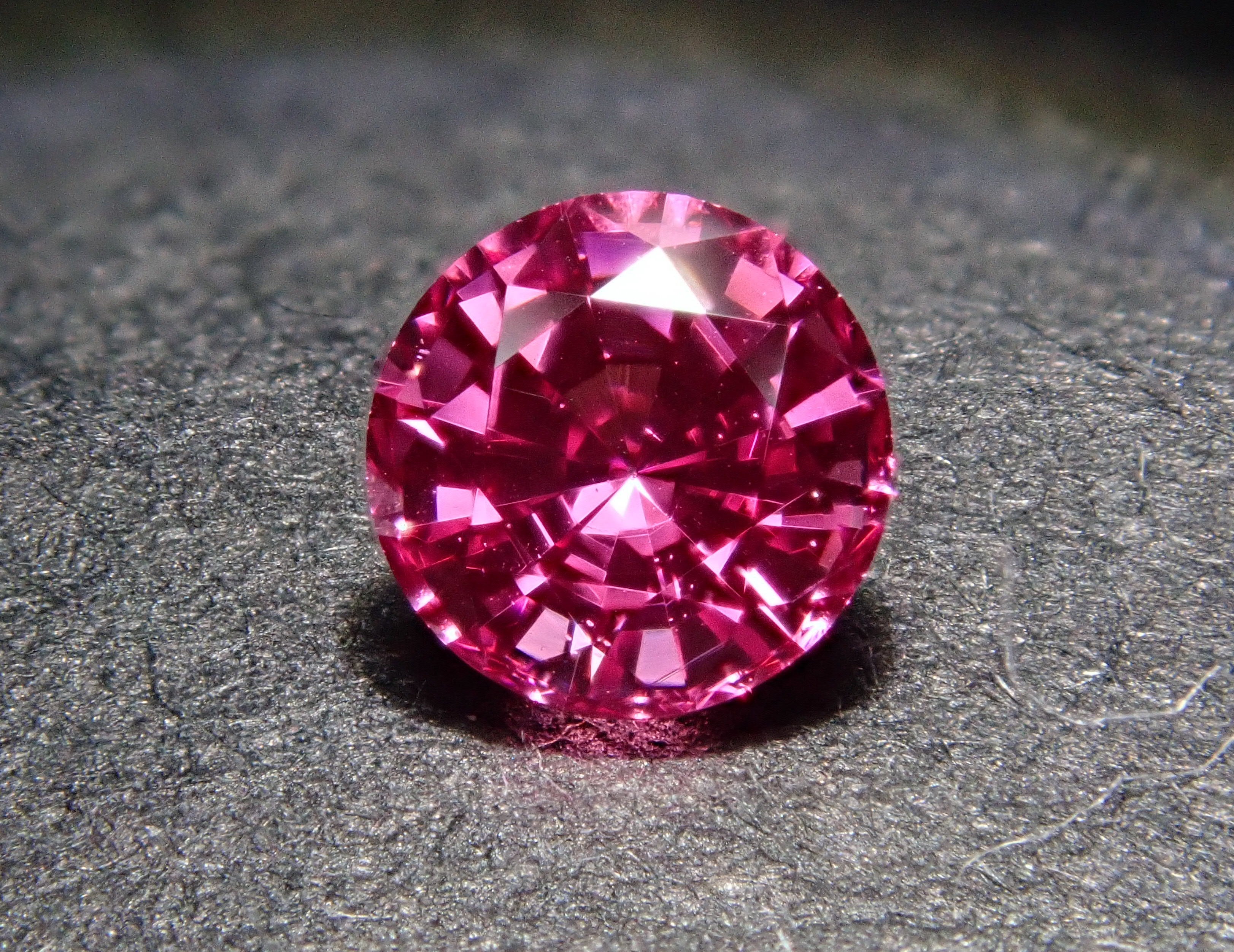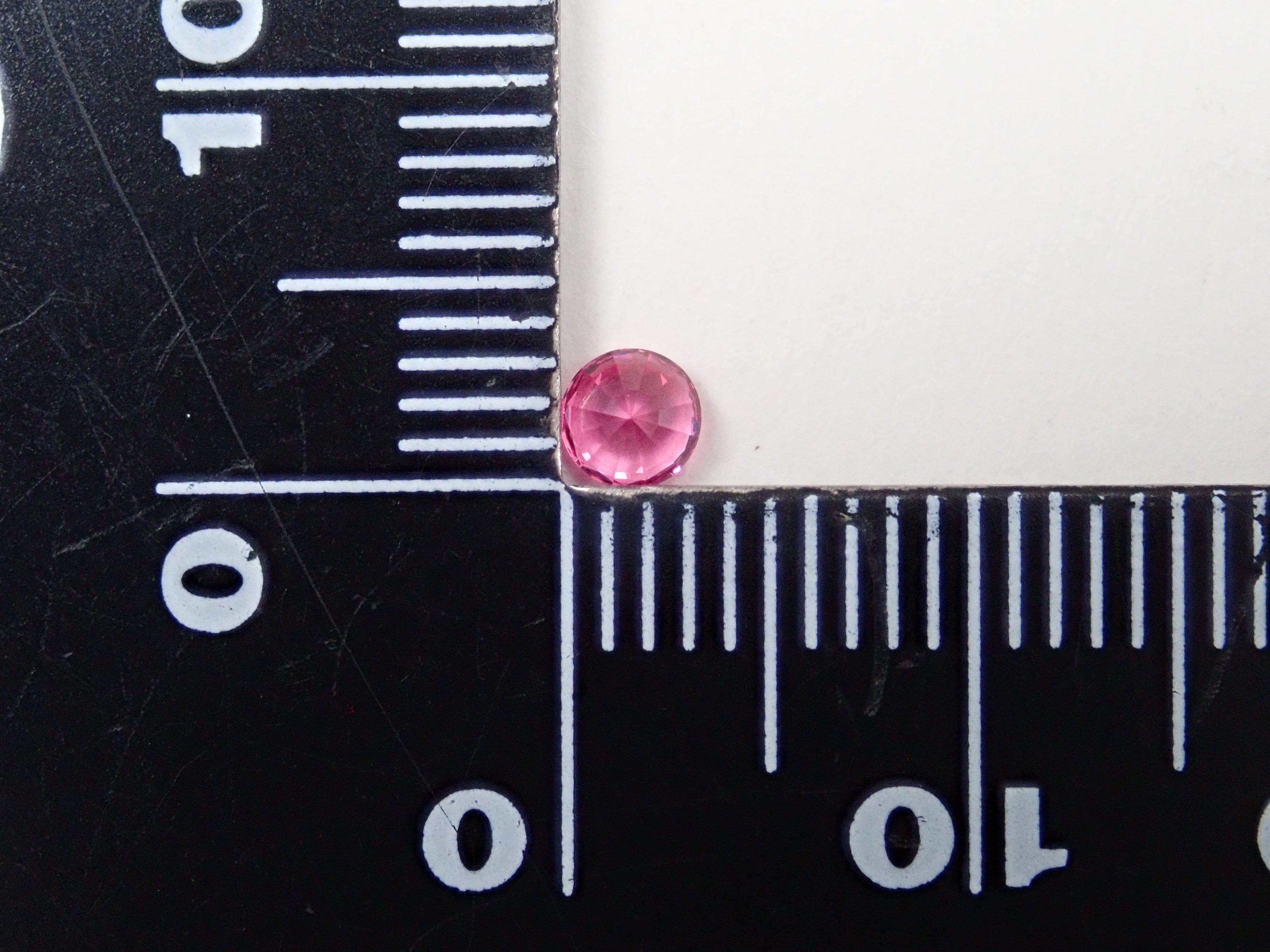 様々な色合いが存在し魅力的なスピネル。赤、オレンジ、青、緑、黒、無色など、黄色(黄緑色)以外のほぼ全ての色がある石として有名です。カラーバリエーションを全色揃えたくなってしまいたくなりますね。こちらは透明感のあるピンク色を発する「ピンクスピネル」です。 ラウンドカット3.6mmです。