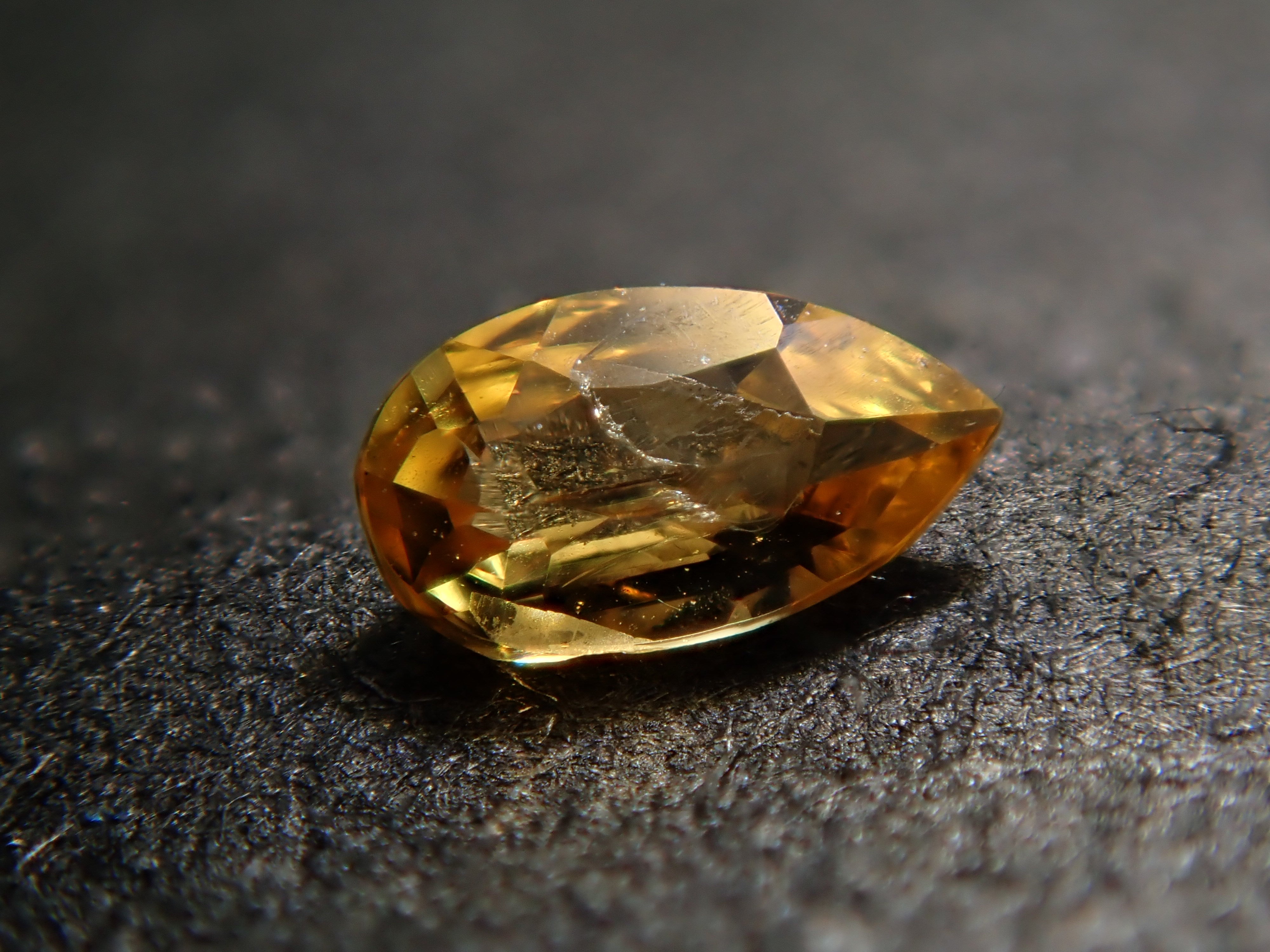 北朝鮮の上八洞で日本人により発見された鉱物、ジョウハチドーライト。現在の主な産地はミャンマーだそう。無色、イエロー、オレンジなどのカラーバリエーションがあります。