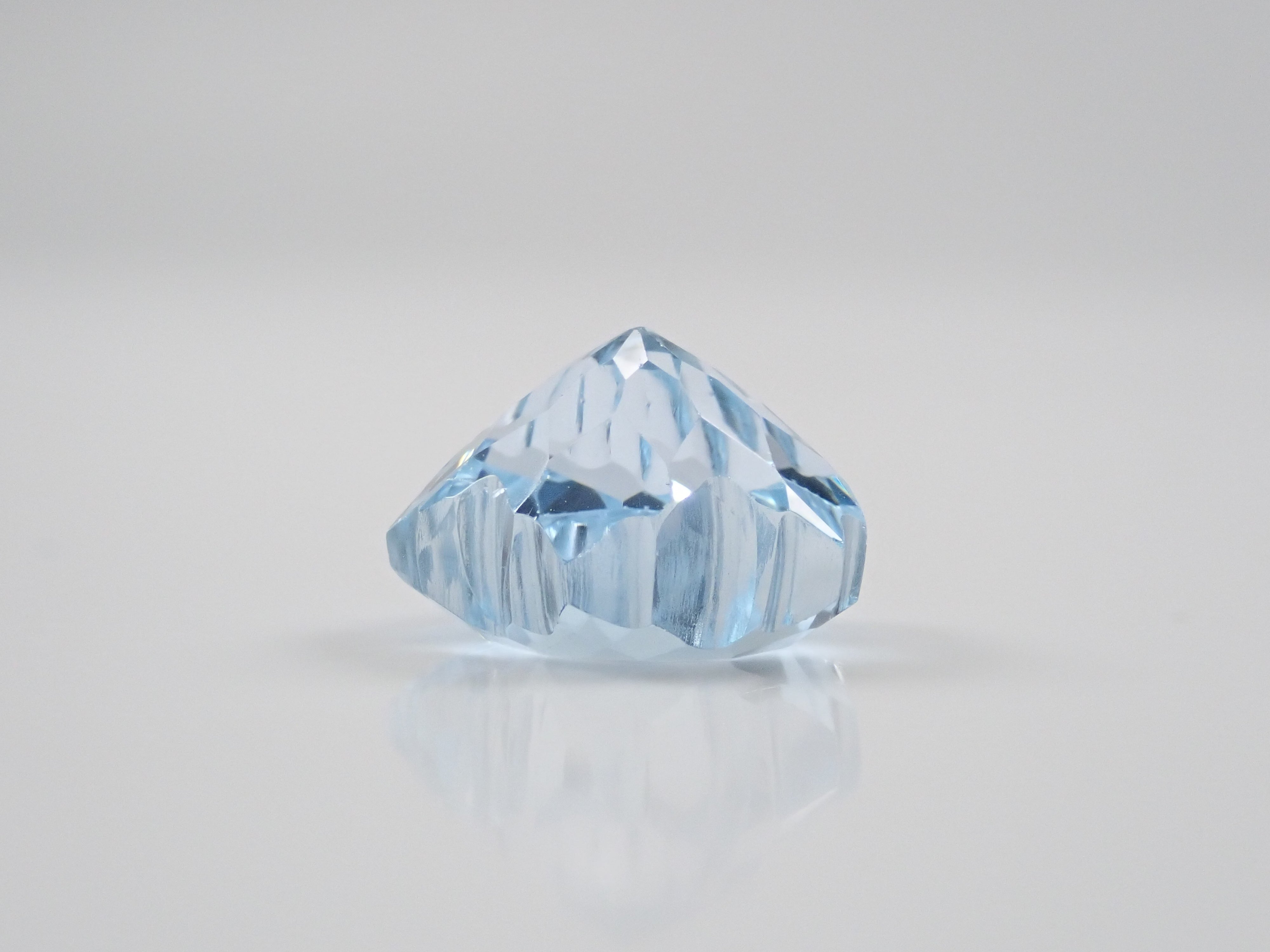 魅力的な青色をしたブルートパーズは、カラーバリエーション豊かなトパーズの中でも人気の高い色の一つです。中でも「スカイブルートパーズ」と言えばこのルースのように薄く明るいブルーの石。胸がすくような気持ちの良い色合いです。