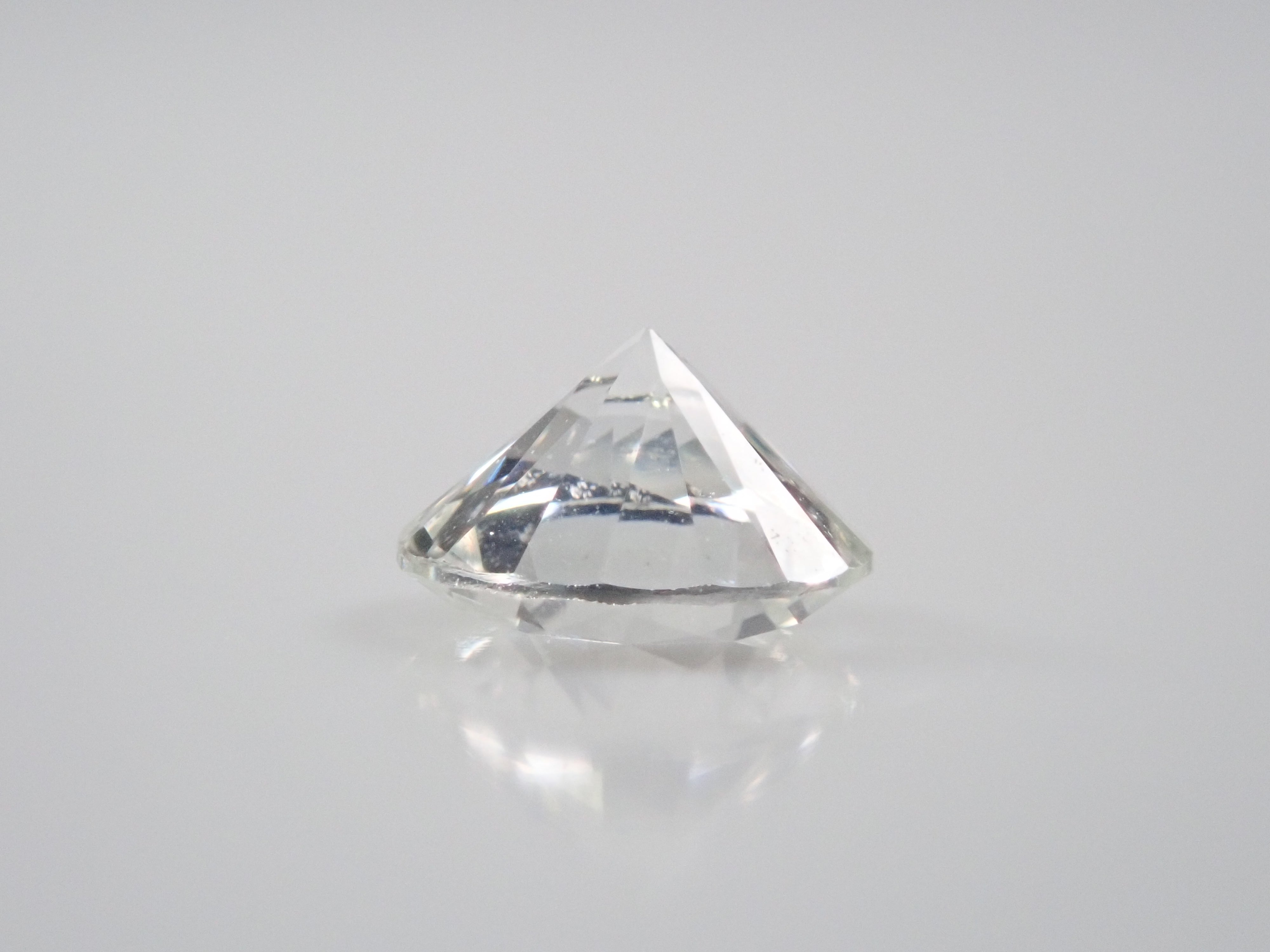 言わずとしれた有名石、サファイア。カラーレスのものは「ホワイトサファイア」と呼ばれます。硬度9とダイヤモンドに次いで硬い宝石であるサファイア。硬度・靭性・安定性がどれも高く、扱いやすい宝石です。 ラウンドカットのホワイトサファイアです。