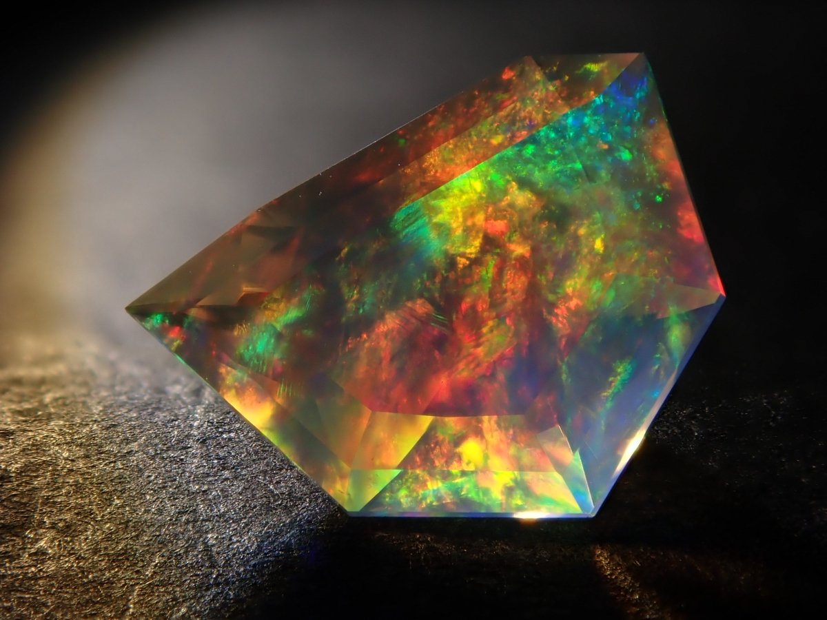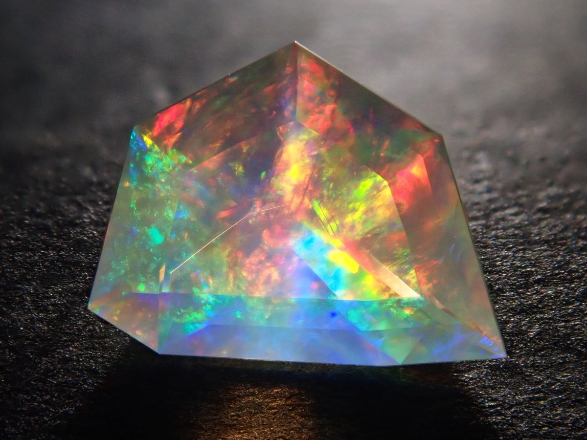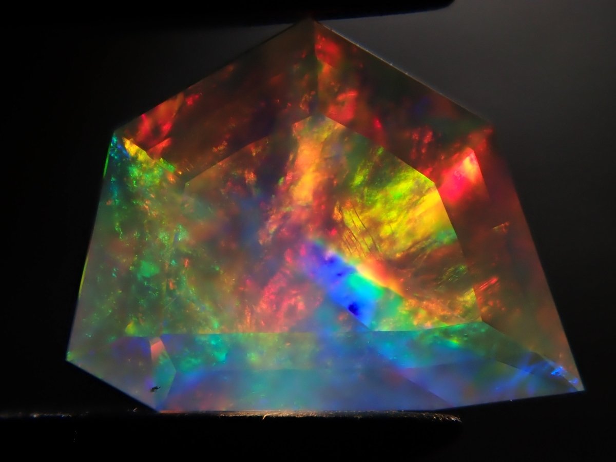虹色の光のゆらめきが特徴の宝石、オパール。オパールは種類が多彩で様々な表情を見せる宝石。この魅力に取り憑かれオパールだけをコレクションする人もいるほど。撮影はペンライトを用いて行っています。