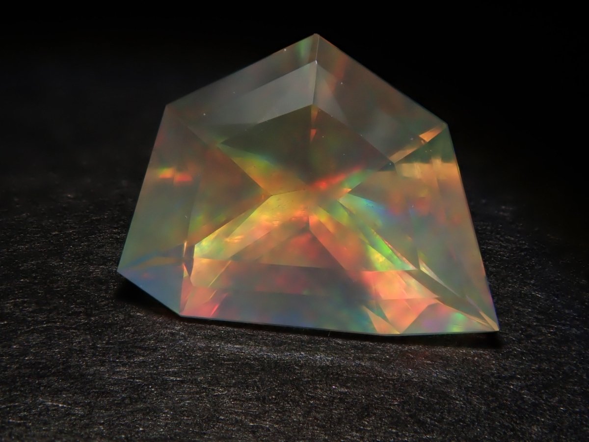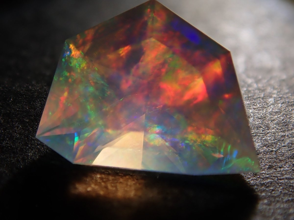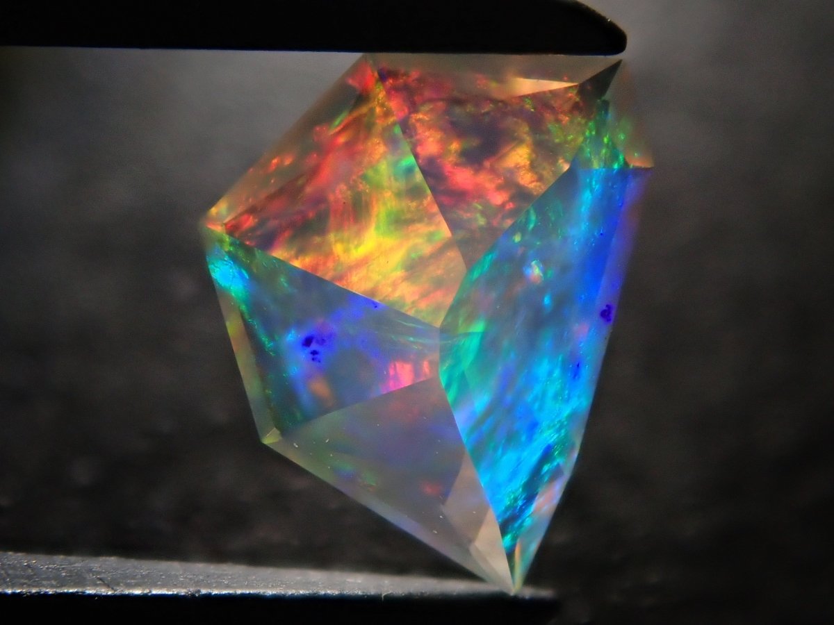 虹色の光のゆらめきが特徴の宝石、オパール。オパールは種類が多彩で様々な表情を見せる宝石。この魅力に取り憑かれオパールだけをコレクションする人もいるほど。撮影はペンライトを用いて行っています。
