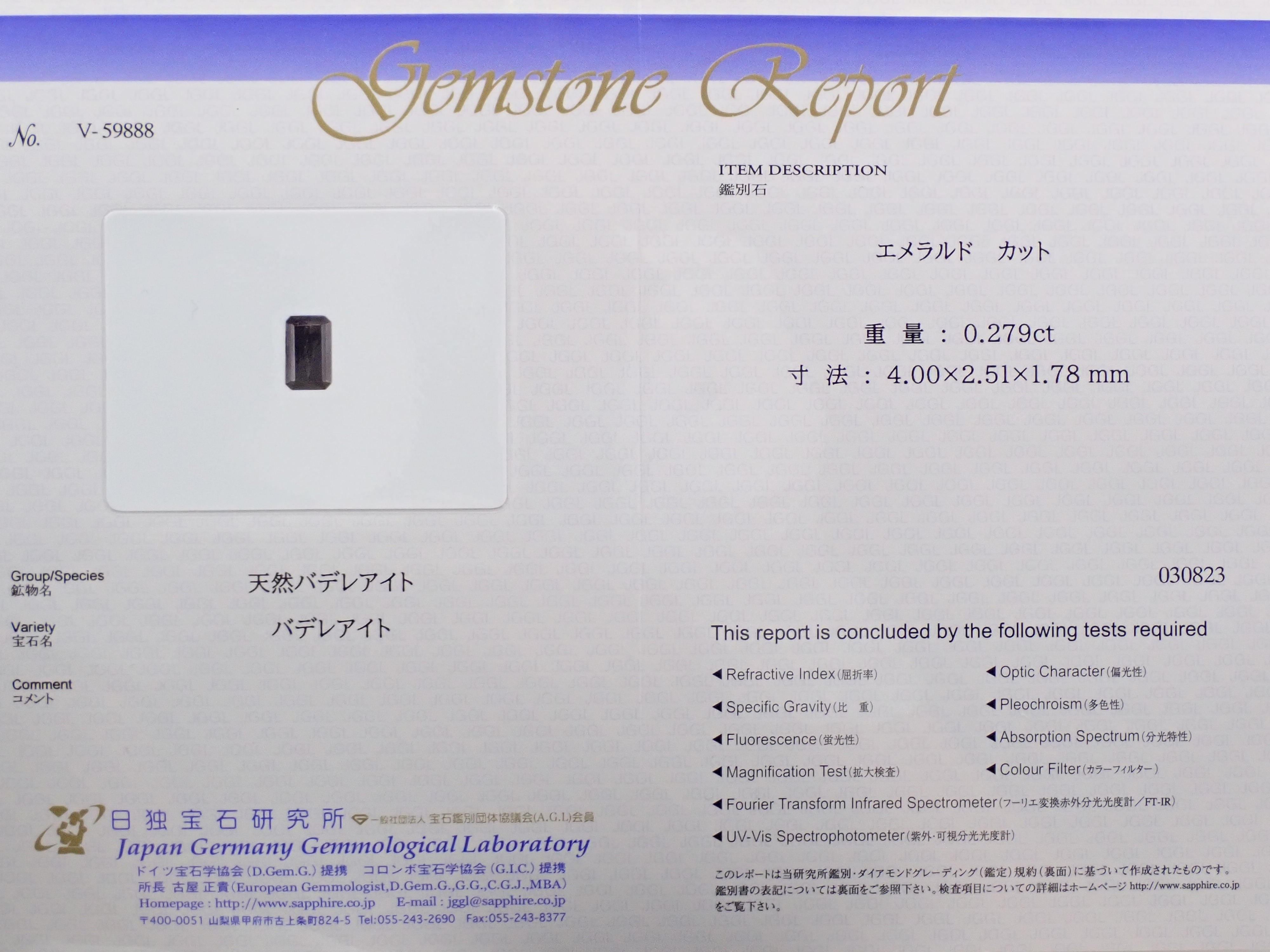 【11/21 22時販売】ミャンマー産バデレアイト 0.279ctルース 日独鑑
