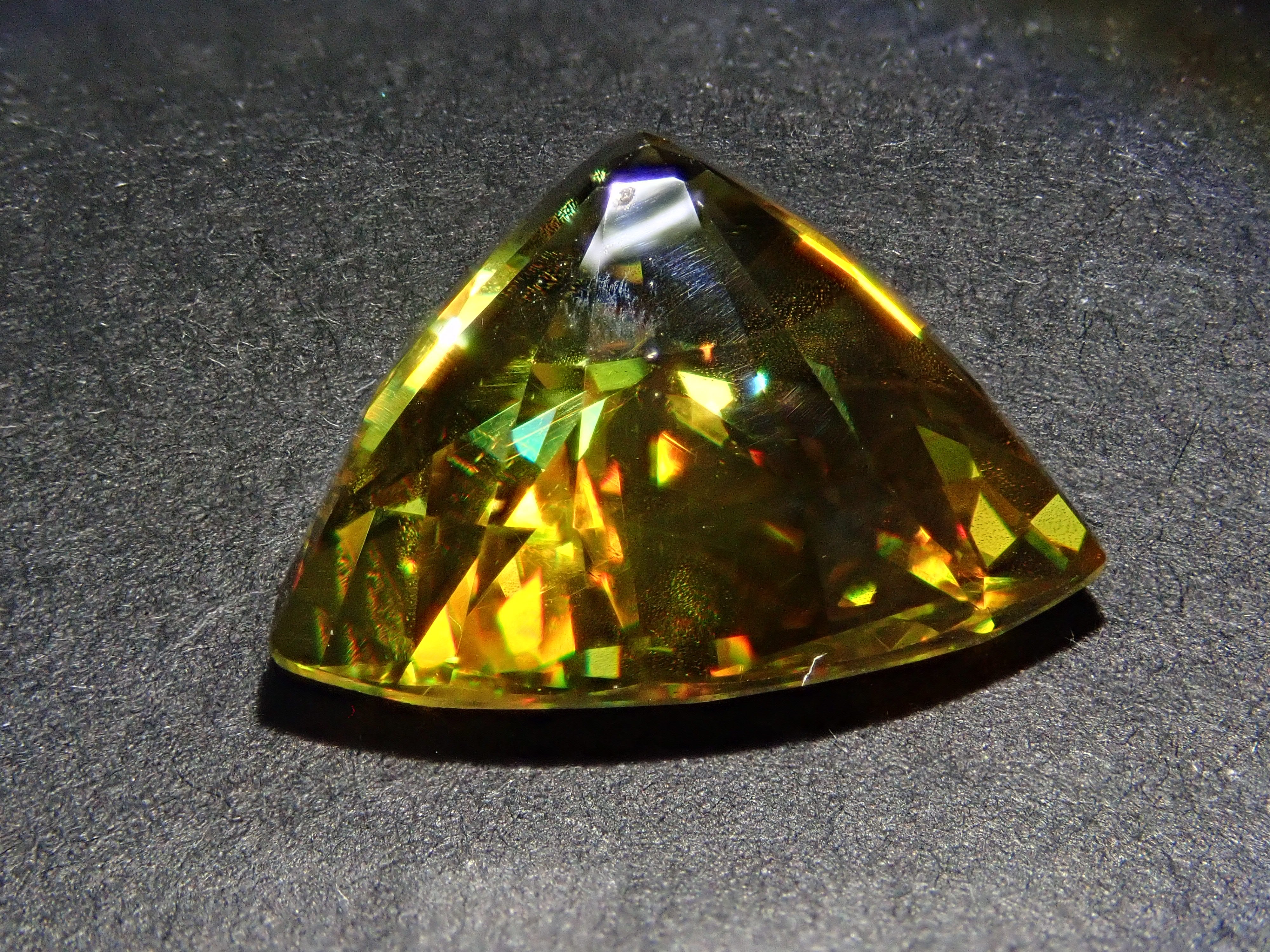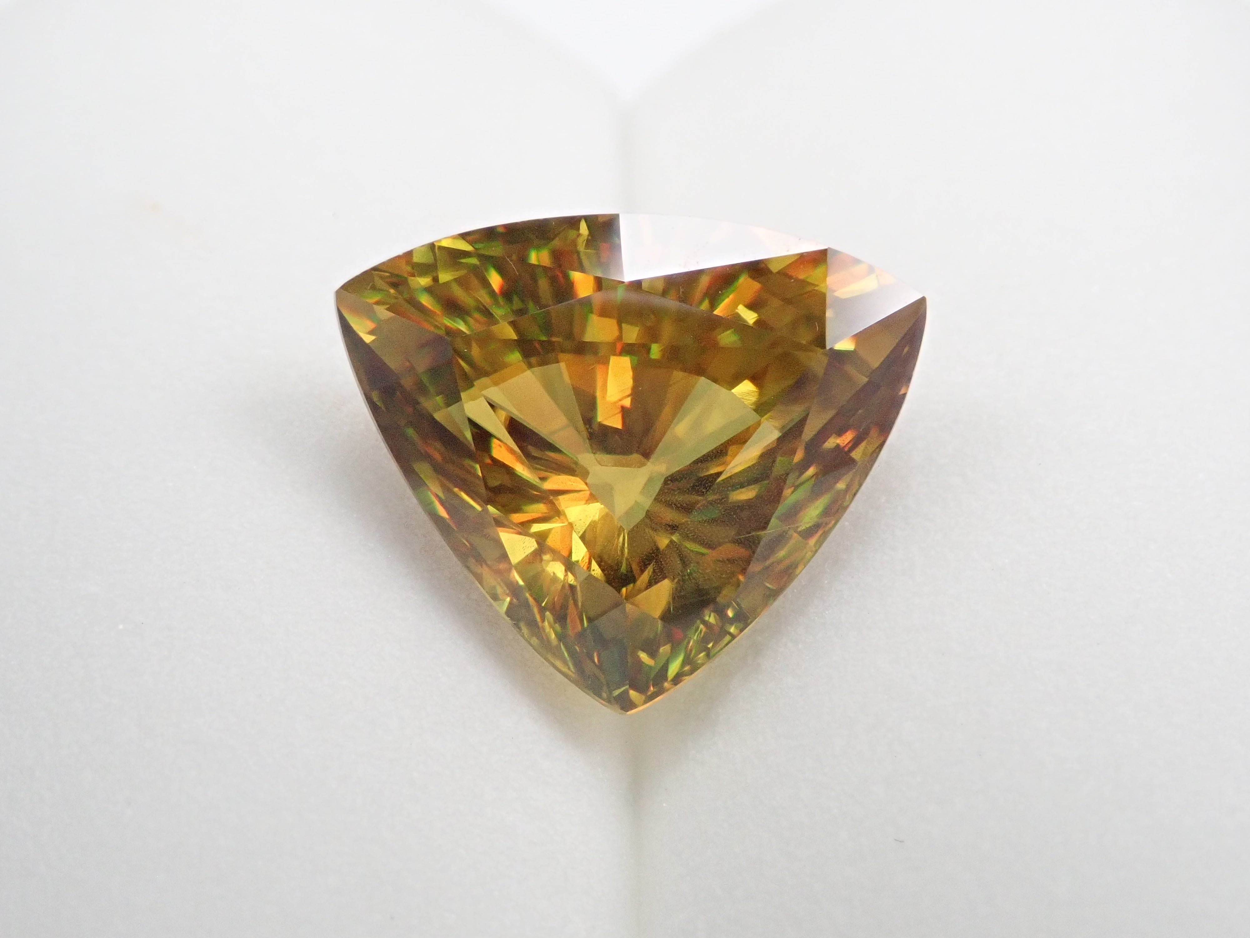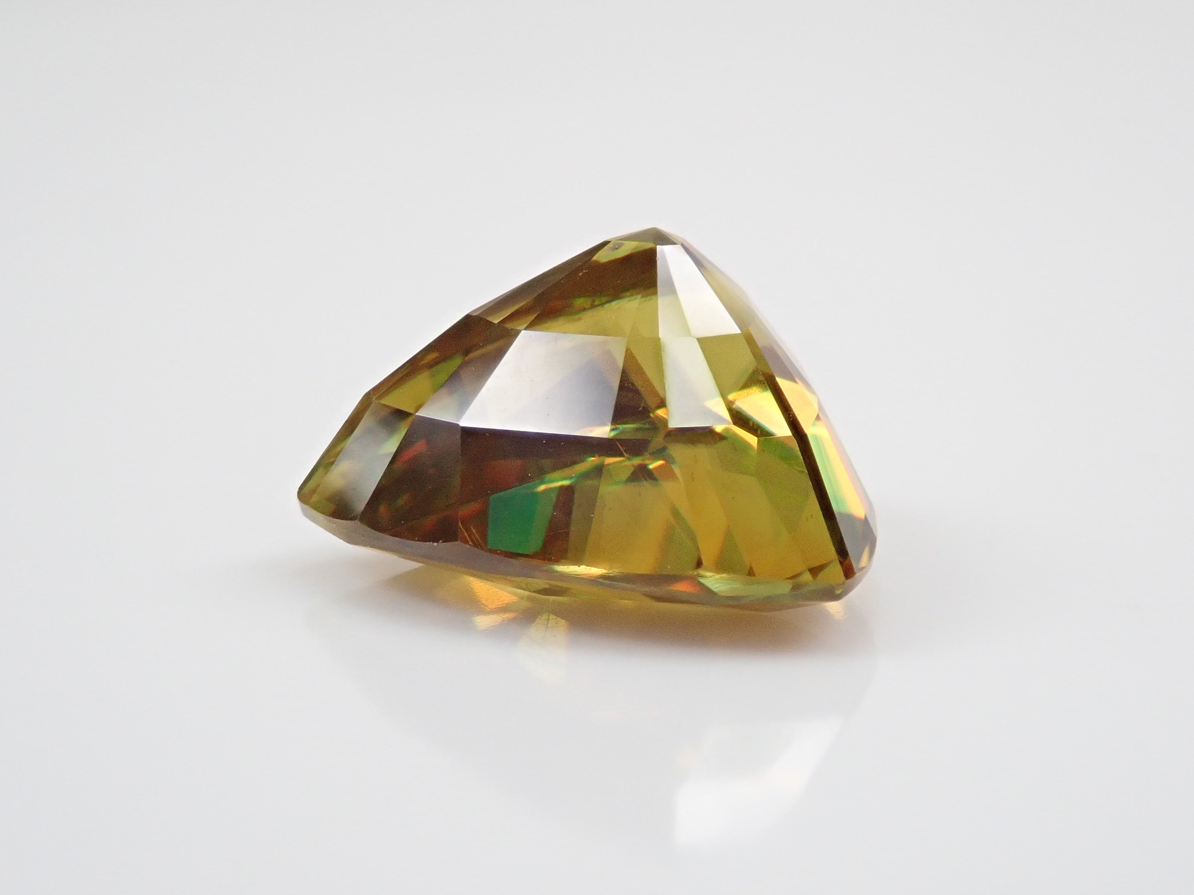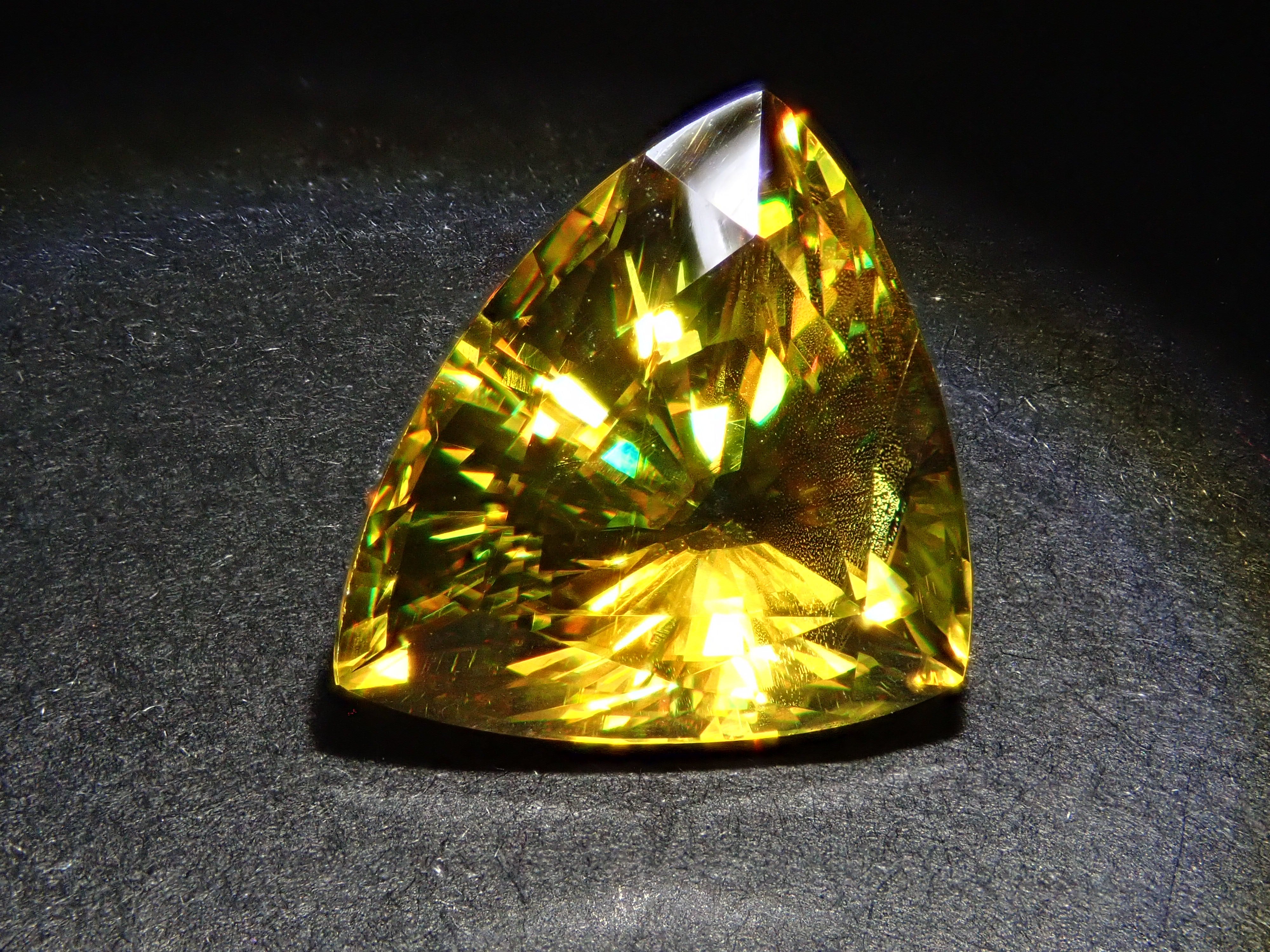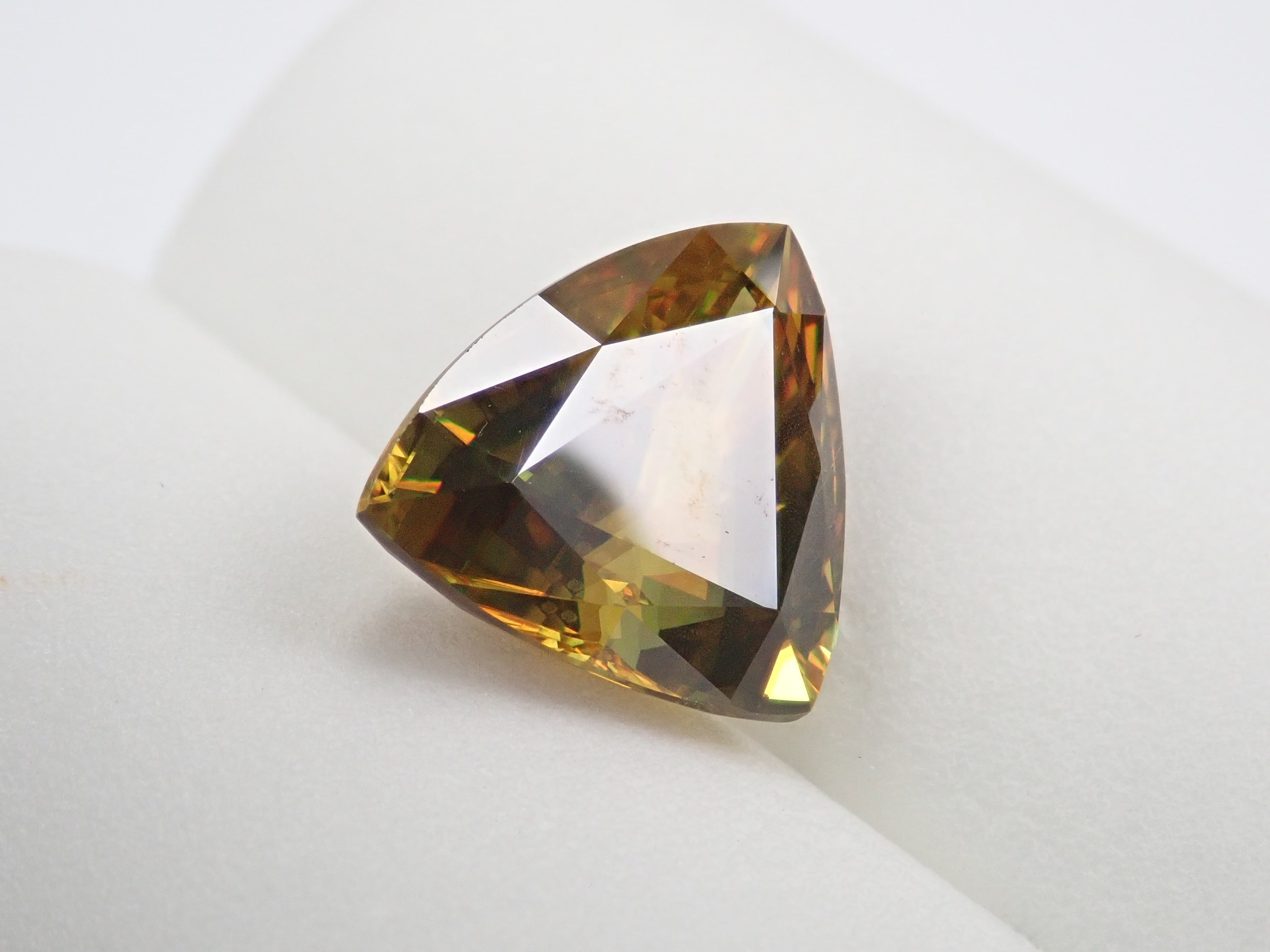 黄金色の輝きと豪華なファイアを見せるスフェーン。ダイヤモンドよりも強力なファイアを放つ魅力的な宝石として、コレクターからの人気が高まっています。角度によって目まぐるしく輝きの表情が変わるスフェーン。カラーチェンジは赤系のカラーチェンジ用ペンライトを使ってお楽しみください。透明度も高く、ファイアも楽しめる品質の高いパキスタン産カラーチェンジスフェーンです。