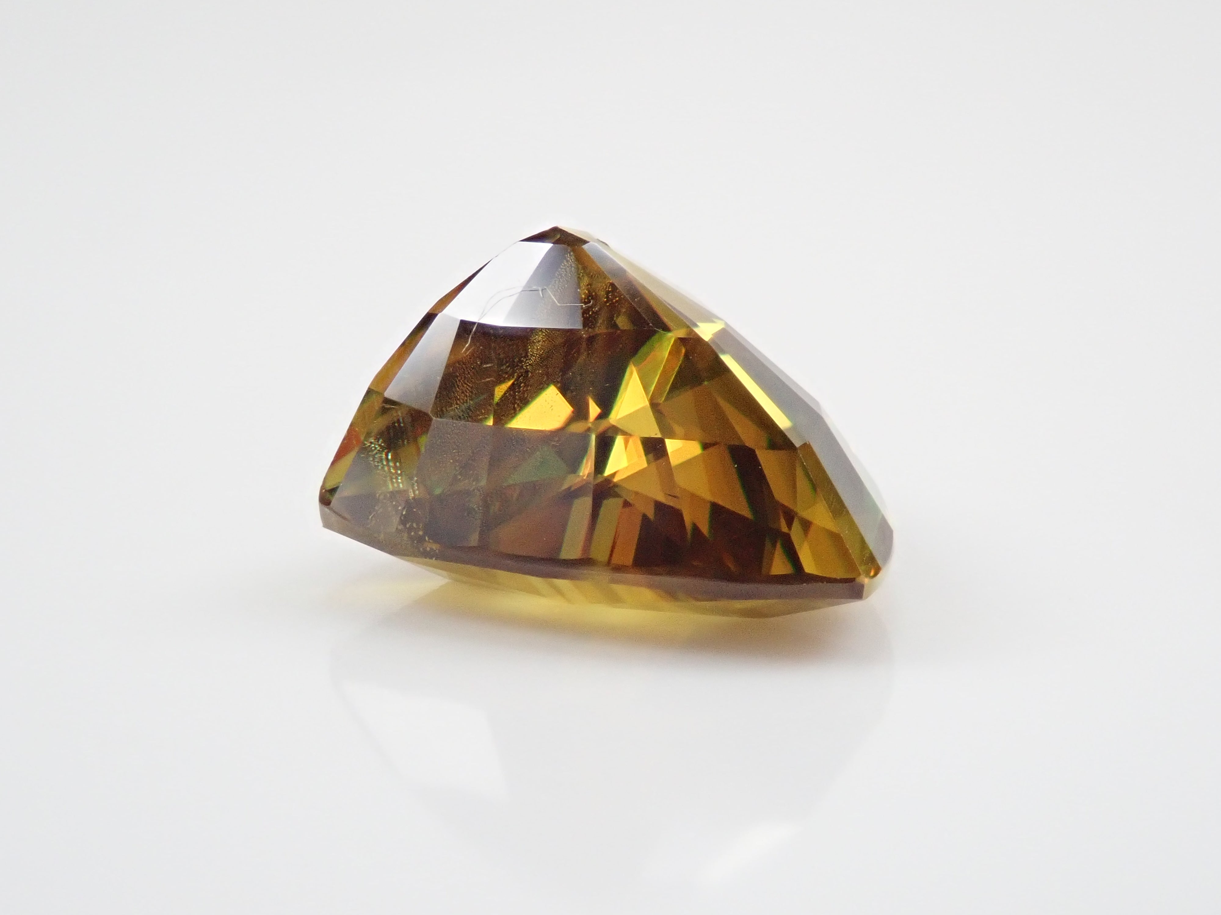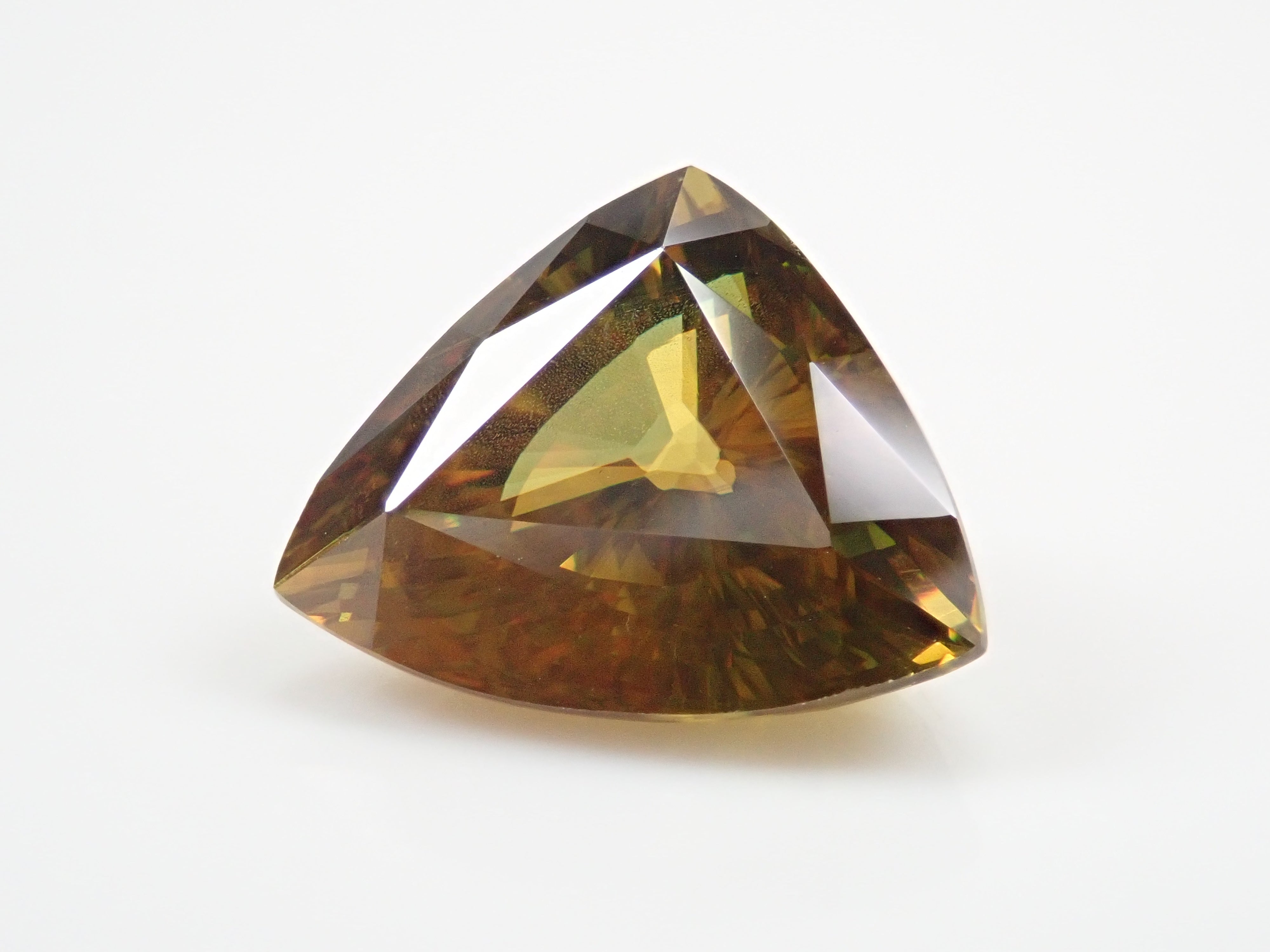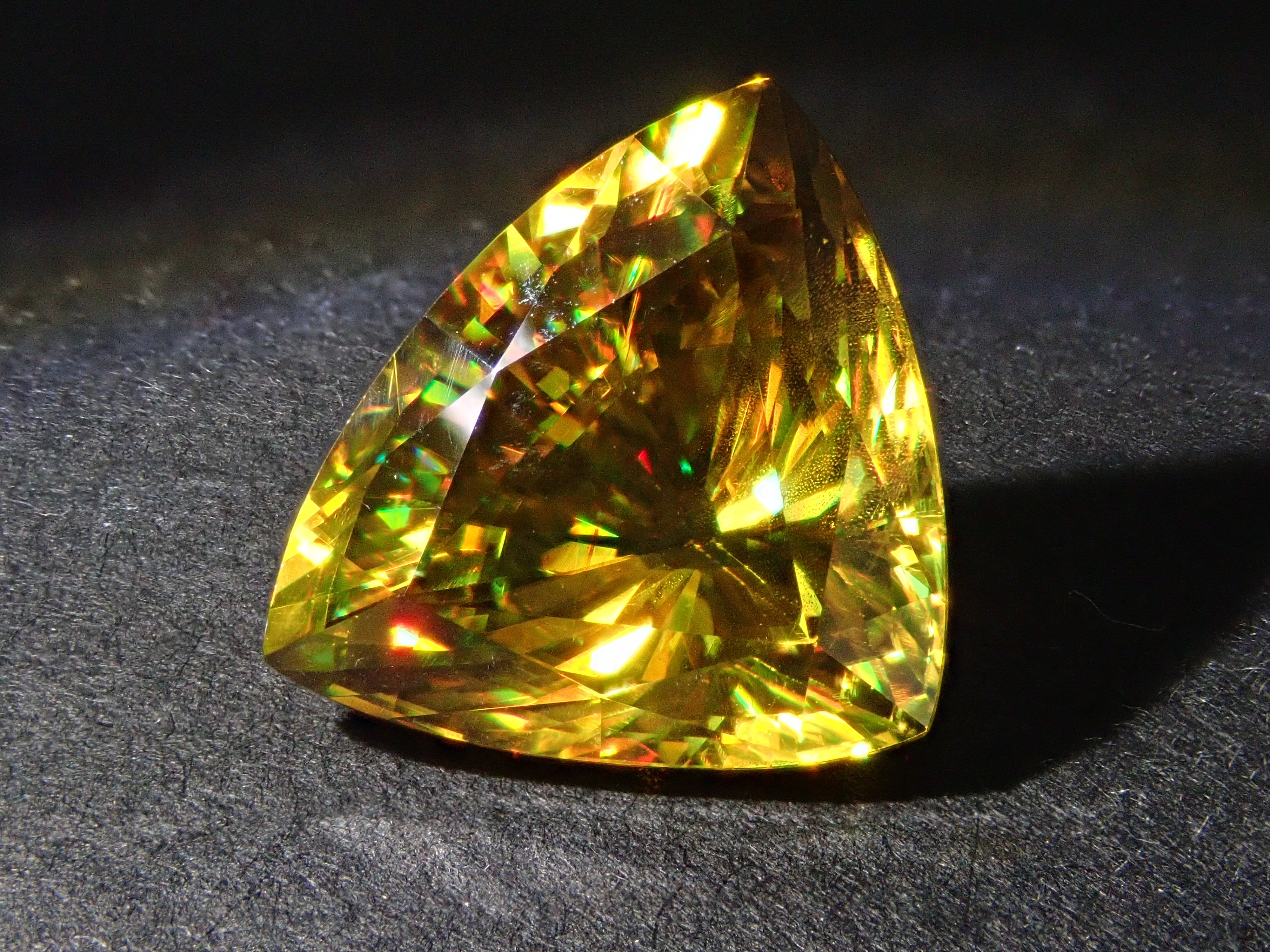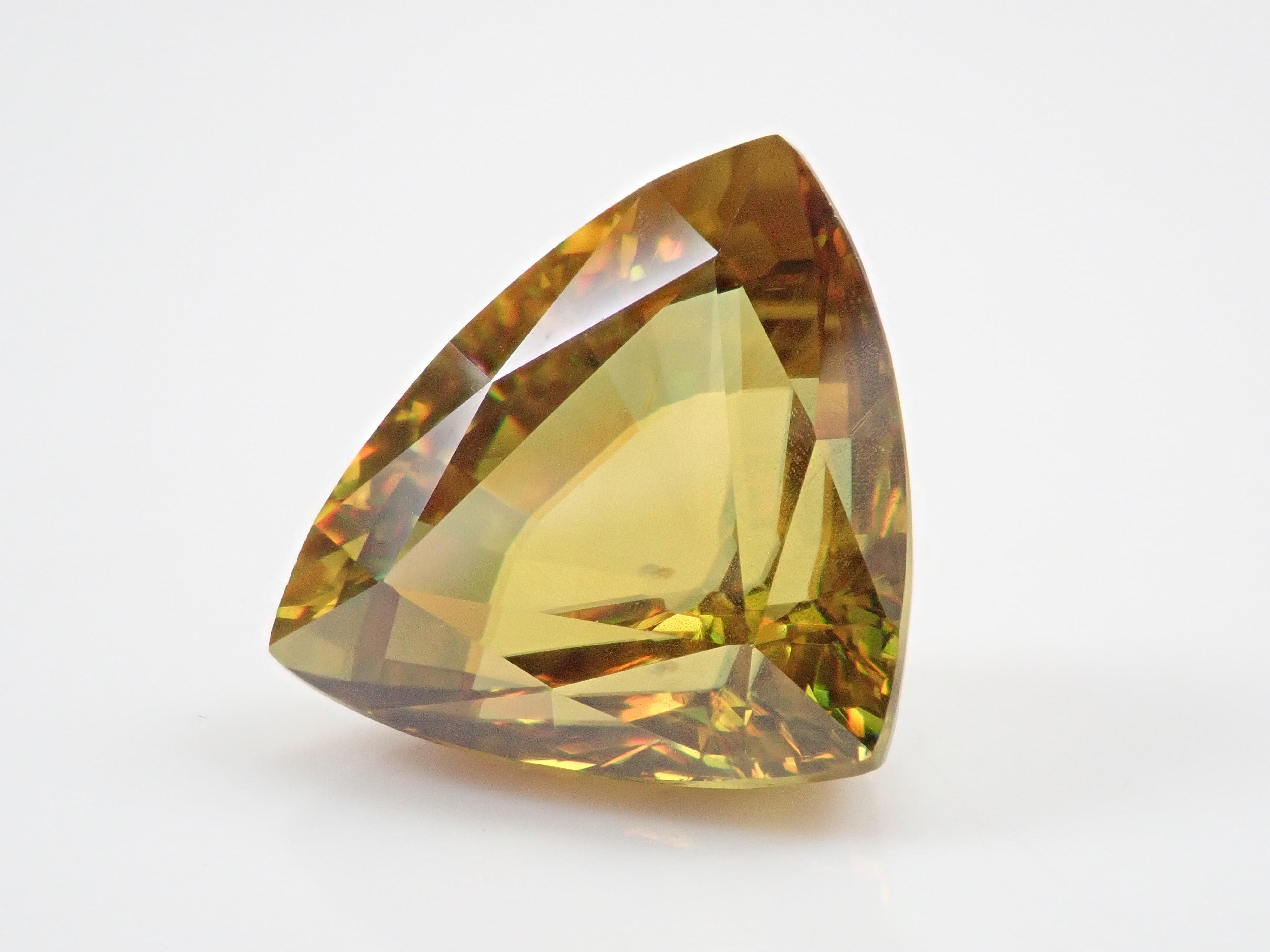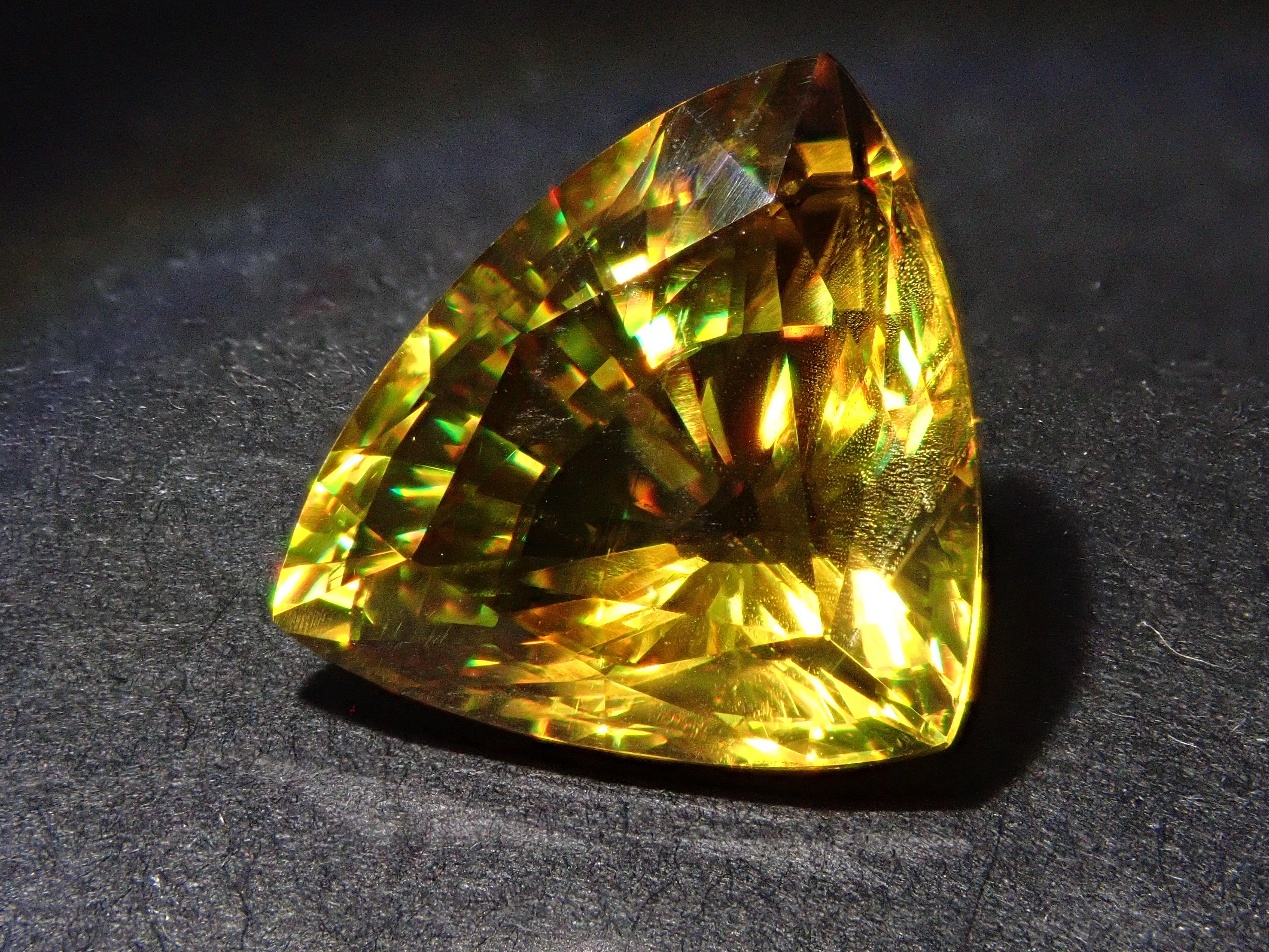 黄金色の輝きと豪華なファイアを見せるスフェーン。ダイヤモンドよりも強力なファイアを放つ魅力的な宝石として、コレクターからの人気が高まっています。角度によって目まぐるしく輝きの表情が変わるスフェーン。カラーチェンジは赤系のカラーチェンジ用ペンライトを使ってお楽しみください。透明度も高く、ファイアも楽しめる品質の高いパキスタン産カラーチェンジスフェーンです。