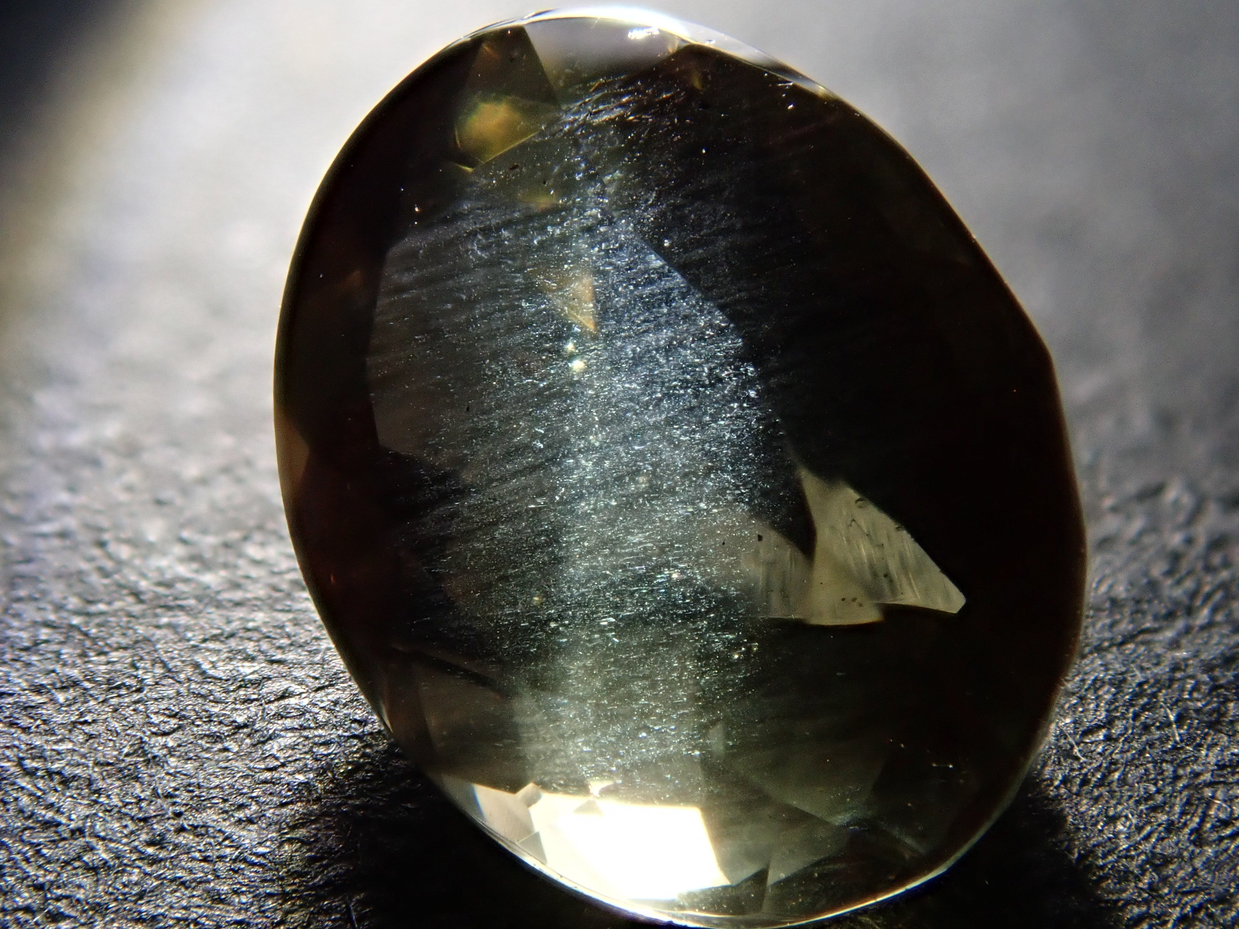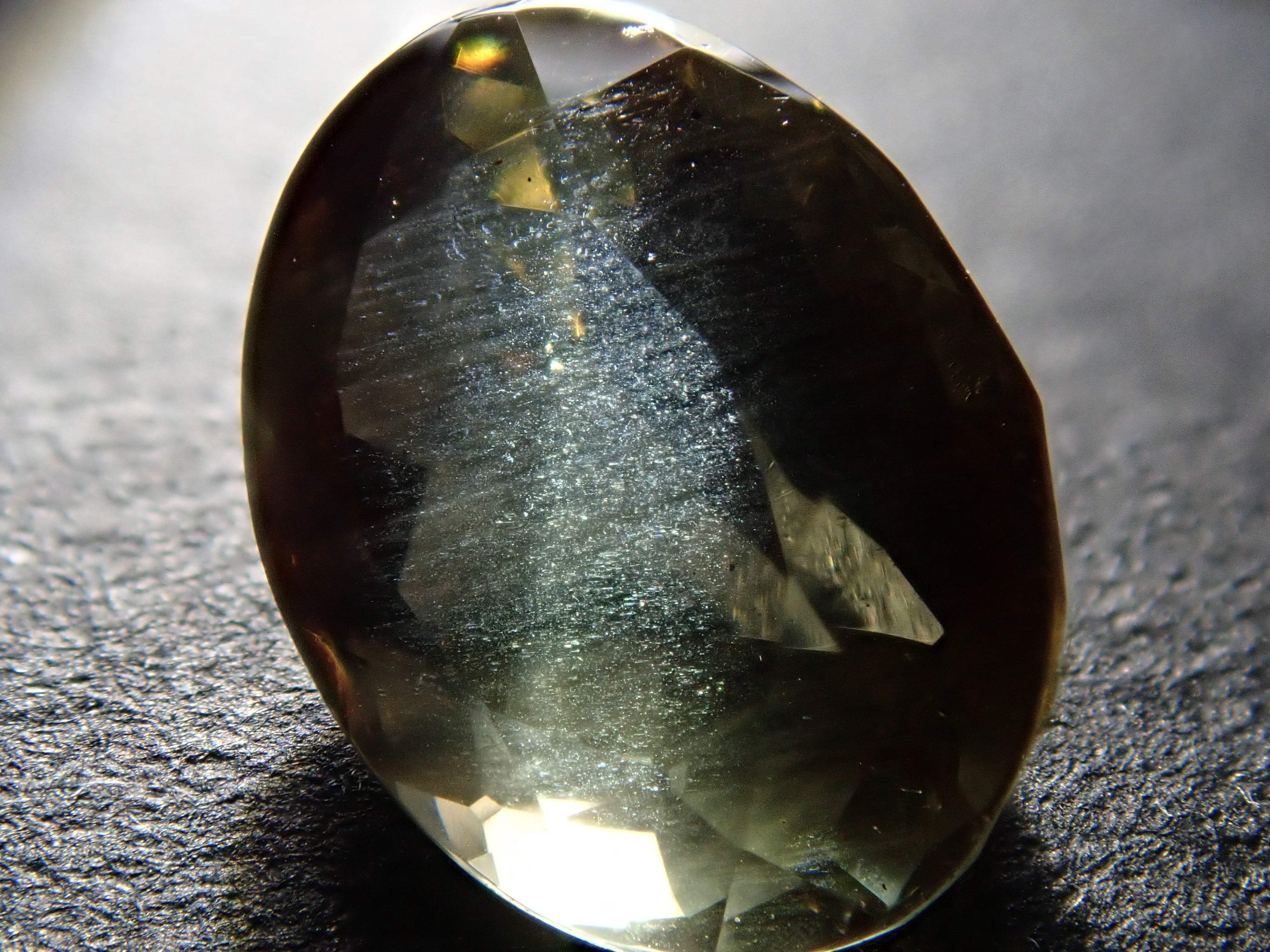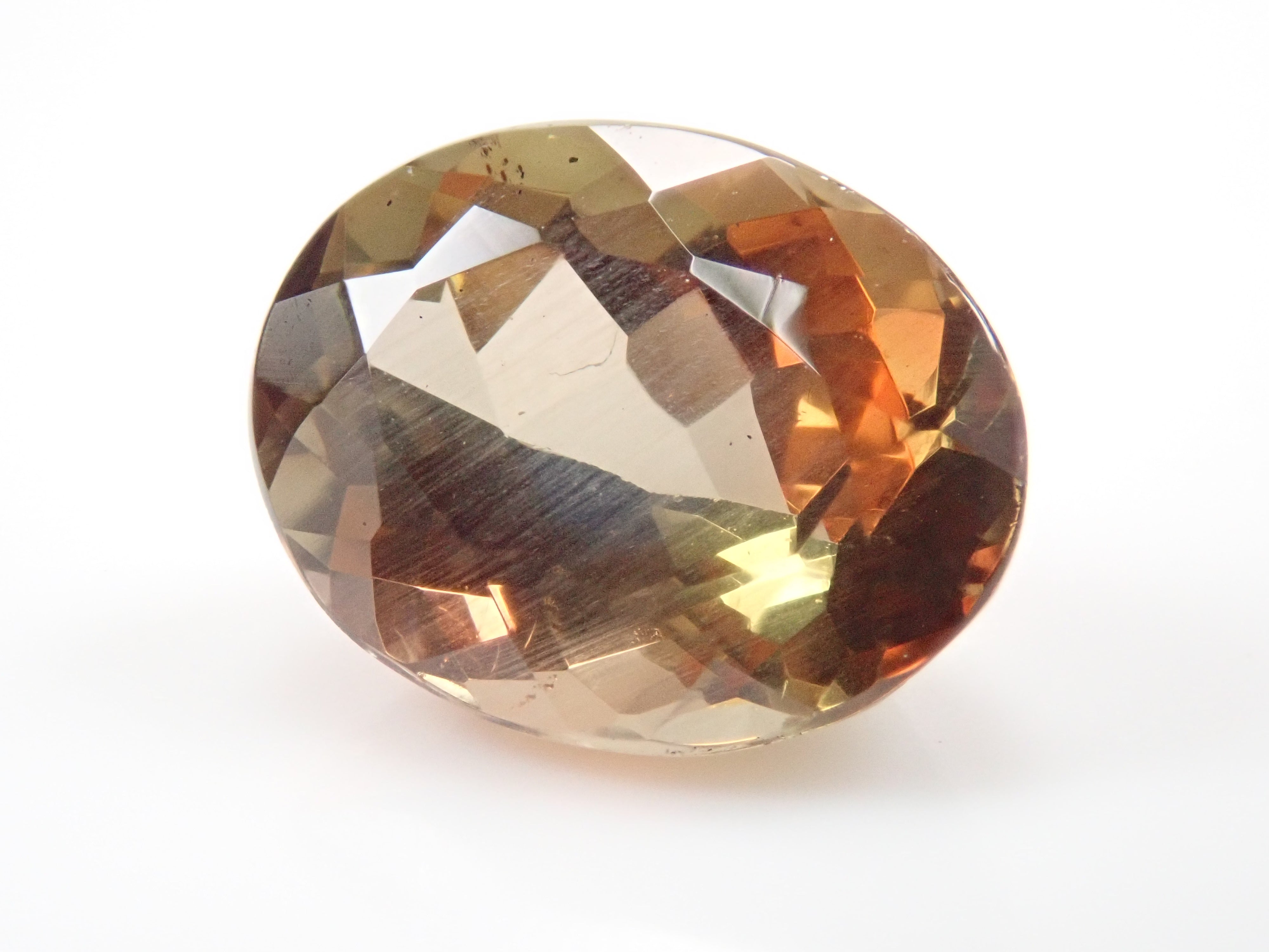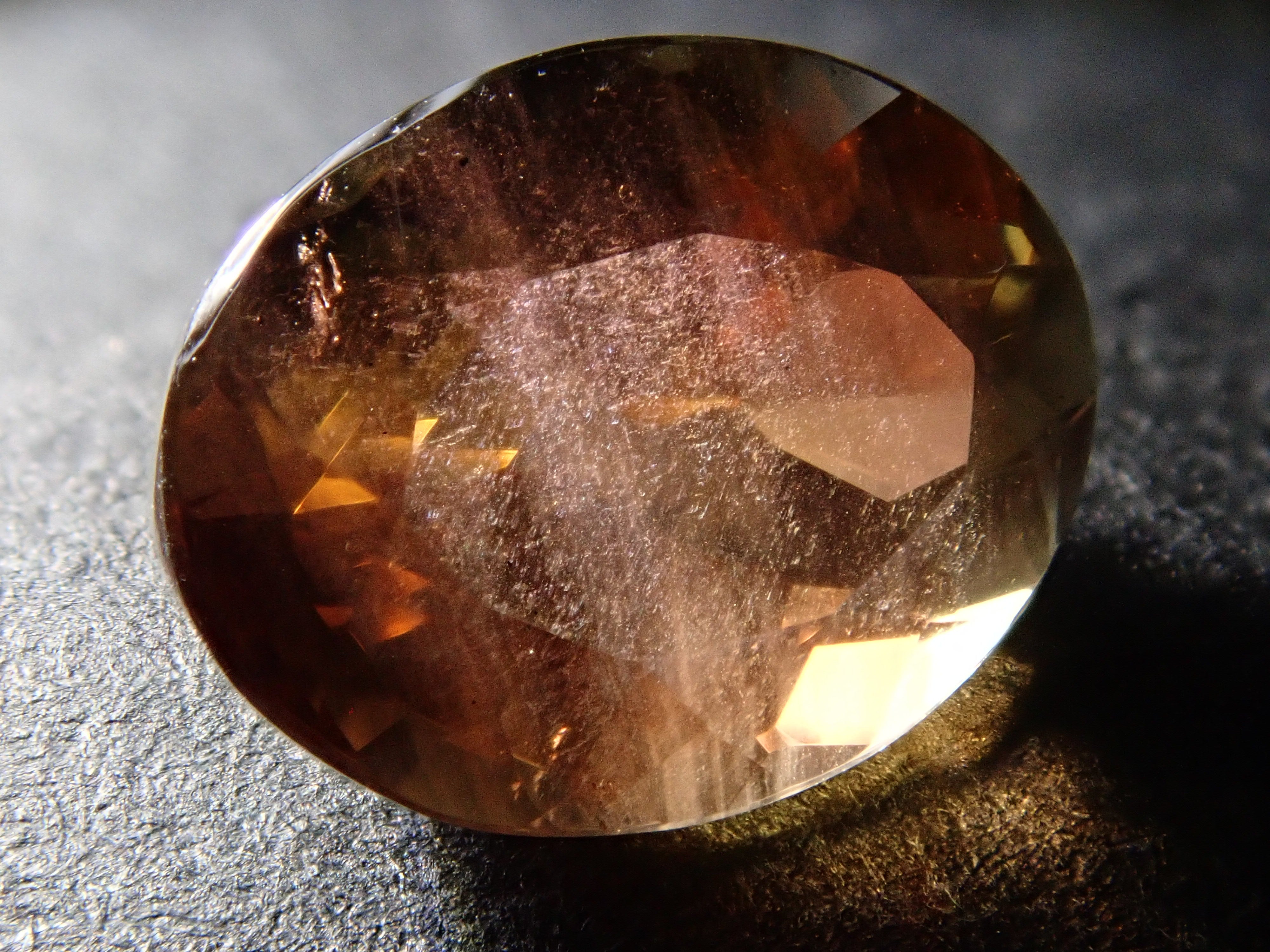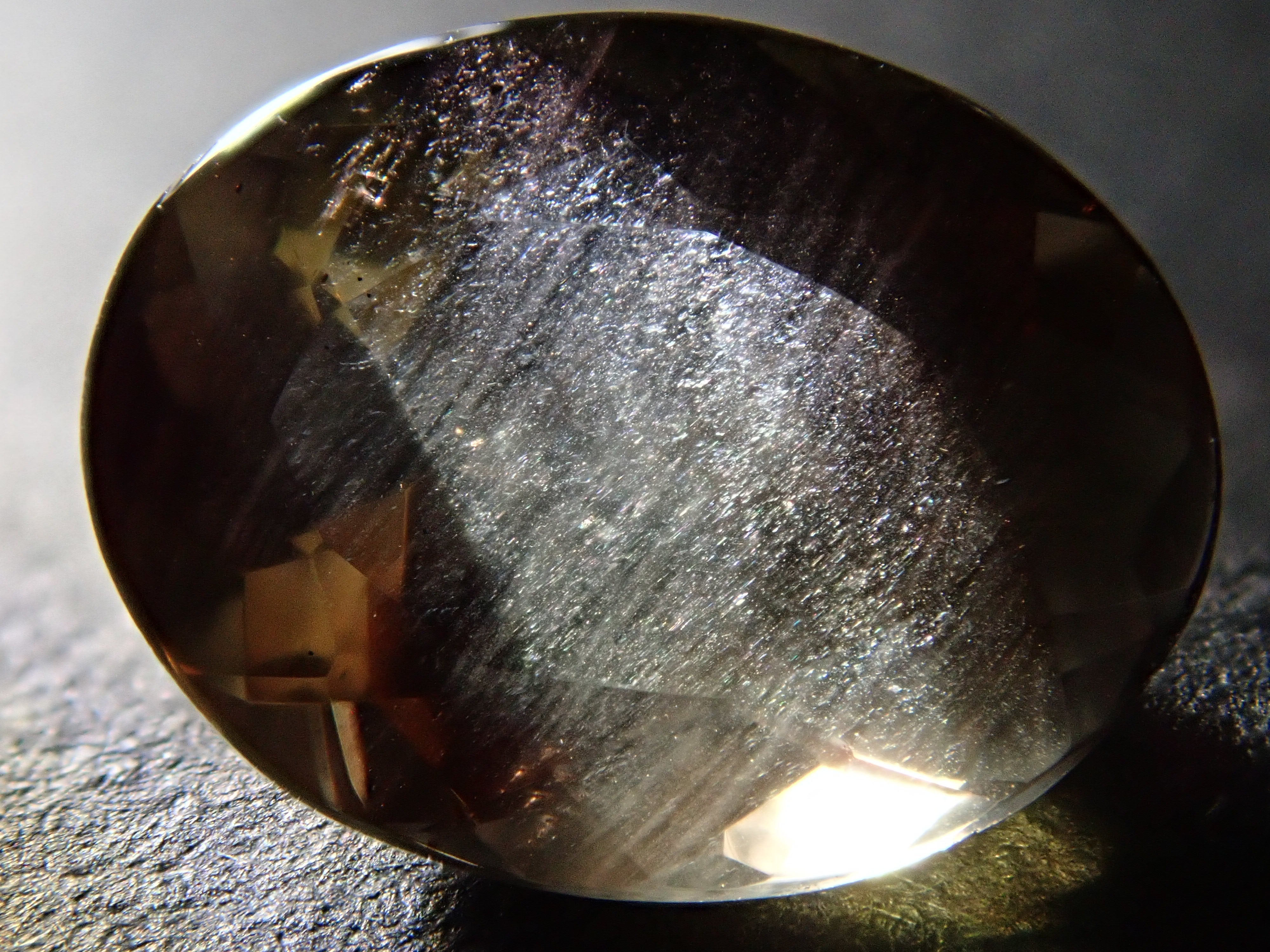 「多色性の王様」と呼ばれるアンダリュサイト。角度を変えて見てみると、茶色、緑色、オレンジなどの複数の色が1つの石の中に詰まっていることが分かります。実は「カイヤナイト」「シリマナイト」の同質異像です。宝石品質のアンダリュサイトとしては2ct超の大きめサイズです。黒背景でライトを当てると幻想的なインクルージョンを楽しめます。