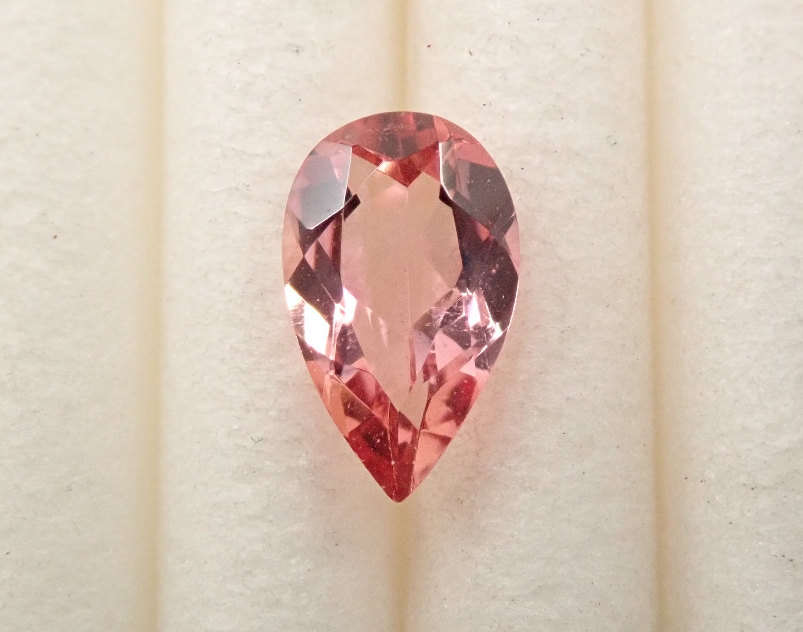 トパーズの最高峰として高い評価を得ているインペリアルトパーズ。シェリー酒のような黄金色をしたものが有名ですが、稀にこちらのようなピンク色をしたものが発見されています。こちらはピンクの色合いのピンクインペリアルトパーズです。