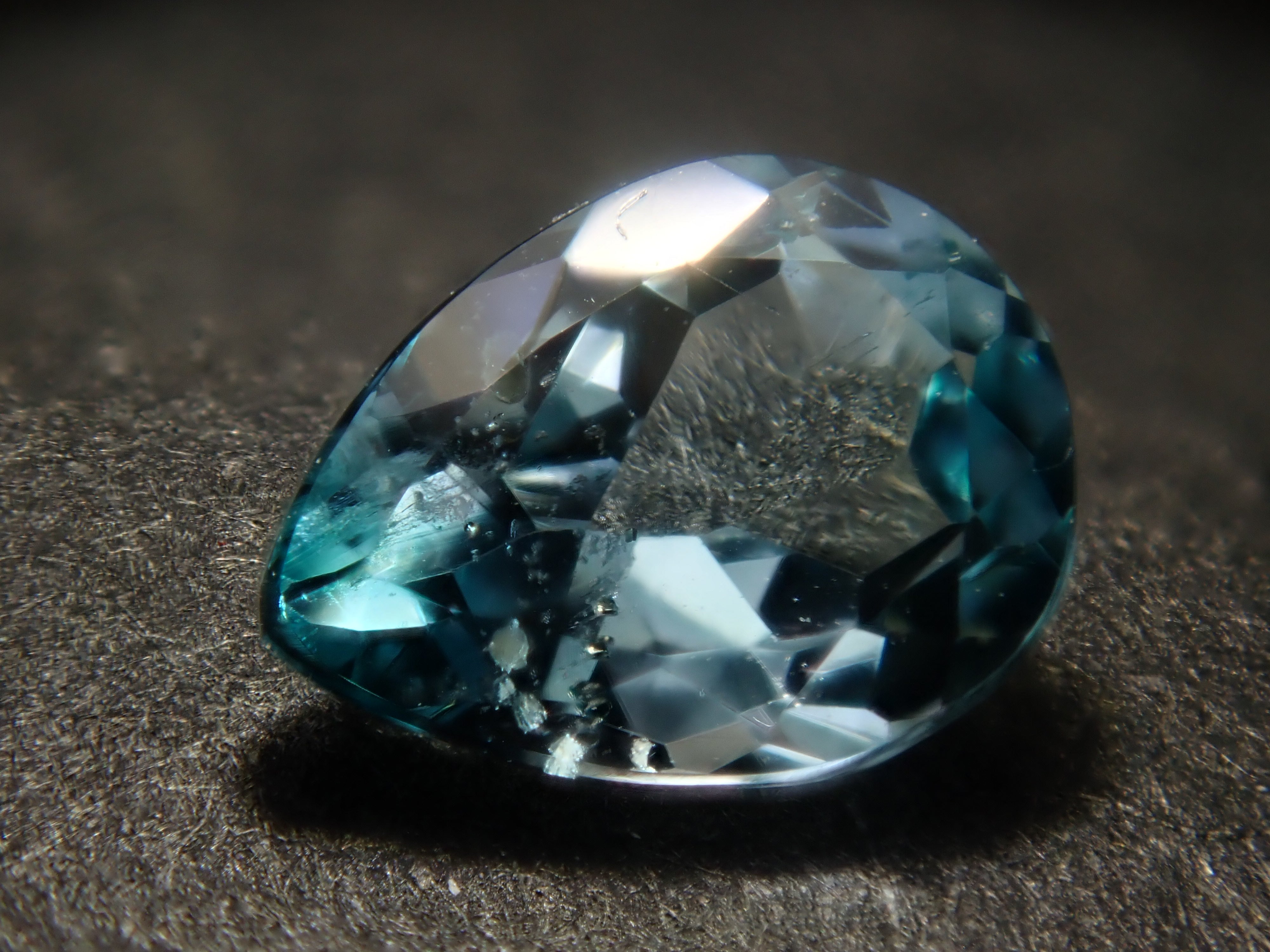 「良く」を意味する「eu」と「割れる」を意味する「klasis」というギリシャ語から名前が付けられたユークレース。由来通り完璧な劈開をもっています。稀産種であることなどからも宝石となることは稀なレアストーンです。白、無色、淡緑、淡青、濃青などのカラーバリエーションがあります。こちらはユークレースの中にパイライトを含むタイプのコロンビア産パイライトインユークレースです。