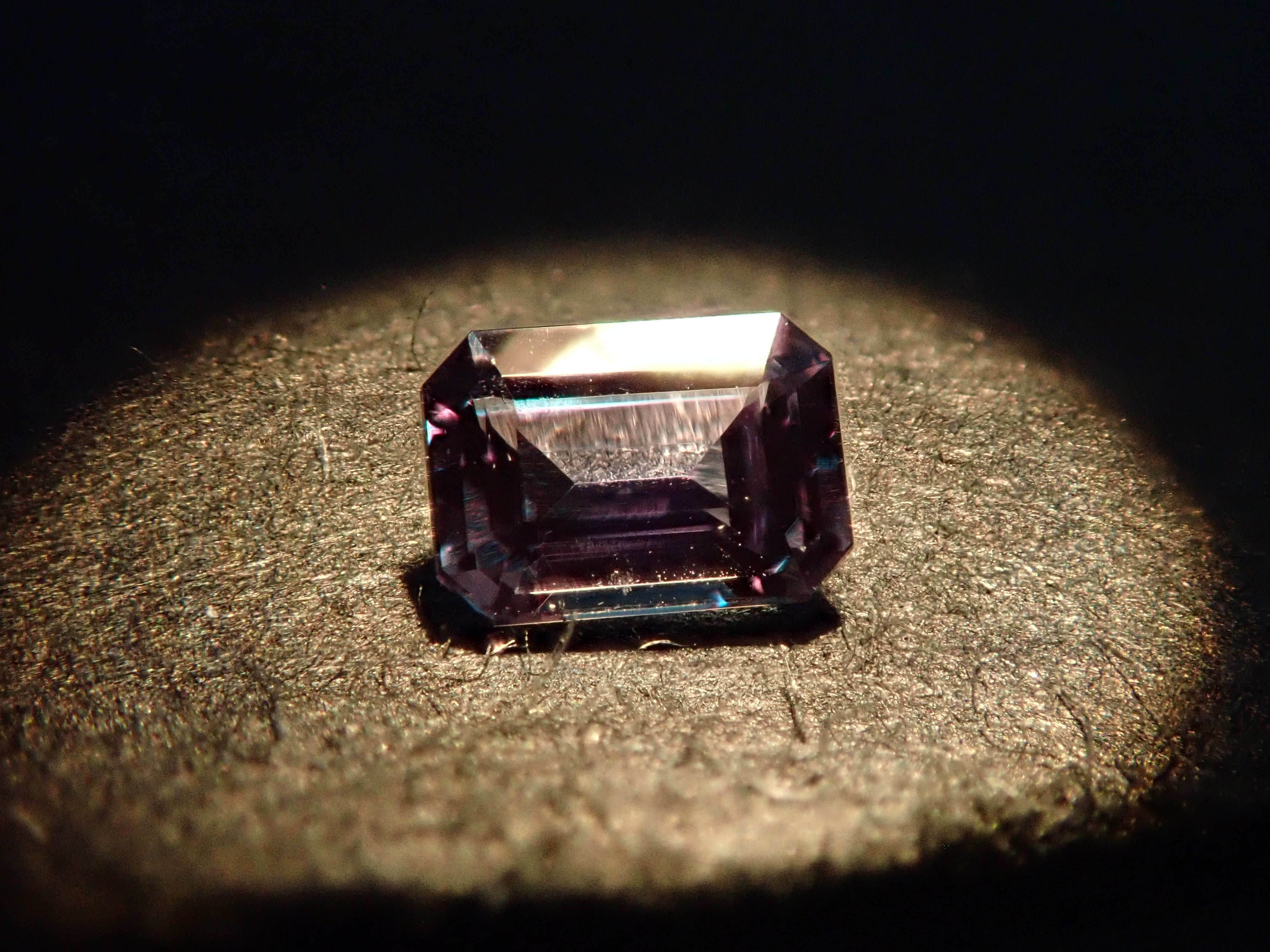 ブラジル産アレキサンドライトとしては珍しいエメラルドカットのルースです。透明度も高く、ハイクオリティのアレキサンドライトで、ブラジル・ヘマチタ鉱山で、鉱山主から直接買い付けたものです。
