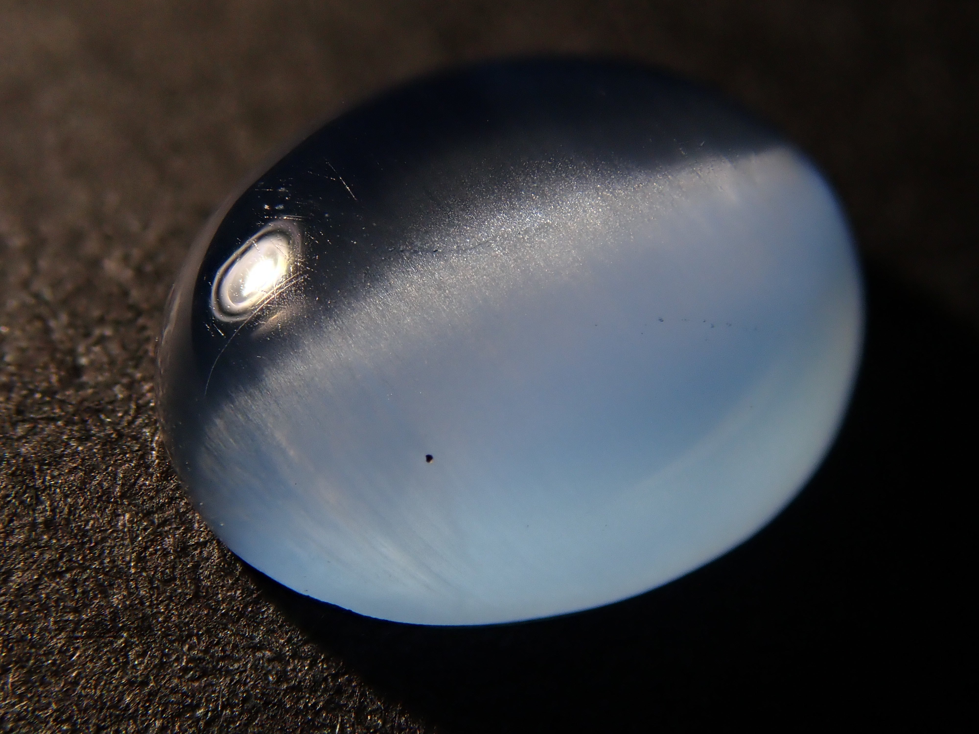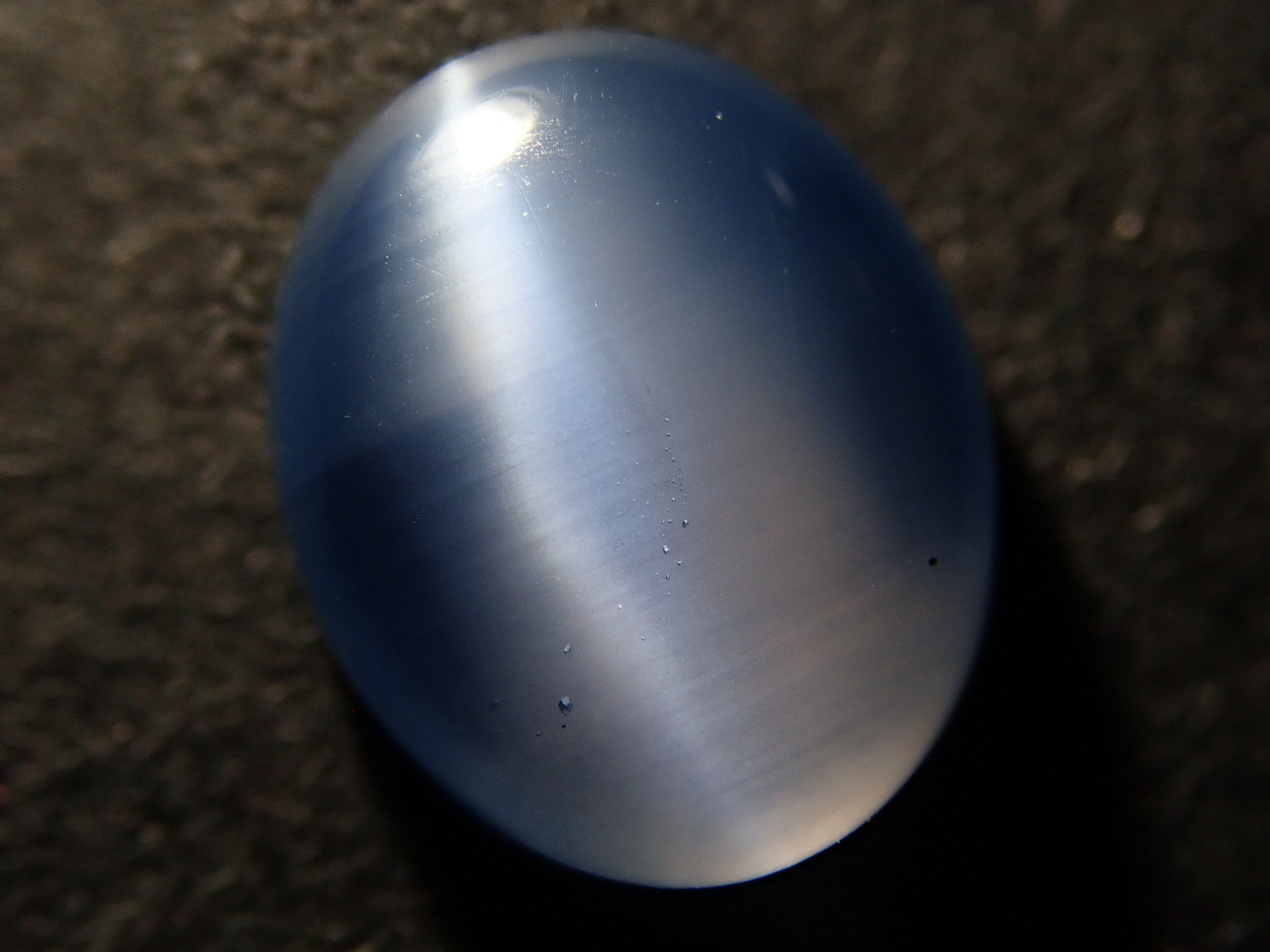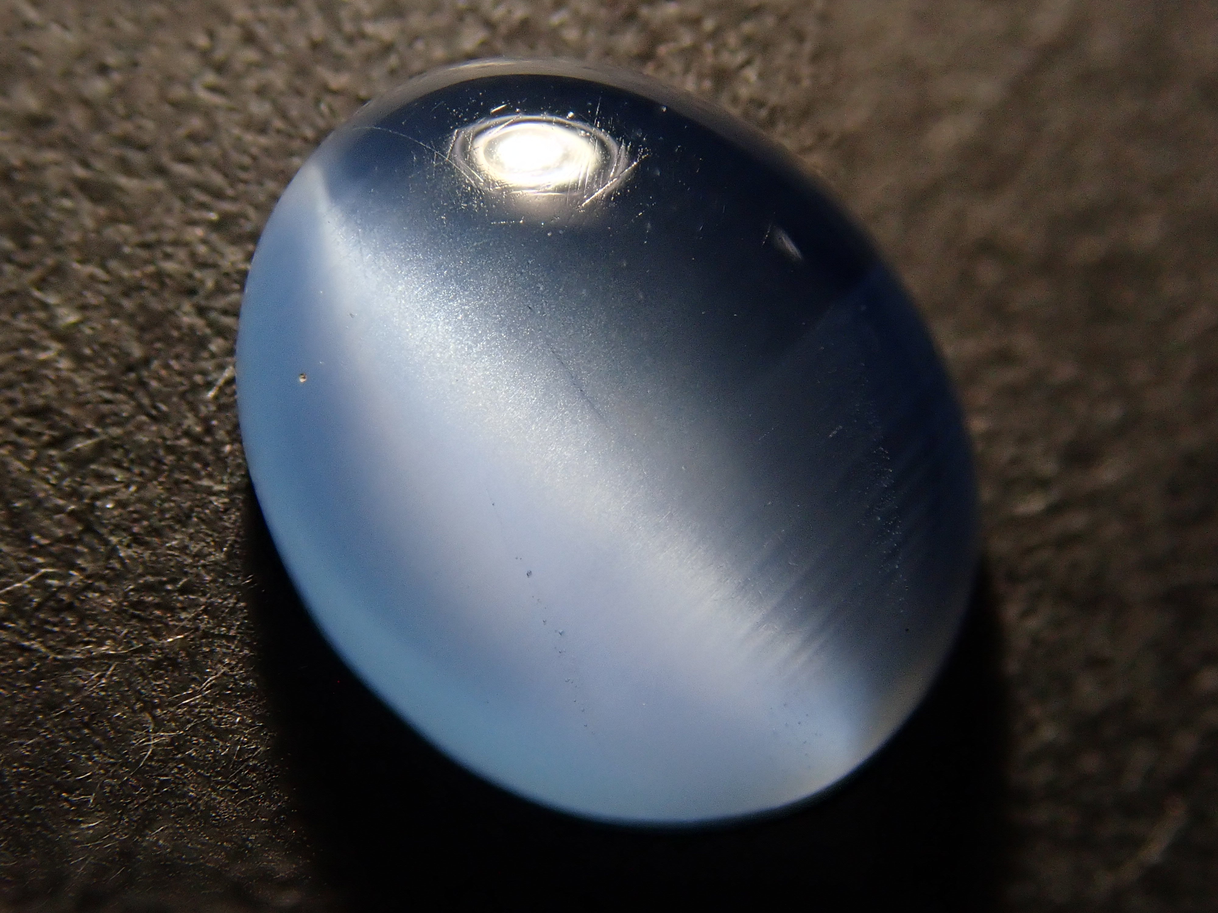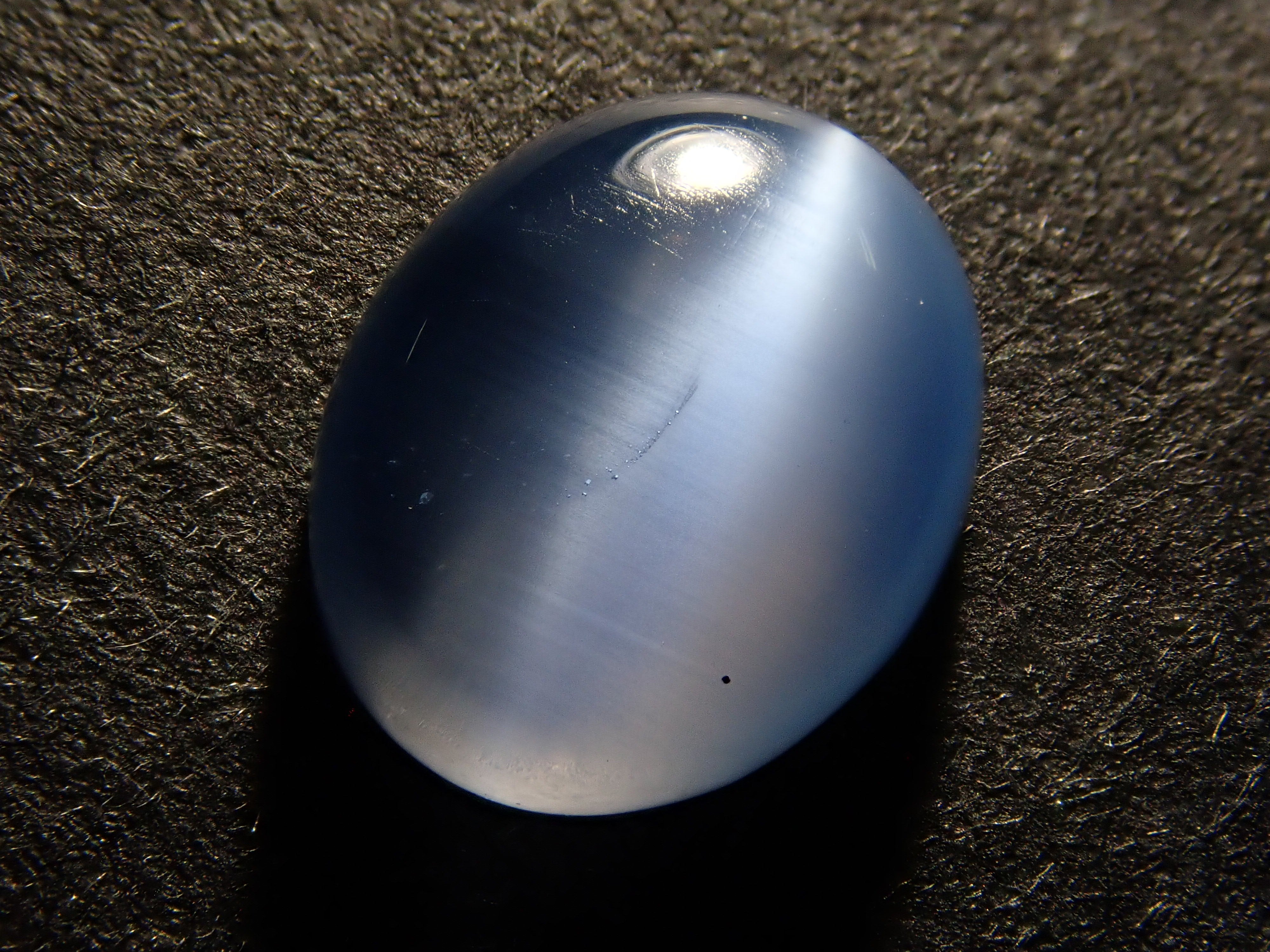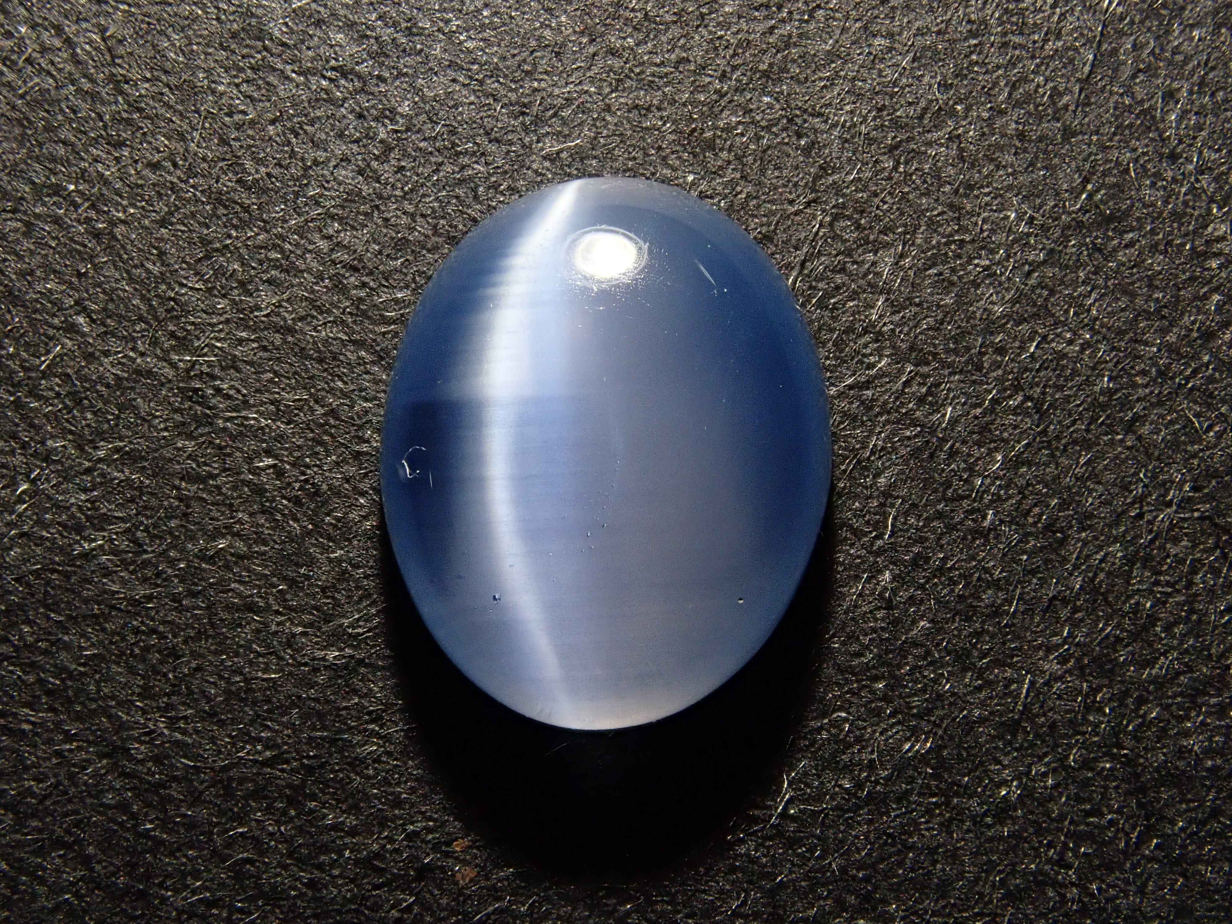 カラーバリエーションが豊富な石、アパタイト。無色のほか青、紫、緑、黄、ピンク、赤、白などがあります。鉱物名は燐灰石。長時間直射日光に当ててしまうと退色する性質を持っていますので室内で保管ください。こちらはキャッツアイ効果が見られるタイプです。ペンライトを用いて撮影しています。