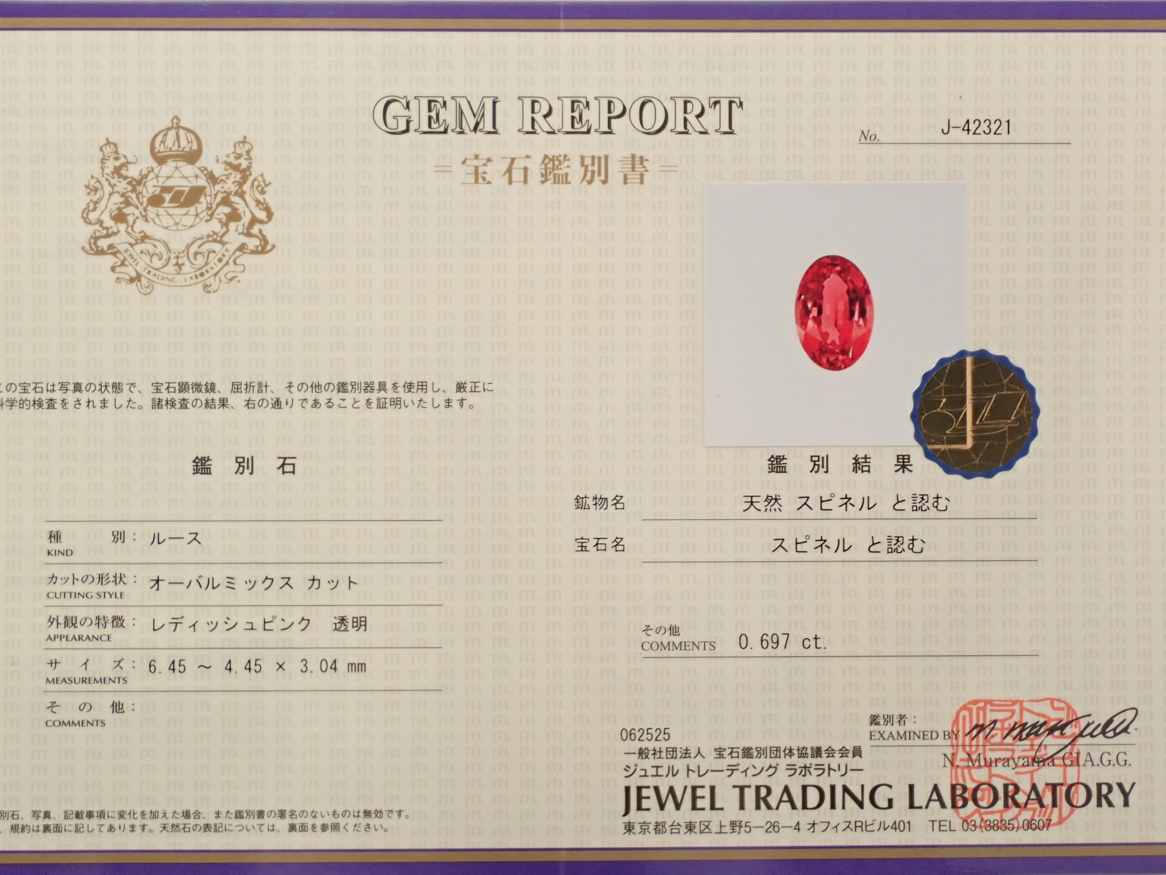・付属品:鑑別書(JTL (ジュエルトレーディングラボラトリー))、ルースケース(収まらない場合はジップ付きクリアケース)