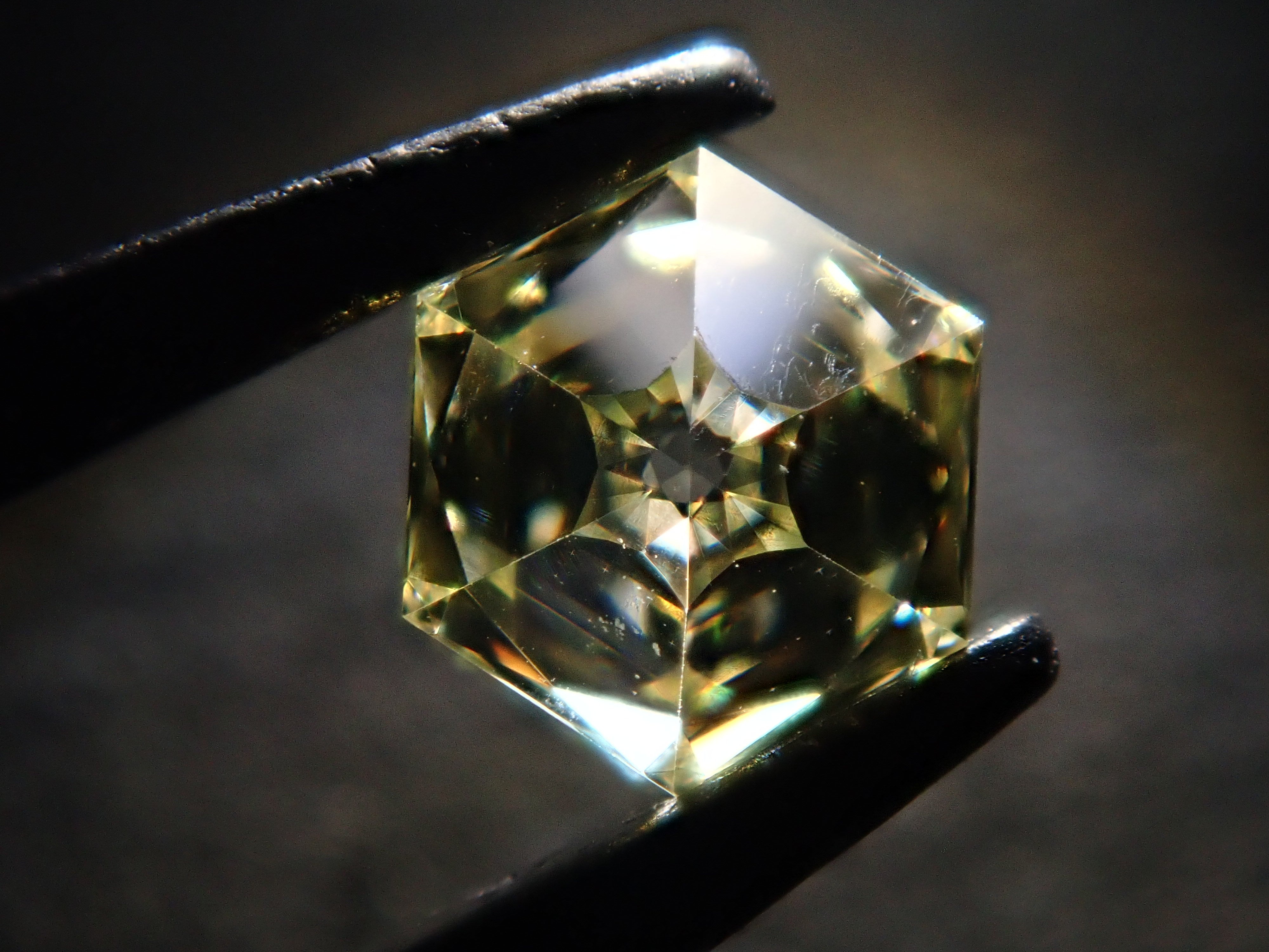ヘキサゴナルカットのイエローダイヤモンド 0.306ctルース(UNDER S(LIGHT YELLOW), SI1)です。