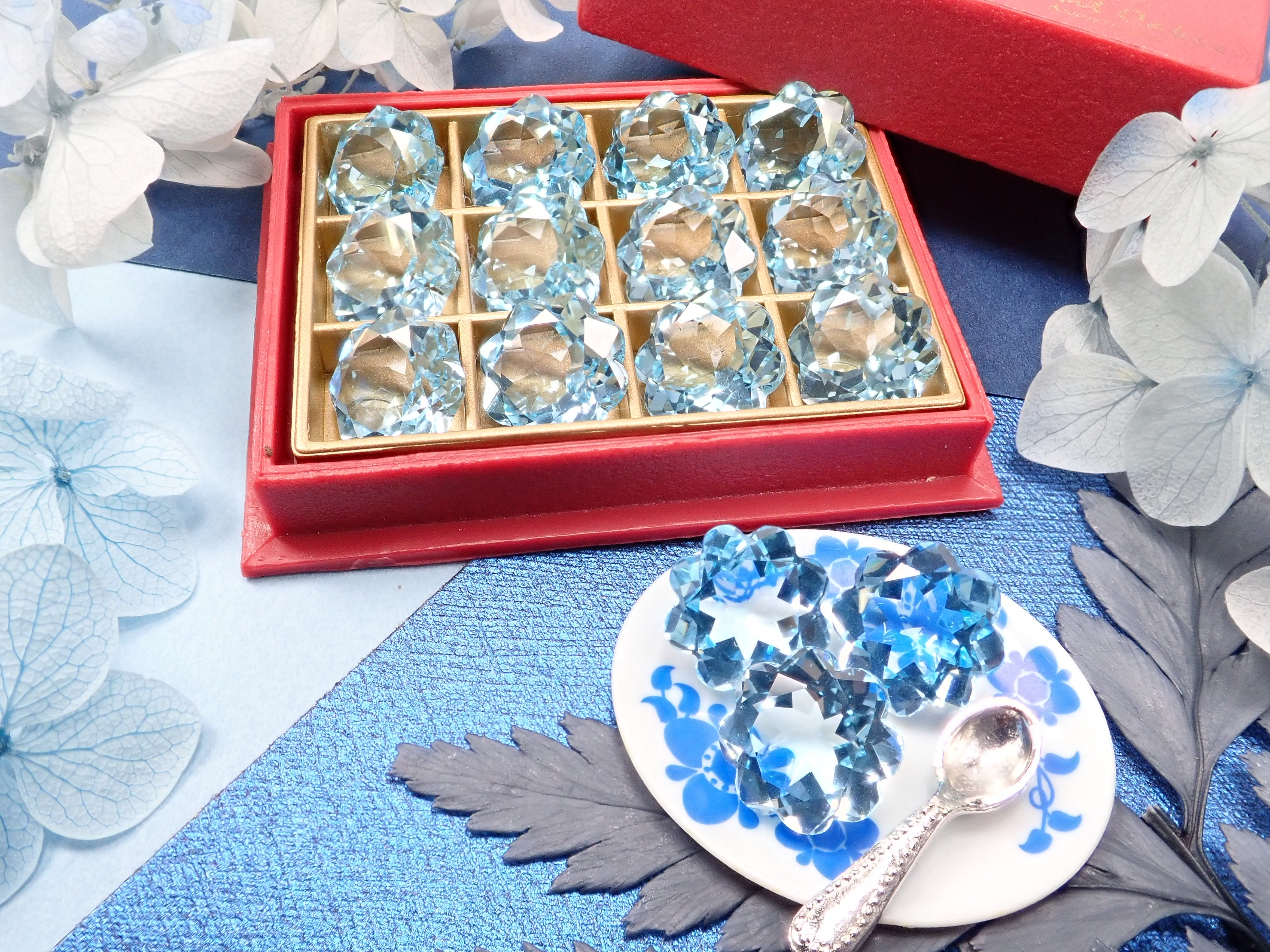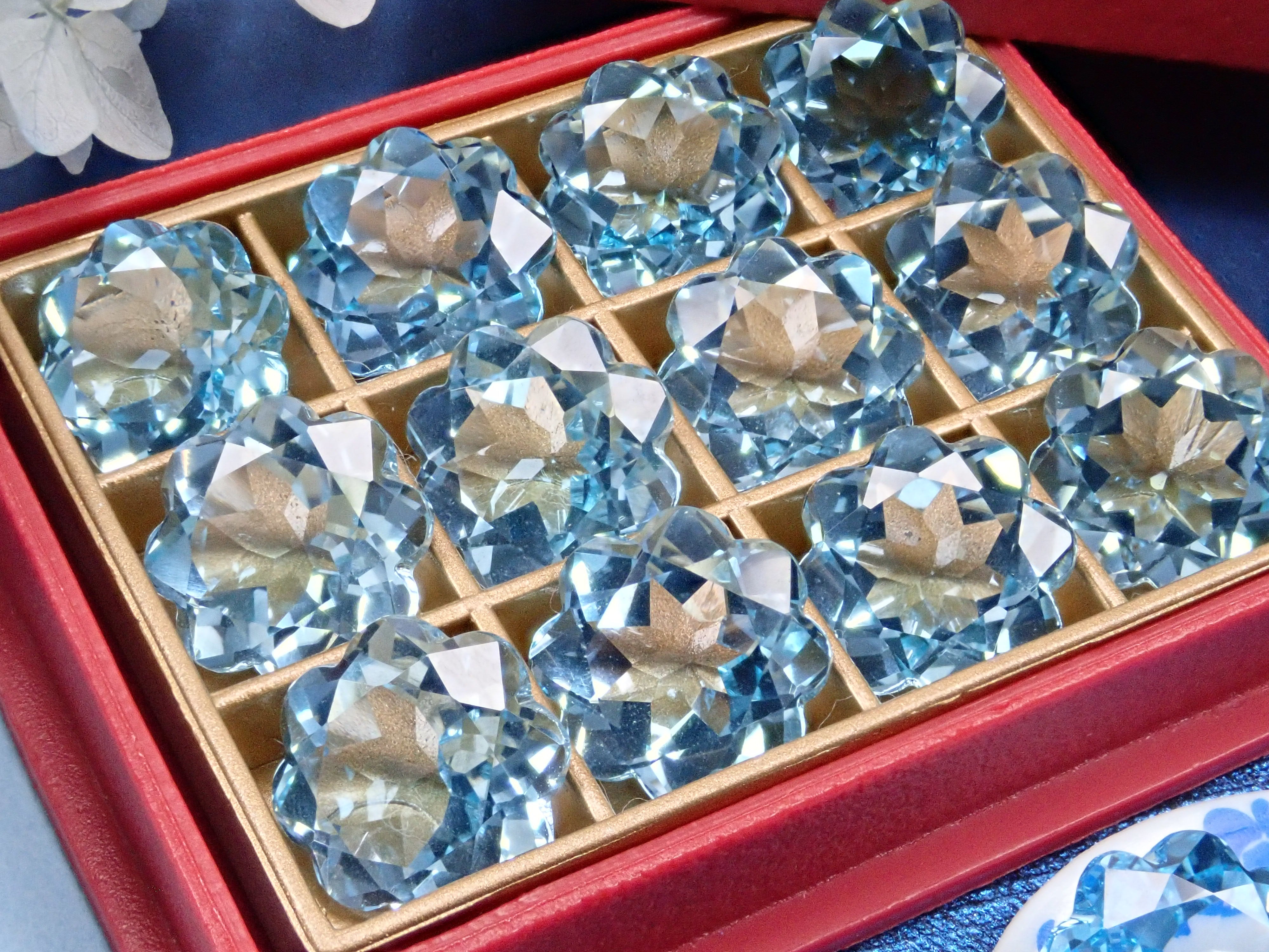 スカイブルートパーズ 1石(10mm、フラワーカット)《複数購入割引有》