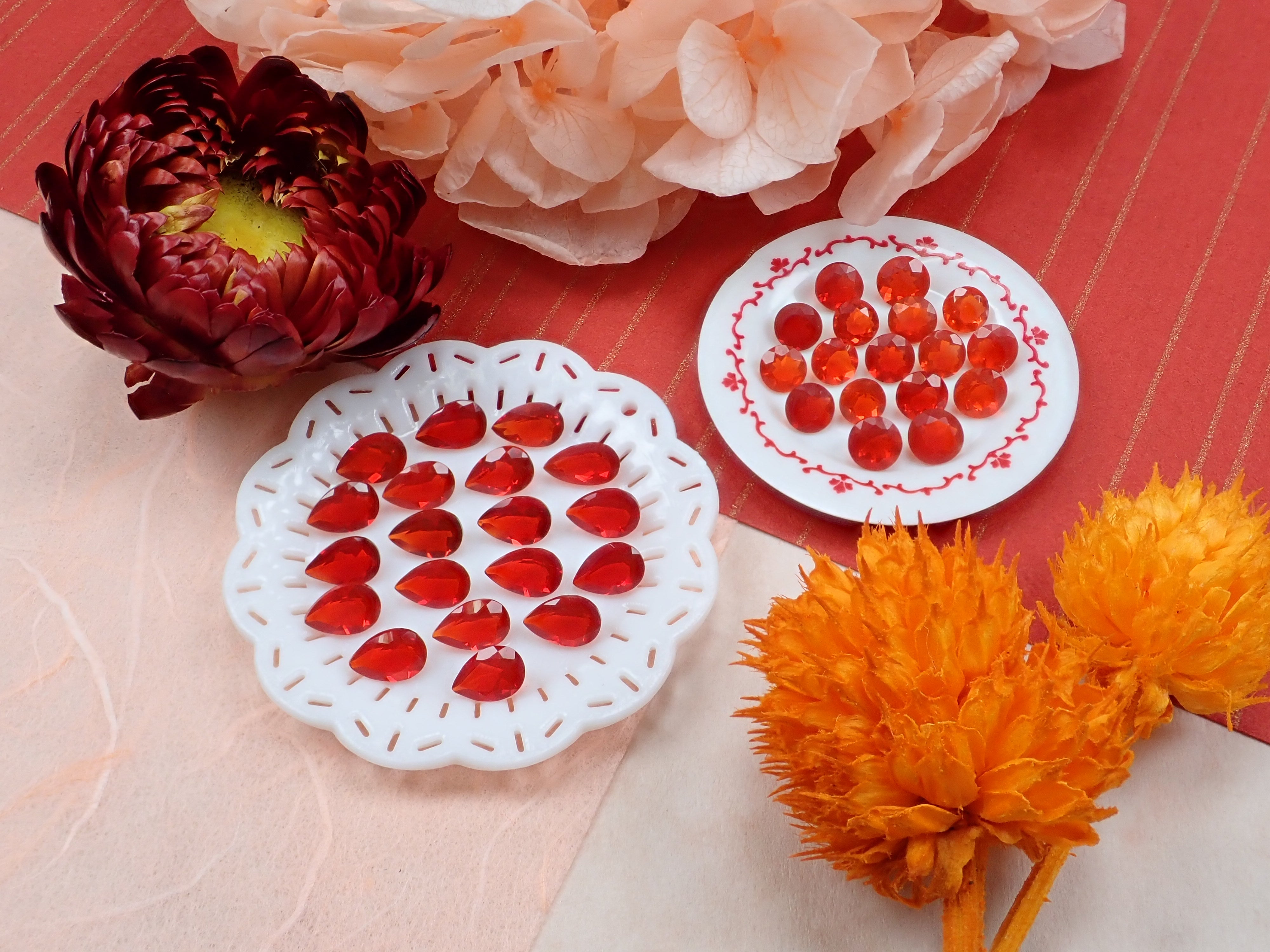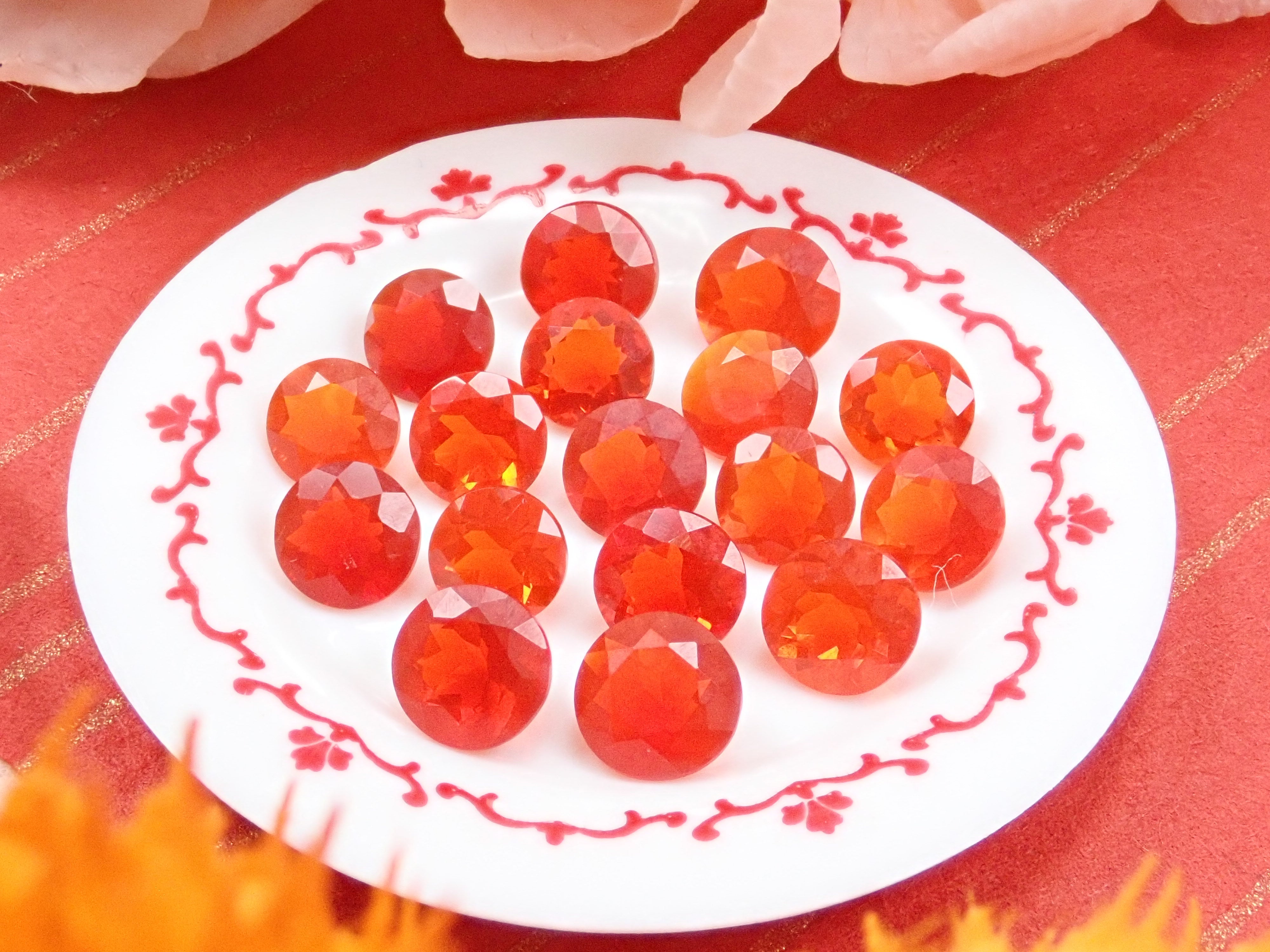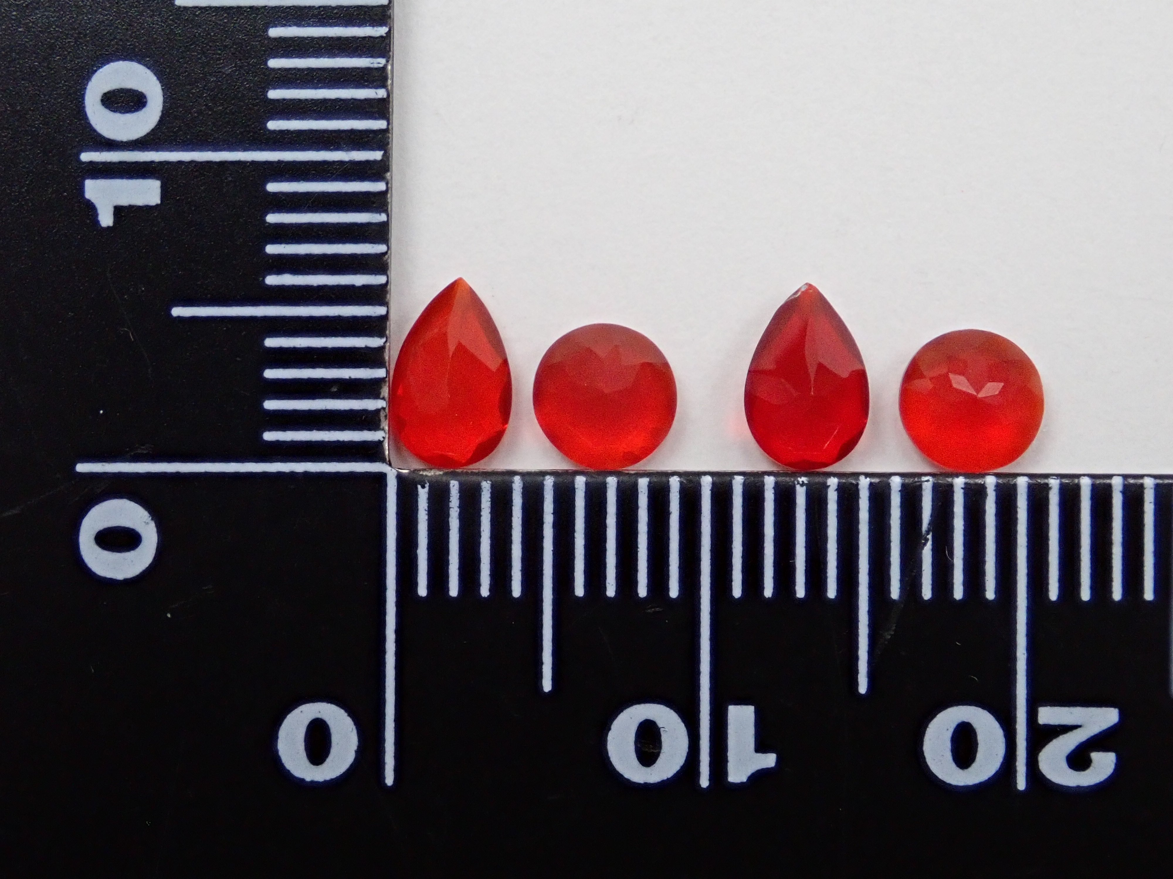 こちらのファイアオパールの形違いルース2石セット(ラウンドカット・ペアシェイプ)です。これらの2石をランダムに選んでお送りする『おまかせ』商品となります。